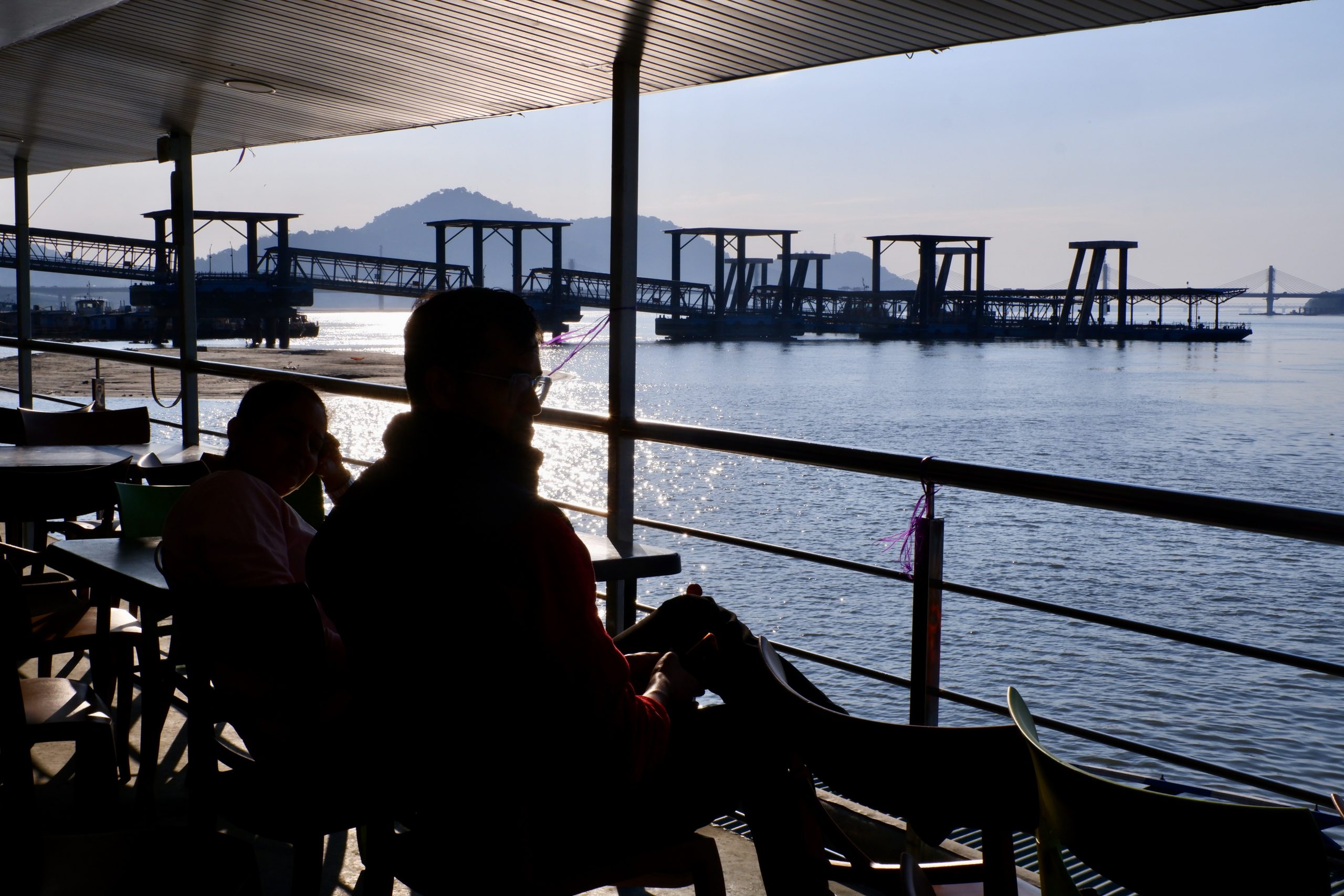 Zurück dauerte sehr lange. Ich hatte nur die letzte Fähre erwischt und die wartete, bis keiner mehr übrig war. Und das hat gedauert. Das Inselchen gilt als die kleinste ständig bewohnte Insel (von den Tempelbetreibern).