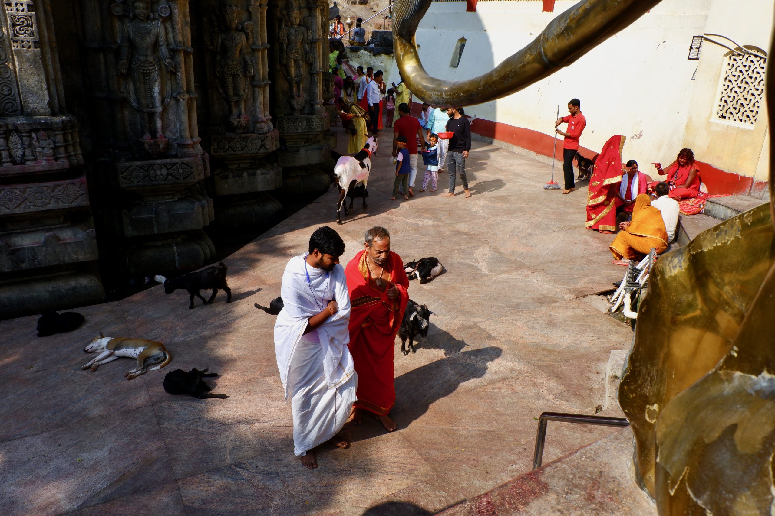 Man kann hier viel Zeit zubringen. Es ist interessant und friedlich – trotz der Tieropfer. Und ziemlich voll. Ein Paar, welches ich traf, war ganz aus Rajasthan angereist. Und eine Reisegruppe aus Deutschland – Ikarus Tours.