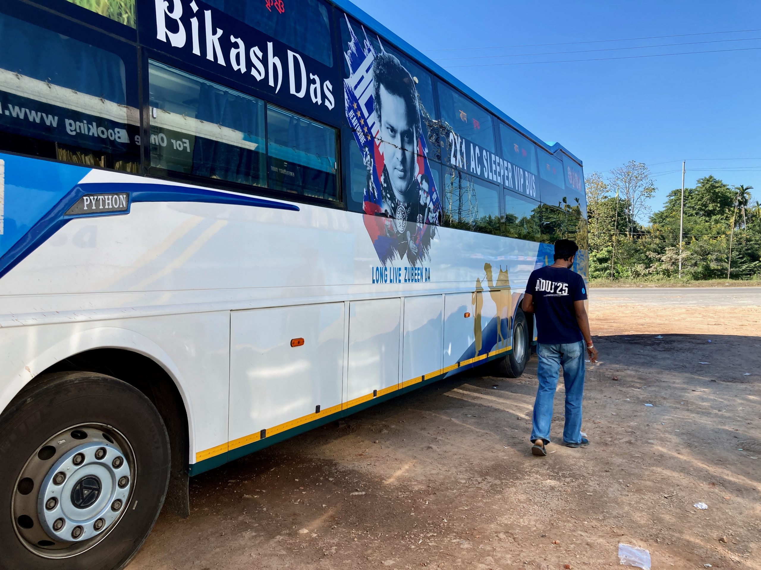 Ich hatte einen Bus von Jorhat nach Guwahati gebucht. Zusammen mit einem Hotelmenschen, weil ich das nicht so einfach kann insbes. mit der Bezahlung. Es war etwas kompliziert und er brauchte meinen WhatsApp-Kontakt und meine indische Telefonnummer. Und dann bekam ich das Ticket in mein Handy. 9:00 Abfahrt ab Jorhat.