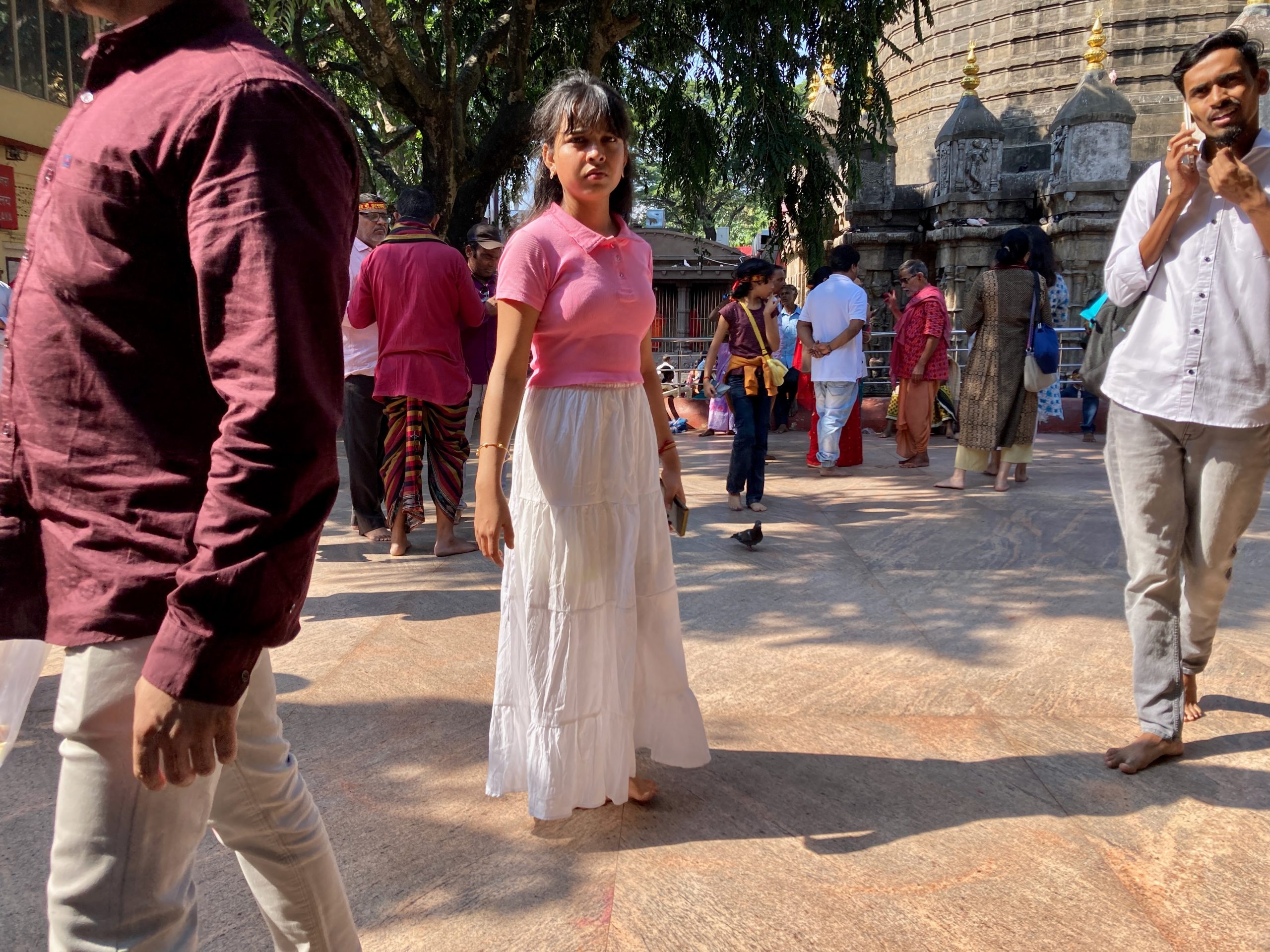 Es ist der älteste Hindutempel hier in der Gegend und sehr berühmt und verehrt für tantrische Praxis. Davon hab ich aber nix gesehen. Eigentlich habe ich nix wirklich gesehen oder gewusst, ich bin einfach hin und hab geguckt. und hinterher gelesen – und das war dann eigentlich doch total interessant. Weil dieser Tempel, er ist total weiblich! Nicht nur das Kamakhya eine Göttin ist, hier wird auch mit einem speziellen Fest ihre Menstruation verehrt. Und im Inneren hat man kein Lingam (= Pimmel), sondern eine Yoni (= Vulva/Vagina). Aber bis ins Innere bin ich gar nicht vorgedrungen, die Schlange war elendig und die Zahlen wurden draußen veröffentlicht. An diesem Tag waren schon über 1.000 dort gewesen.
