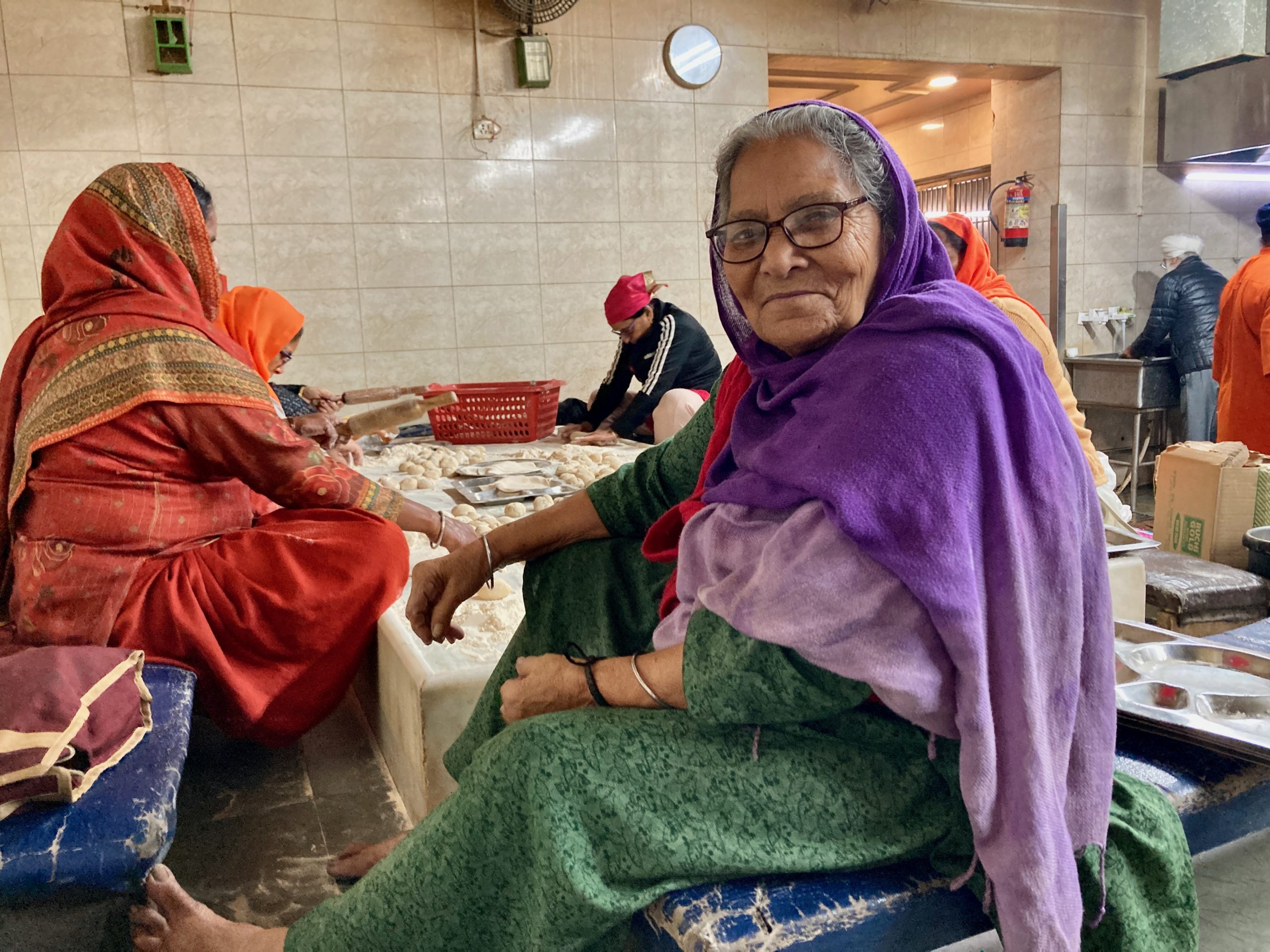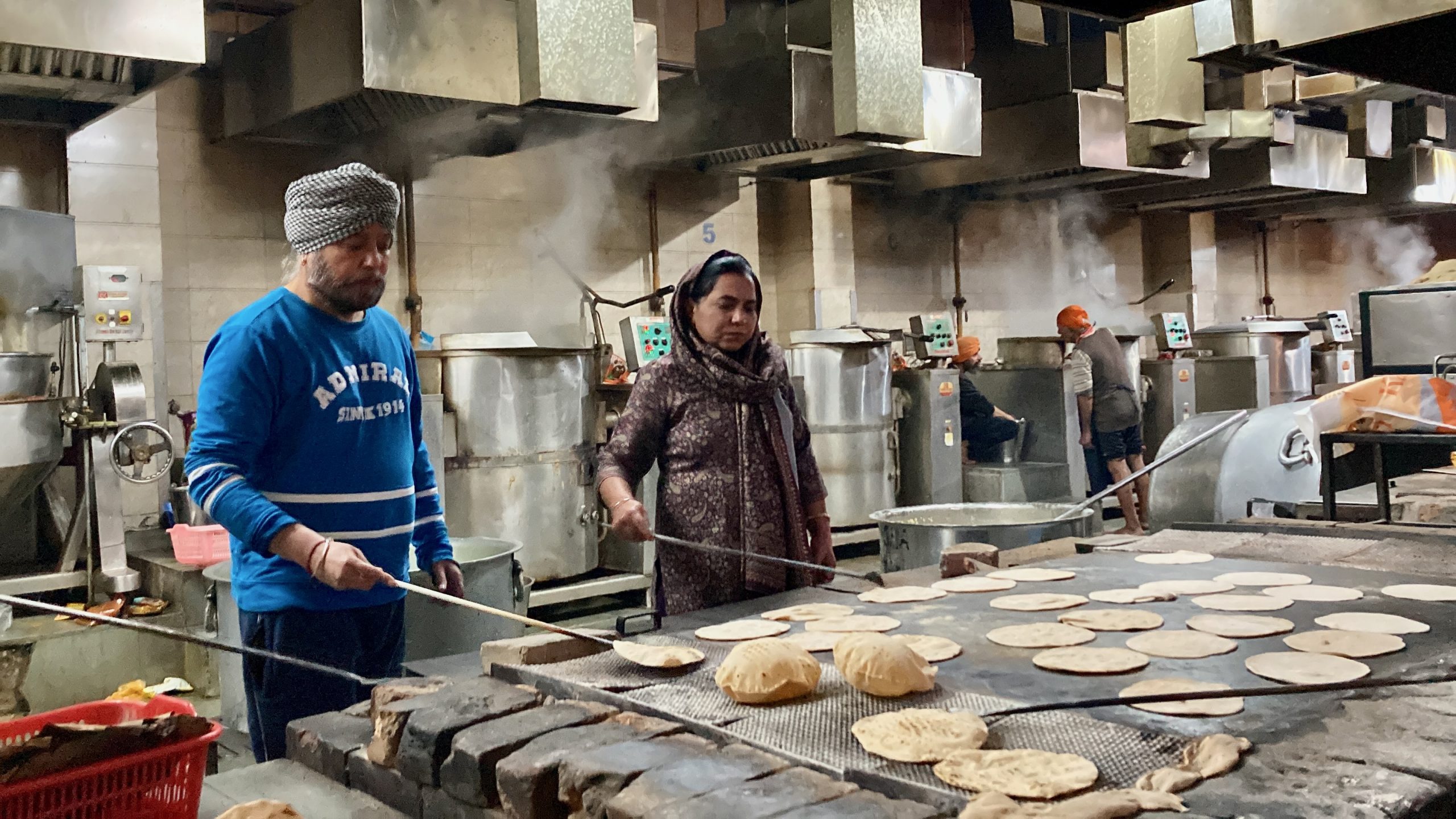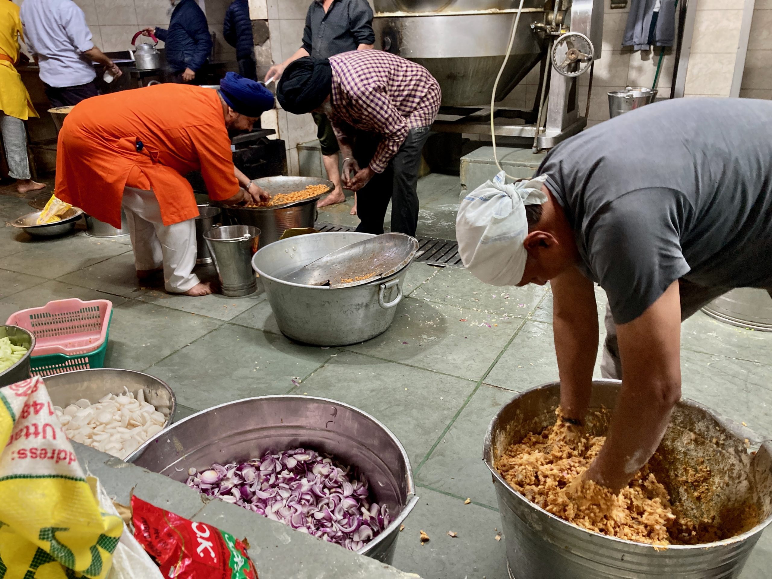 Was bei den Sikhs so schön ist: der Gebetsgesang macht friedlich, sie sind sehr freundlich, großzügig und gemeinschaftlich. Es wird immer Unmengen an Lebensmitteln an die Gurudwara gespendet aus denen dann täglich Unmengen von Essen gekocht wird, was an alle verteilt wird, die etwas haben möchten. Es gibt Festangestellte, aber auch sehr viele freiwillige Helferlein. Schön!