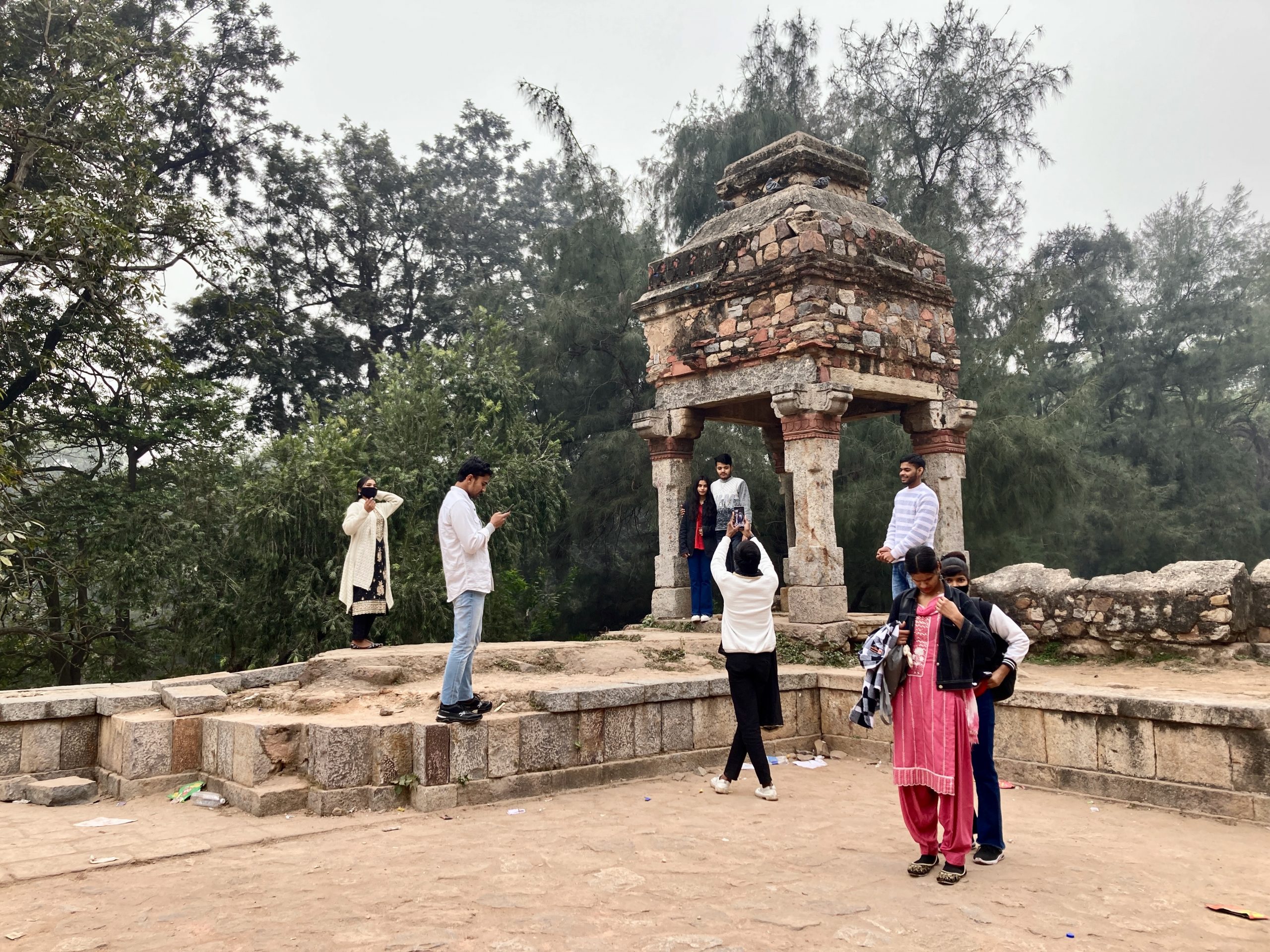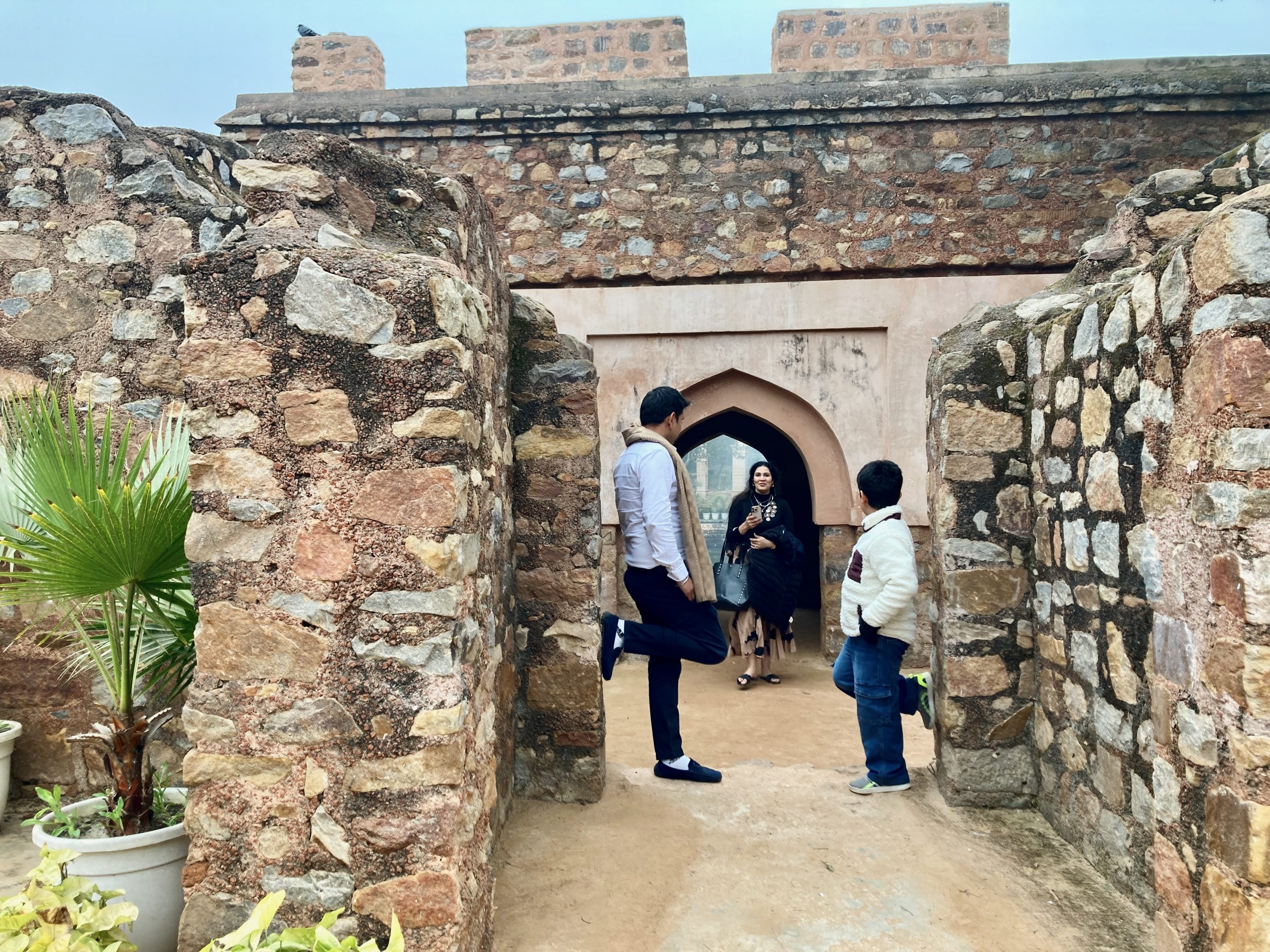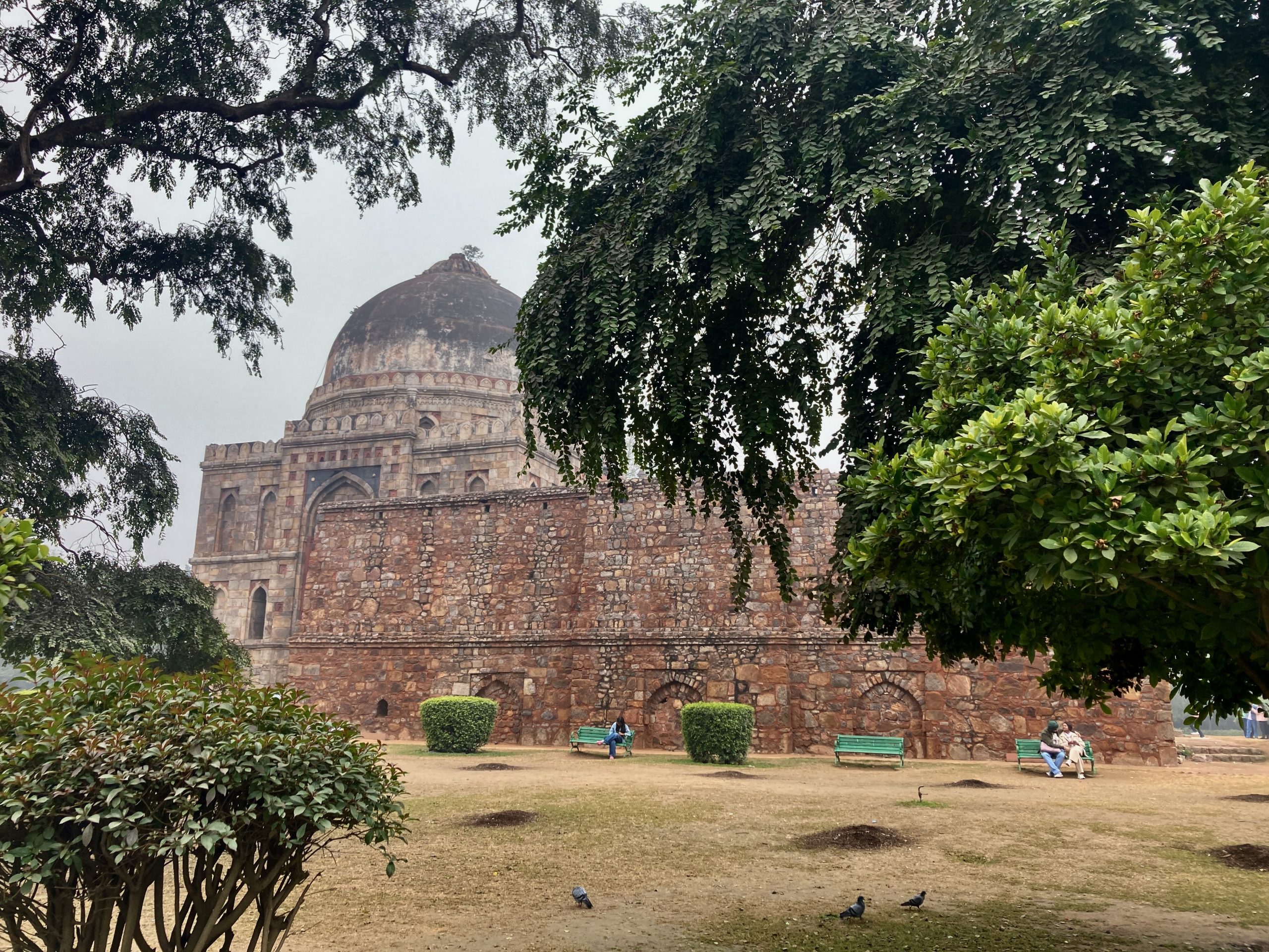 Wir besuchten den Mehrauli Park. Da habe ich vor vielen Jahren mal einen Heritage Walk gemacht und es hatte mir sehr gut gefallen. Inzwischen ist viel mehr eingezäunt und kostenpflichtig und bei dem Wetter war es auch nicht ganz so attraktiv. Aber mir ging erst jetzt auf, dass das quasi mit zum nebenstehenden Qtab Minar gehört, da machte das alles ein bisschen mehr Zusammenhang.