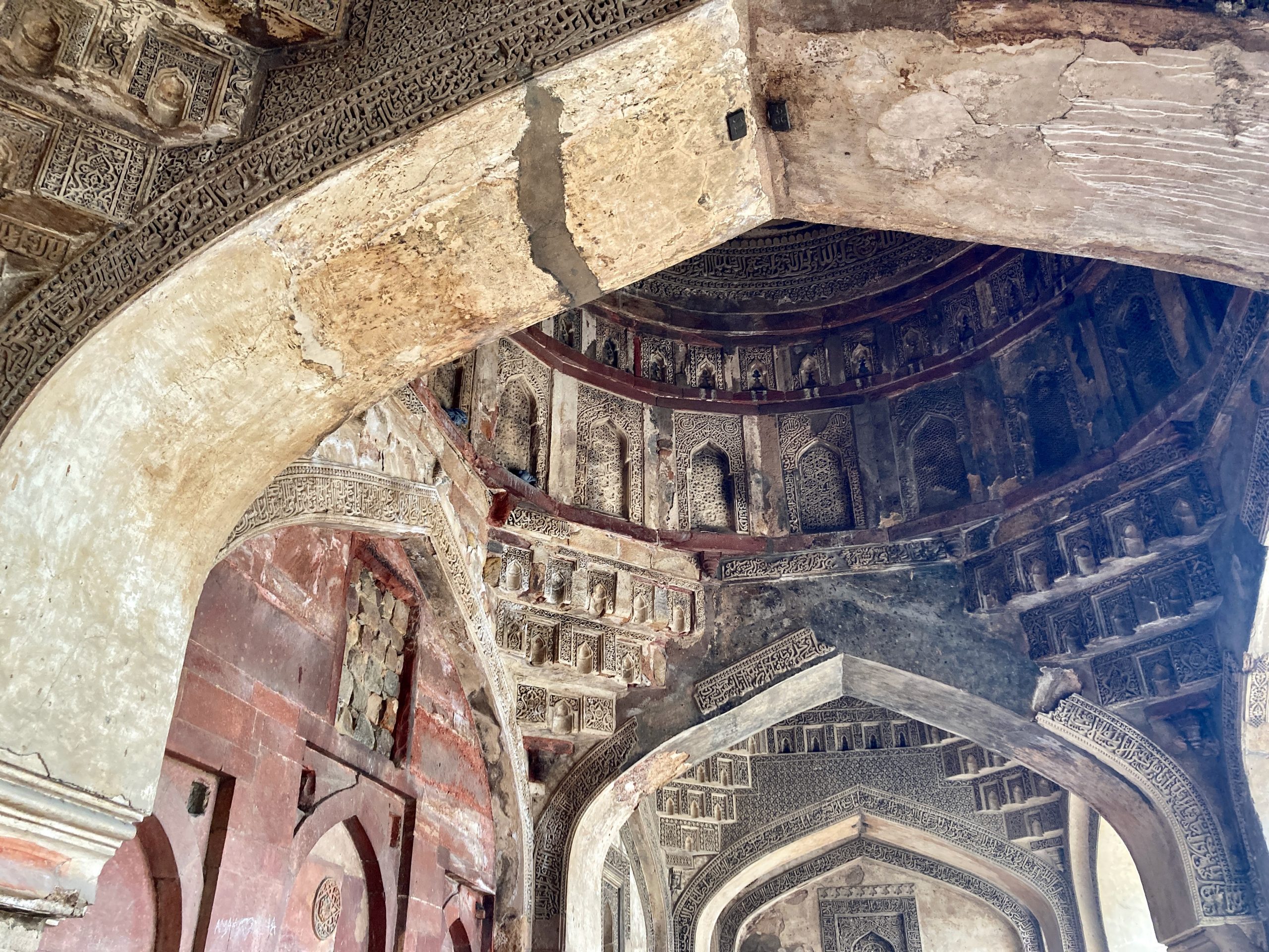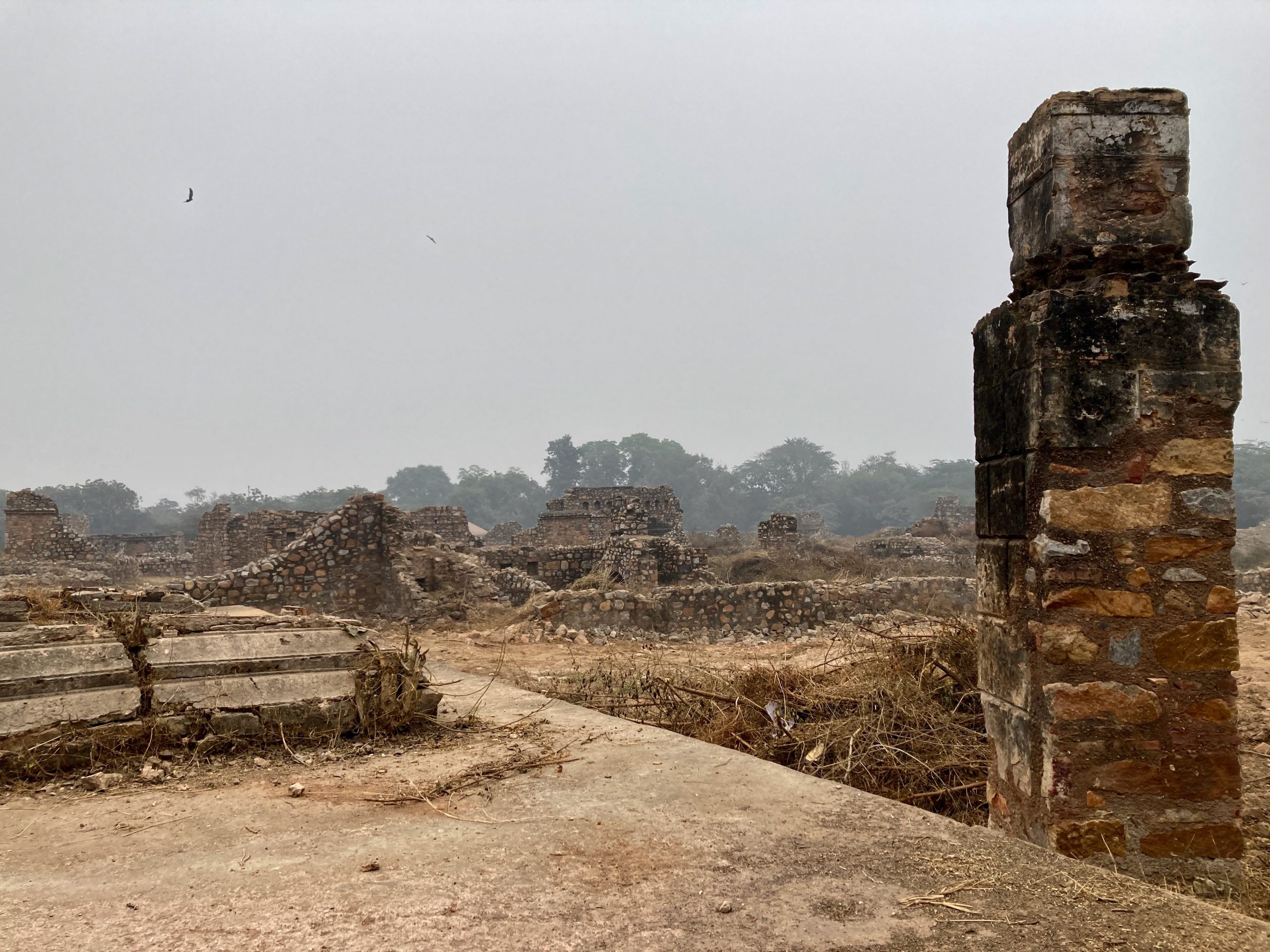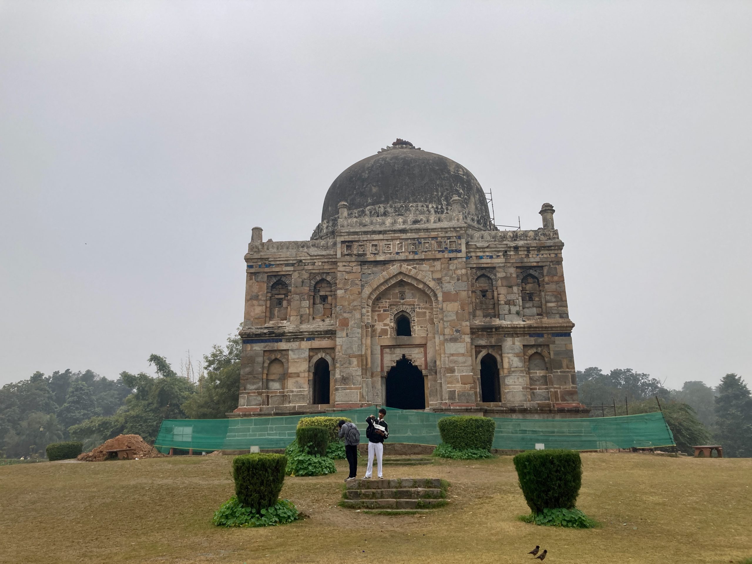 Wir besuchten den Mehrauli Park. Da habe ich vor vielen Jahren mal einen Heritage Walk gemacht und es hatte mir sehr gut gefallen. Inzwischen ist viel mehr eingezäunt und kostenpflichtig und bei dem Wetter war es auch nicht ganz so attraktiv. Aber mir ging erst jetzt auf, dass das quasi mit zum nebenstehenden Qtab Minar gehört, da machte das alles ein bisschen mehr Zusammenhang.