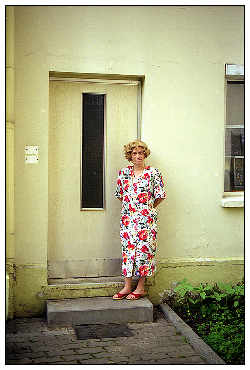 Zum Glück gab man Heidi K. eine weitere Aufgabe: Die Hinterhofbegrünung! Hier steht sie nun neben einigen liebevoll hochgezogenen und gepäppelten Pflanzen. Ausserdem war ihr ganzer Stolz die Hinterhoftür, wo es ihr immer wieder gelang, sie von den stetig wiederkehrenden Schmierereien zu befreien. Ja, wenn da mal jemand hübsche Blumen raufgemalt hätte! Aber immer diese Kreise mit Kreuzen darunter und fremdsprachige Ausdrücke wie „Power“, das konnte sie nicht tolerieren.