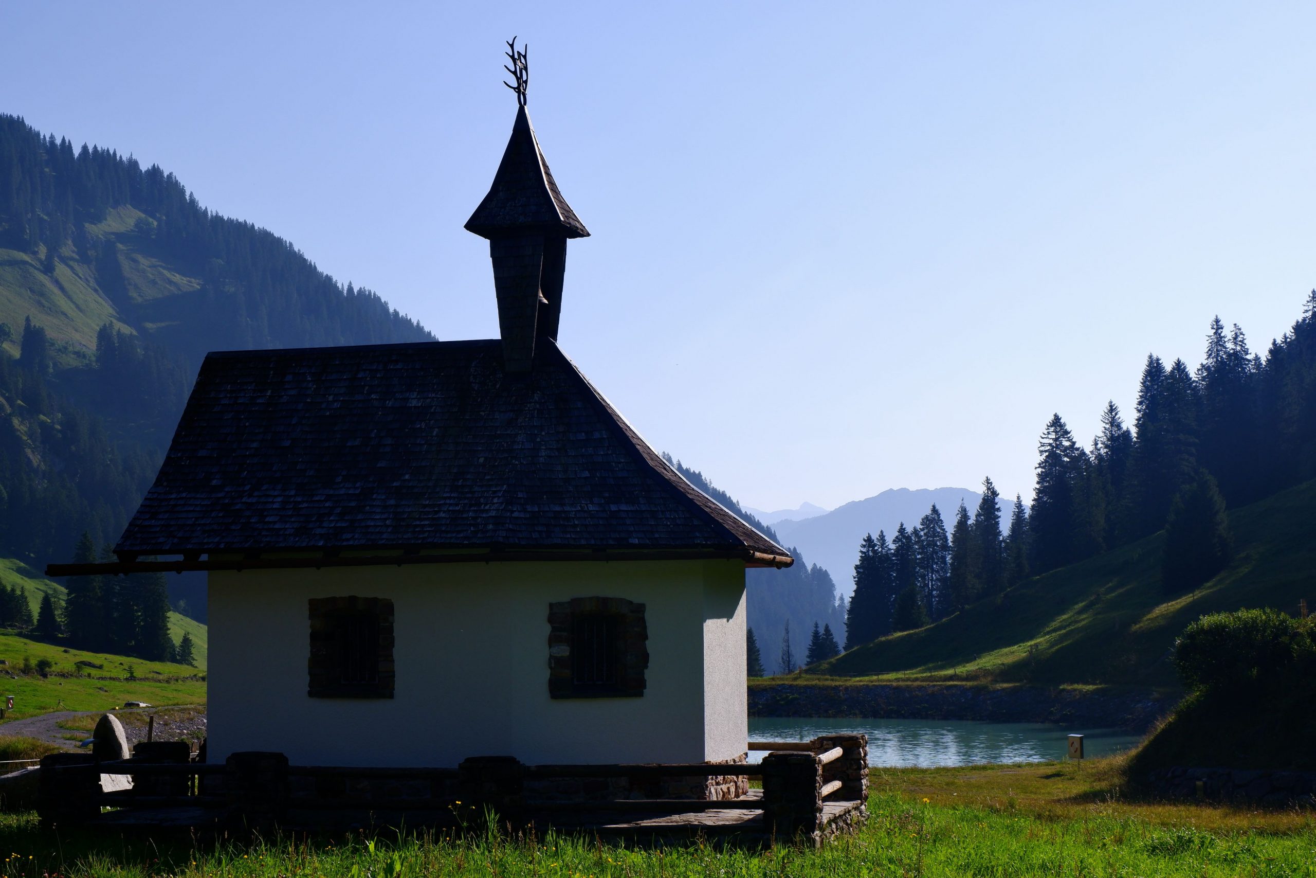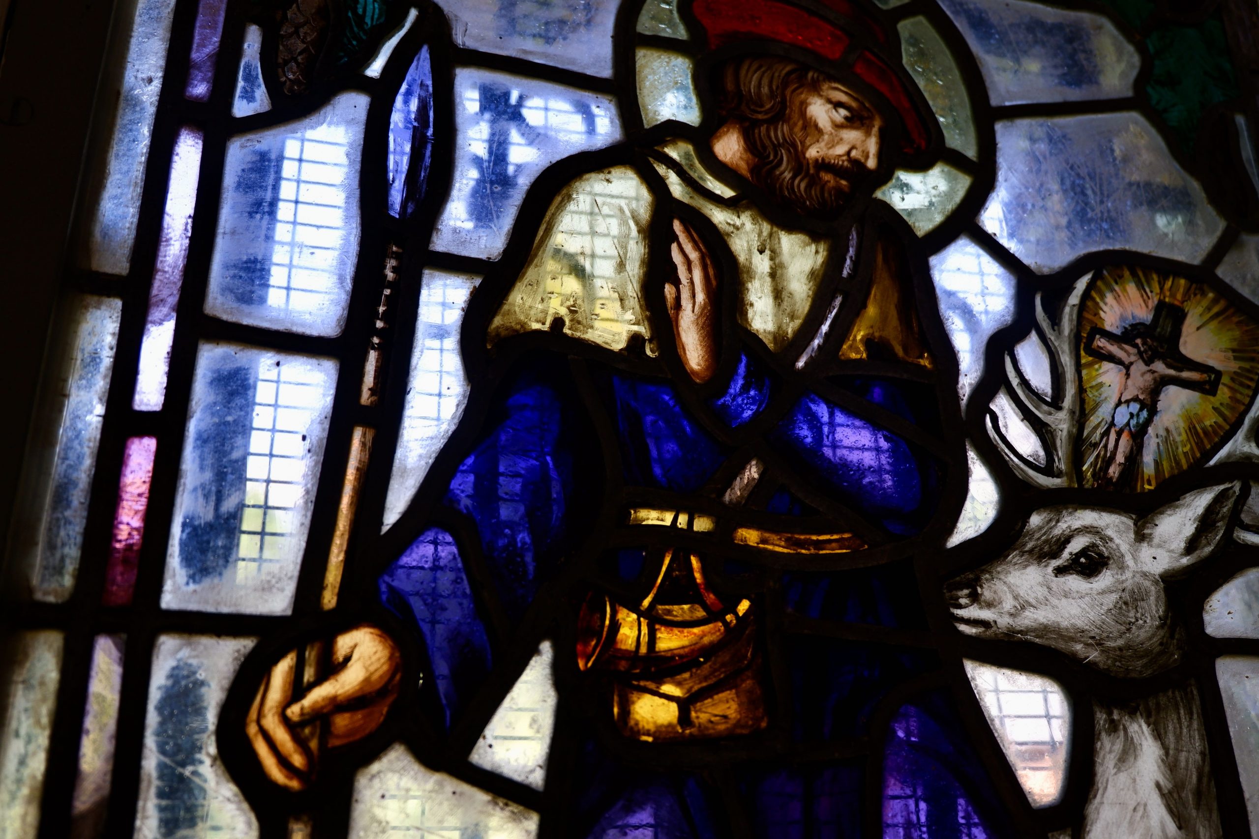 Es ging immer weiter runter bis zu einem Teich mit einer Jagdhütte und einer Kapelle, wo der Hl. Hubertus, der Schutzheilige für JägerInnen, Hunde, Natur und Umwelt verehrt wurde.