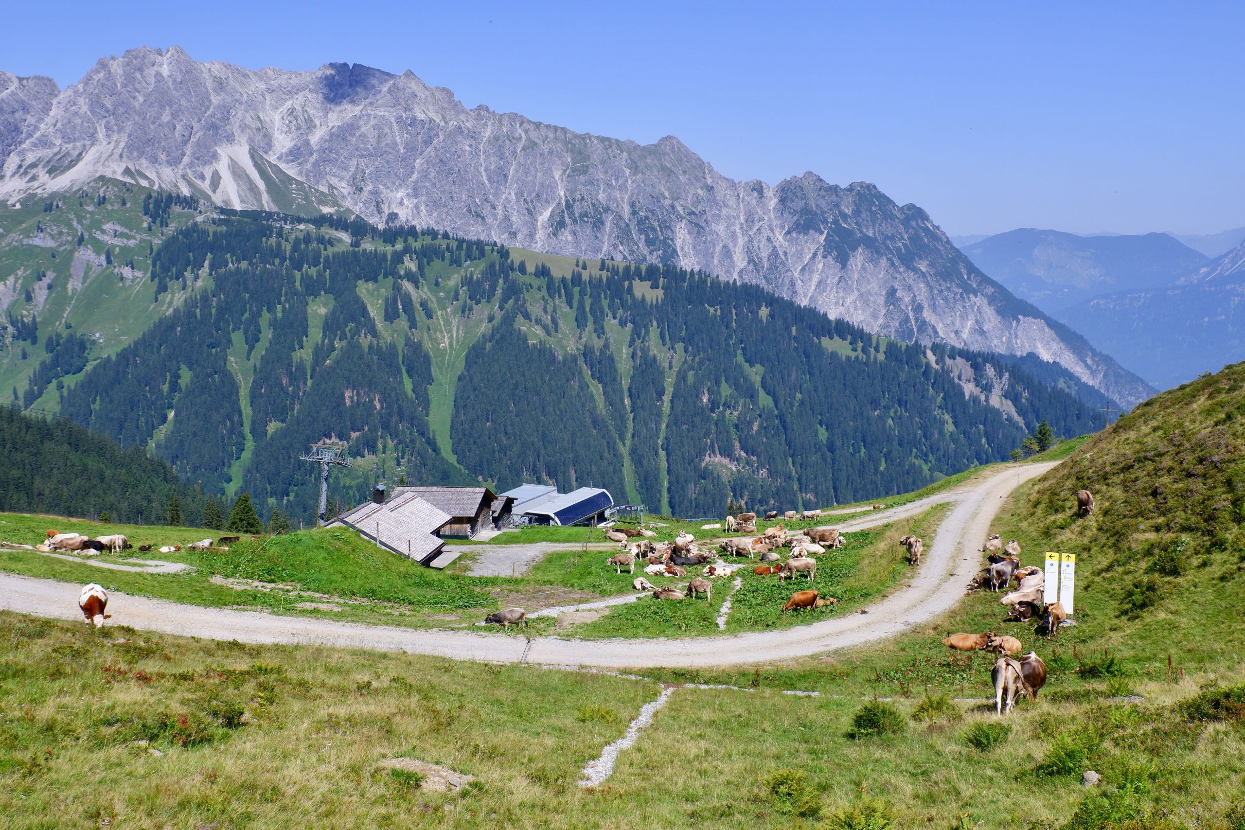 Dann starteten wir zuerst Richtung unten. Was ich in der Gegend interessant fand: mir schienen die Kuhherden größer als in den von mir vorher wahrgenommenen Alpengegenden. Überall hörte man Gebimmel und Gemuhe.