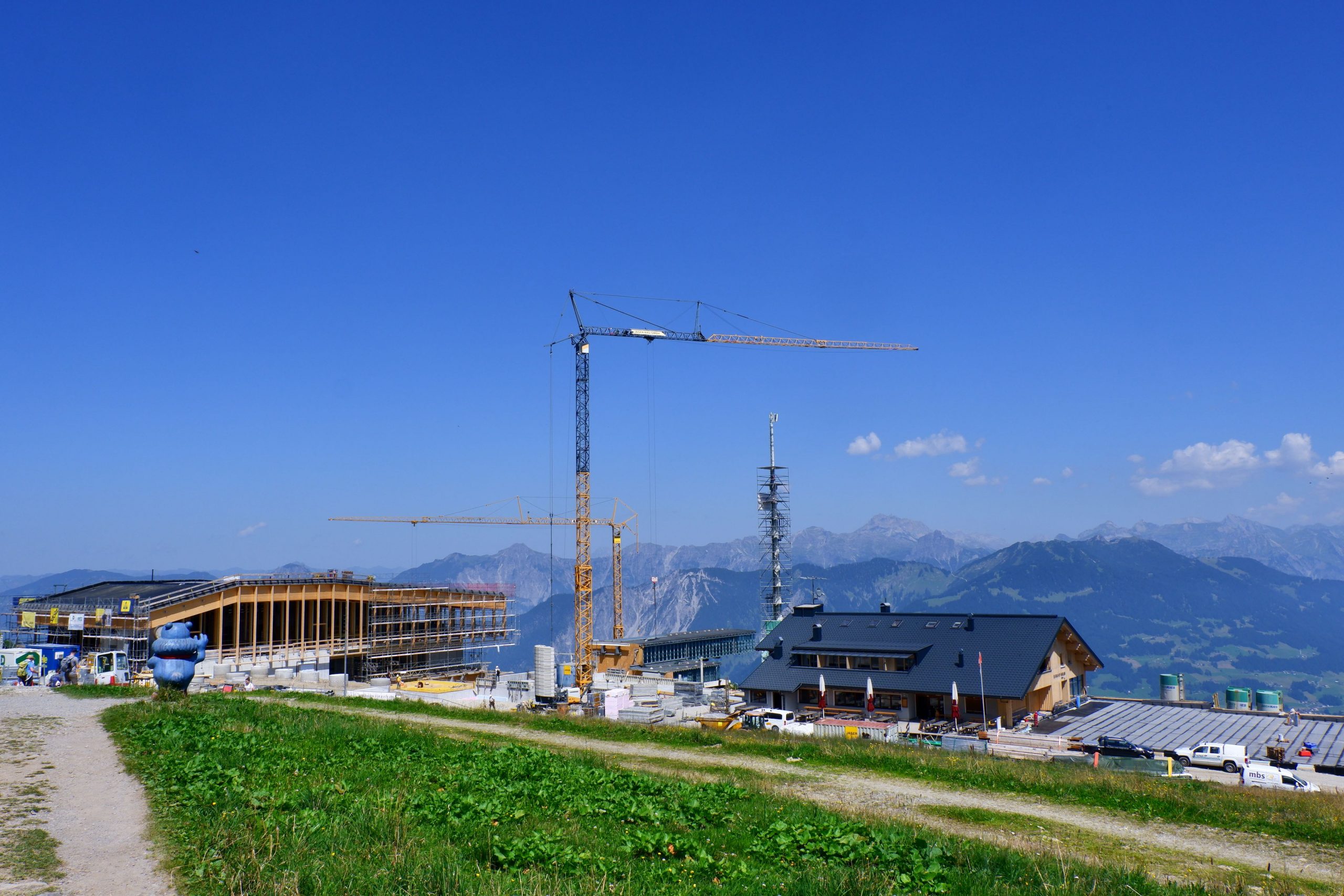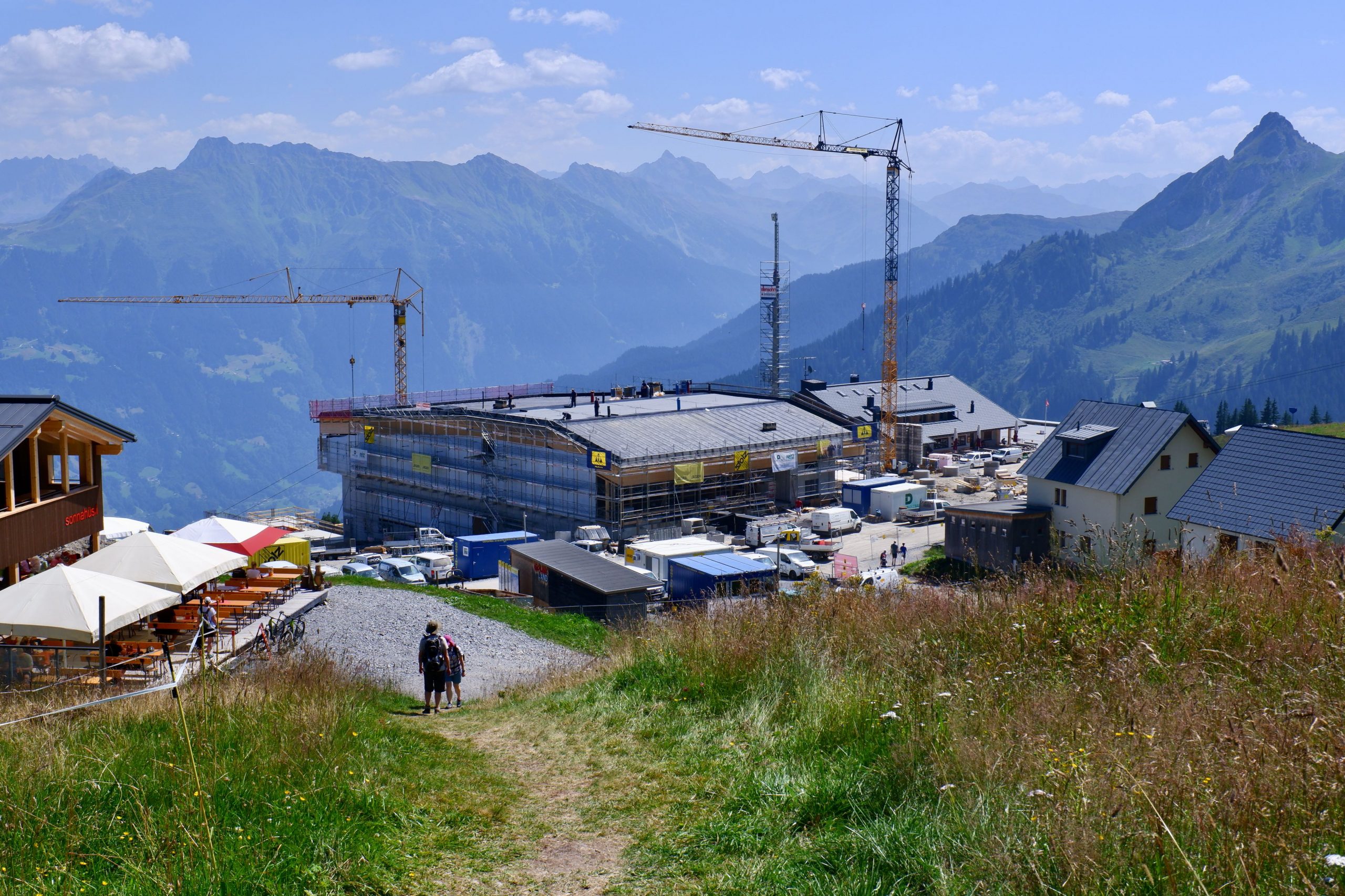 Dann kamen wir in den Bereich der Golmer Bergbahn und hofften auf ein Schattenplätzchen zum Mittag. Allerdings waren die Gegebenheiten etwas anders. Eine riesige Baustelle! Da wir doch etwas (Hitze)erschöpft waren, sind wir in eine dortige Wirtschaft eingekehrt und ich habe 1 l Flüssigkeit zu mir genommen. Das tat gut! Mir machten Sonne und Hitze doch etwas zu schaffen. Aber ich war froh, nur wandern zu „müssen“ und nicht auf der Baustelle zu schuften. Faszinierend, was da so gebaut wird!