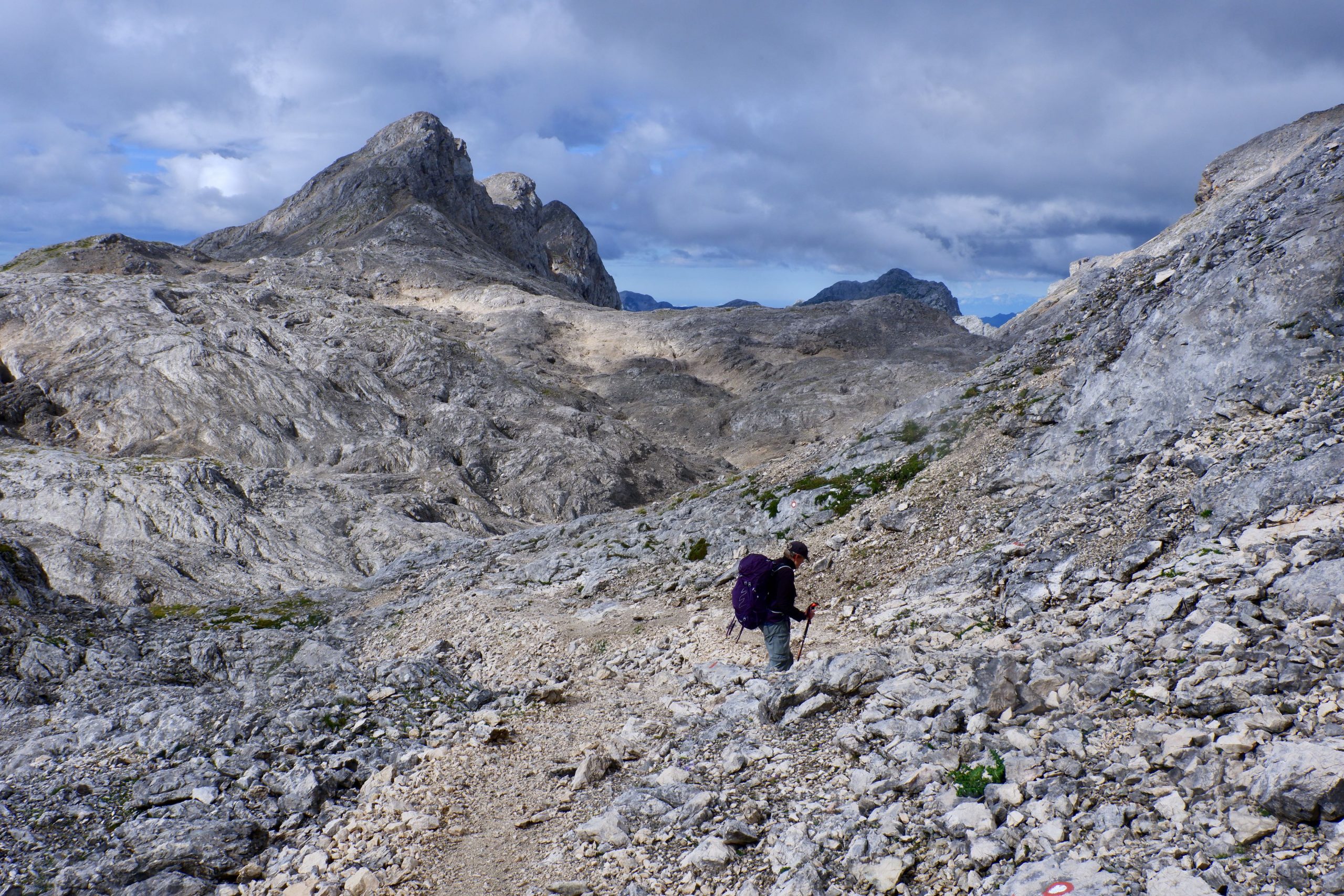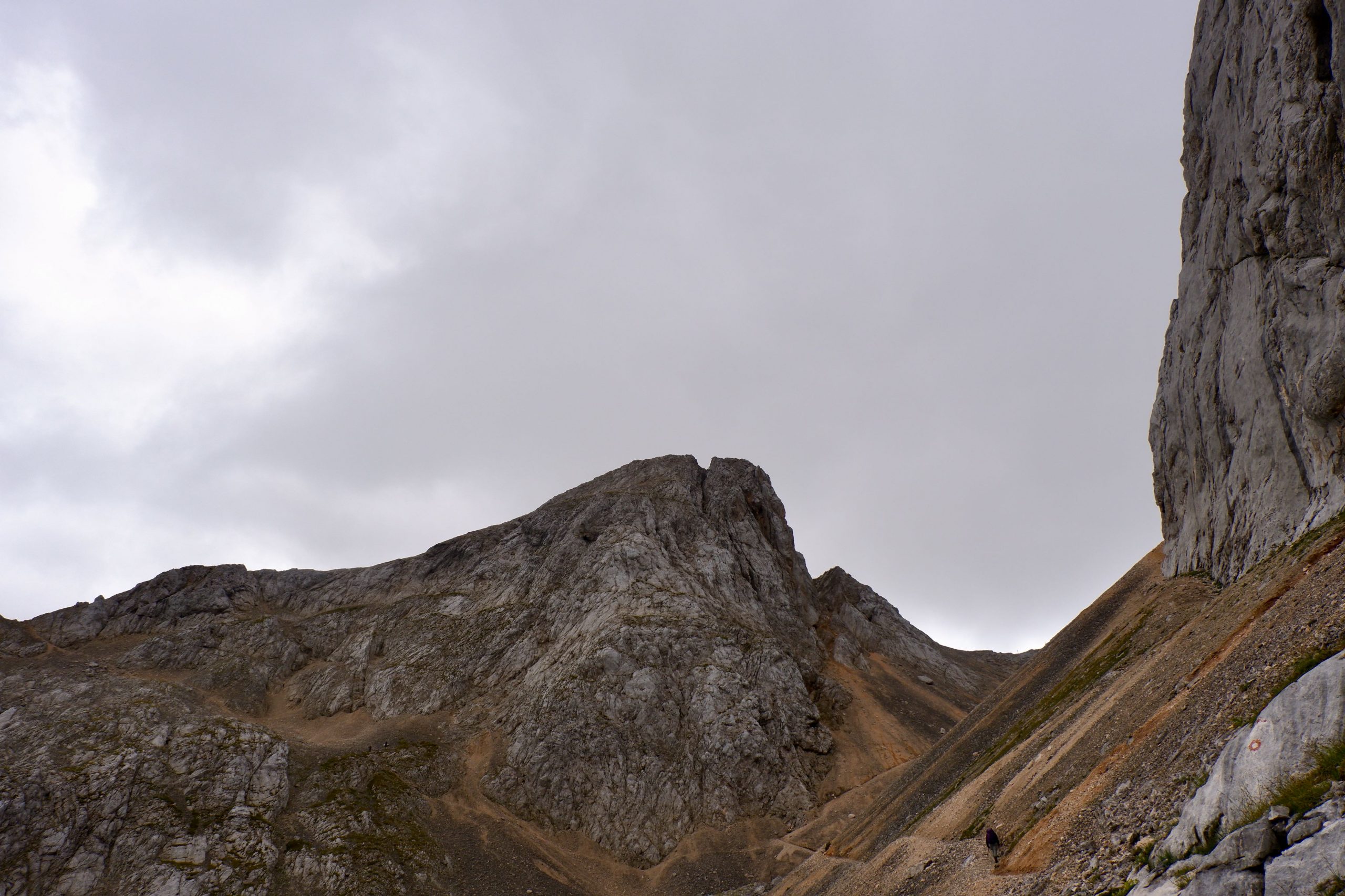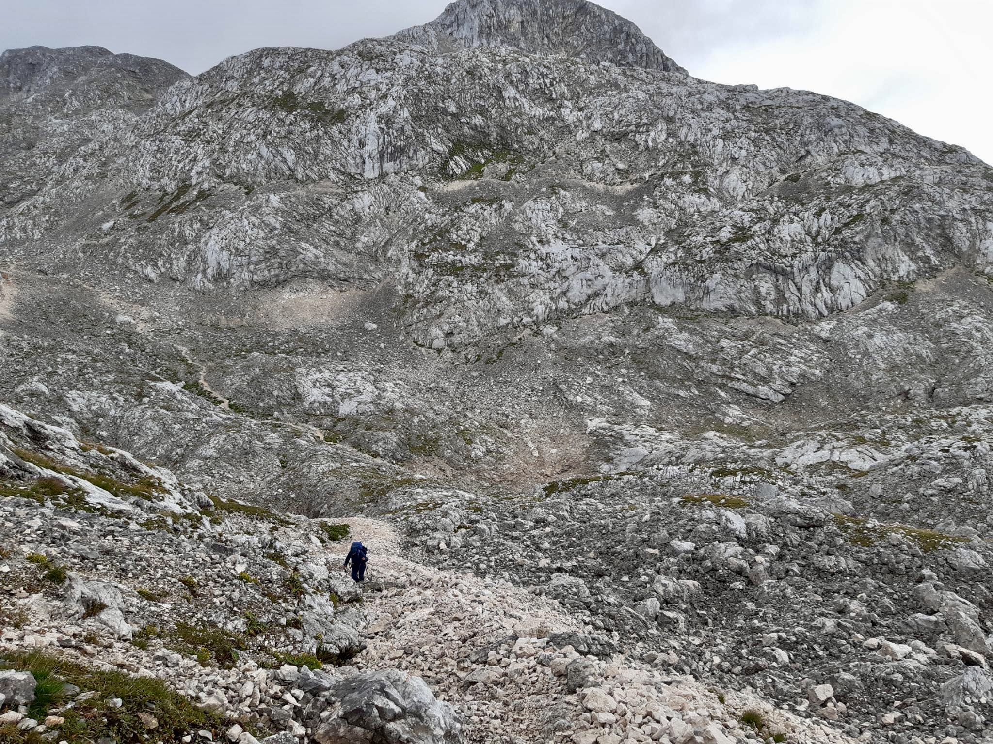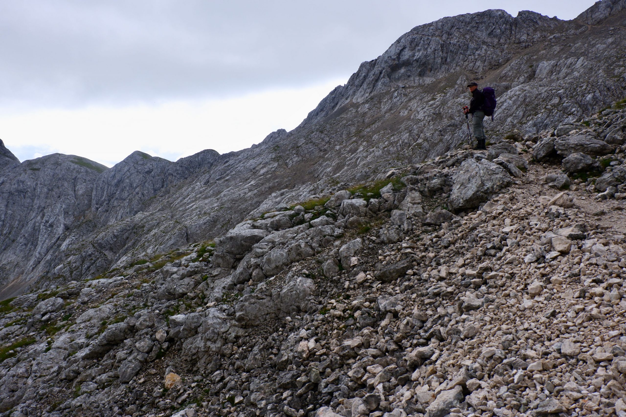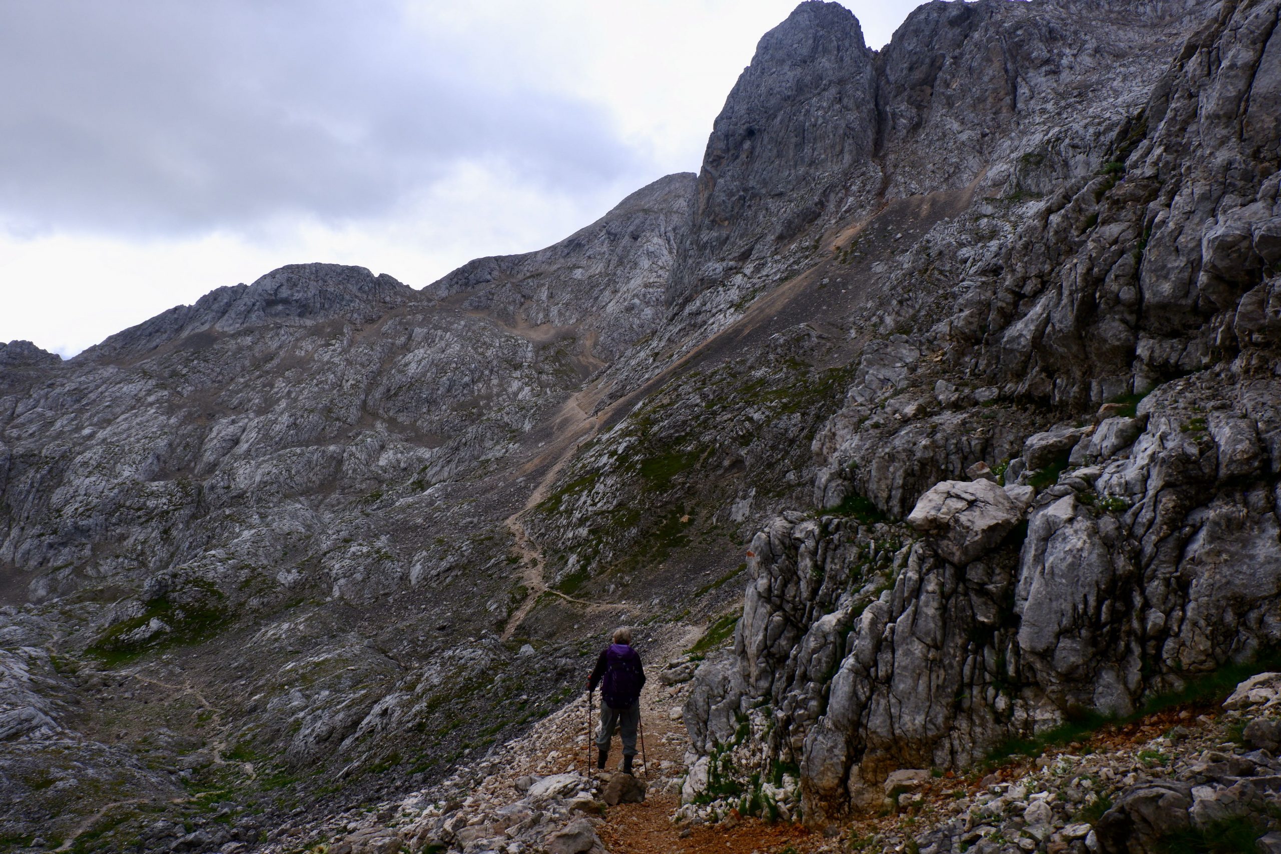Zuerst war es wolkig und kühl und ging einen Pass hinauf. Ich musste immer wieder stehen bleiben und staunen über die schroffe Bergwelt.
