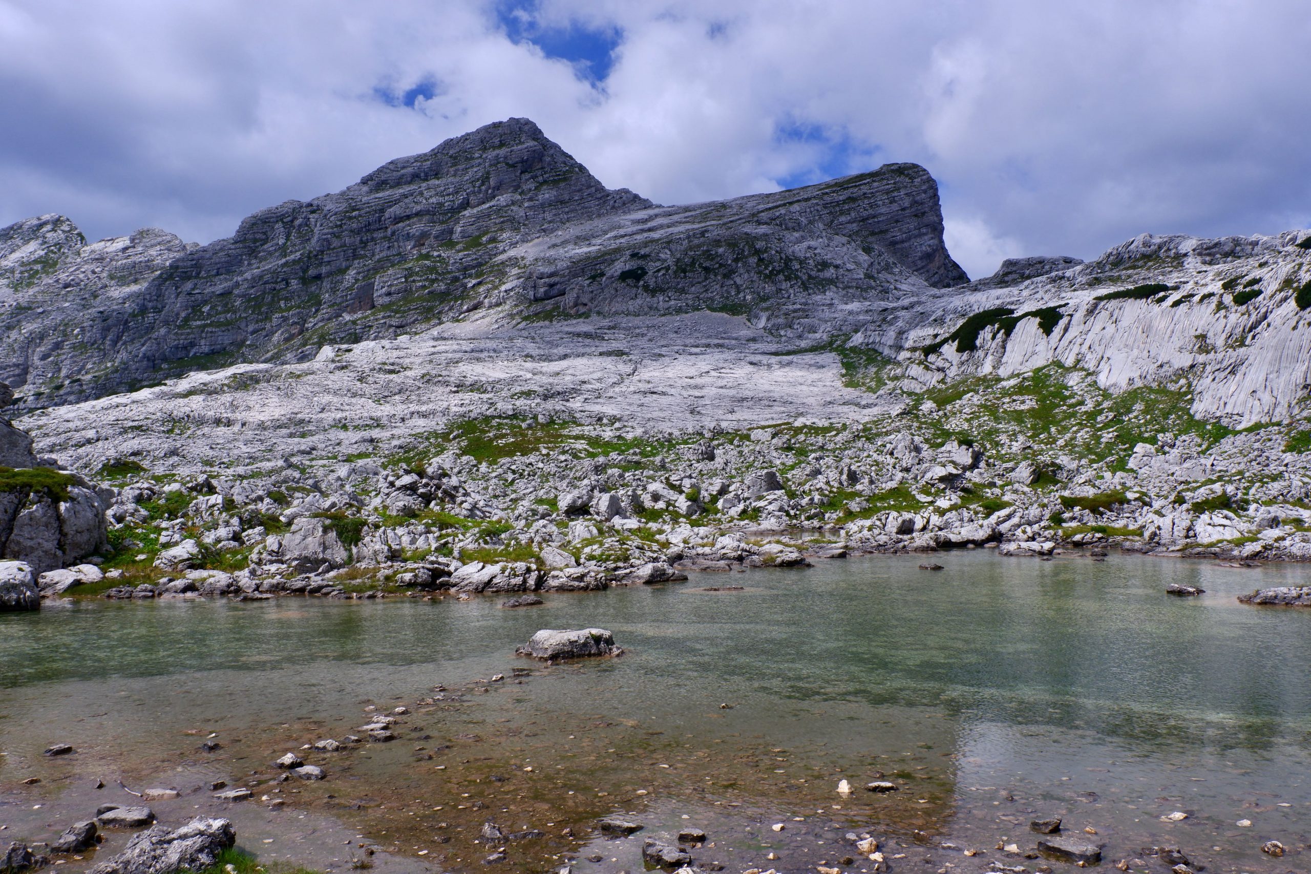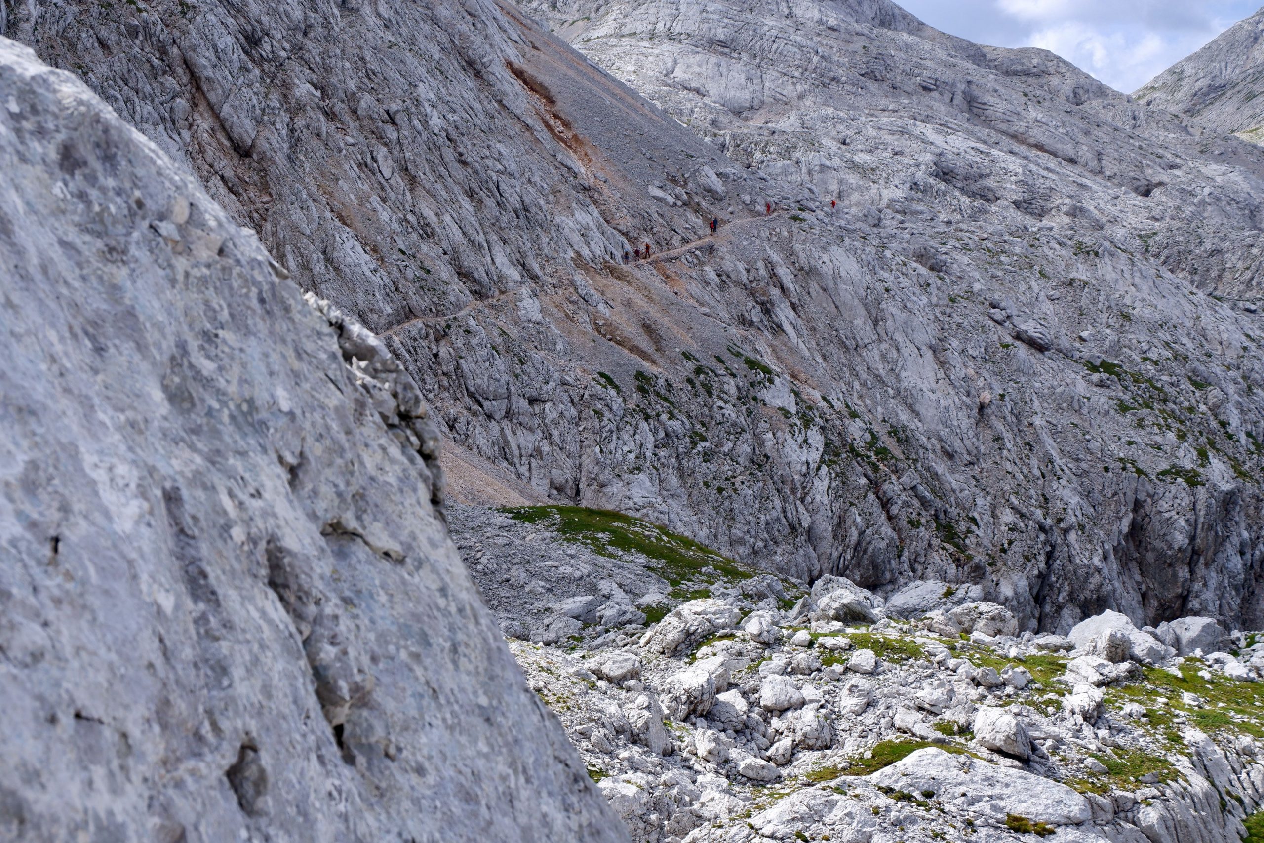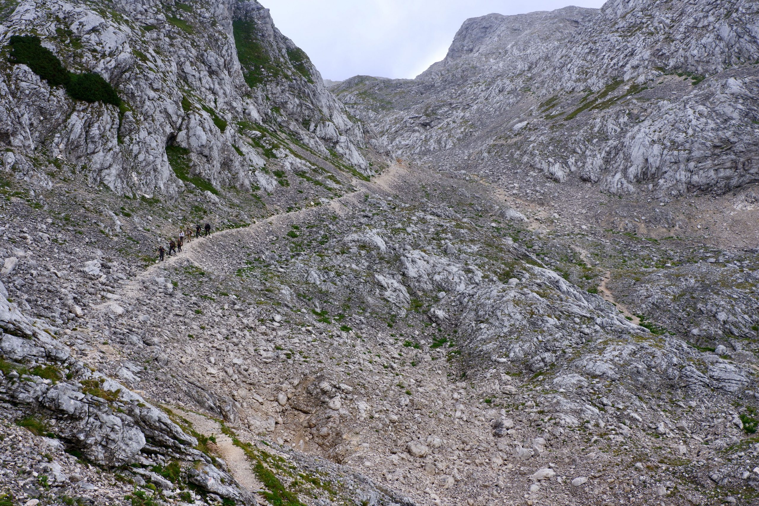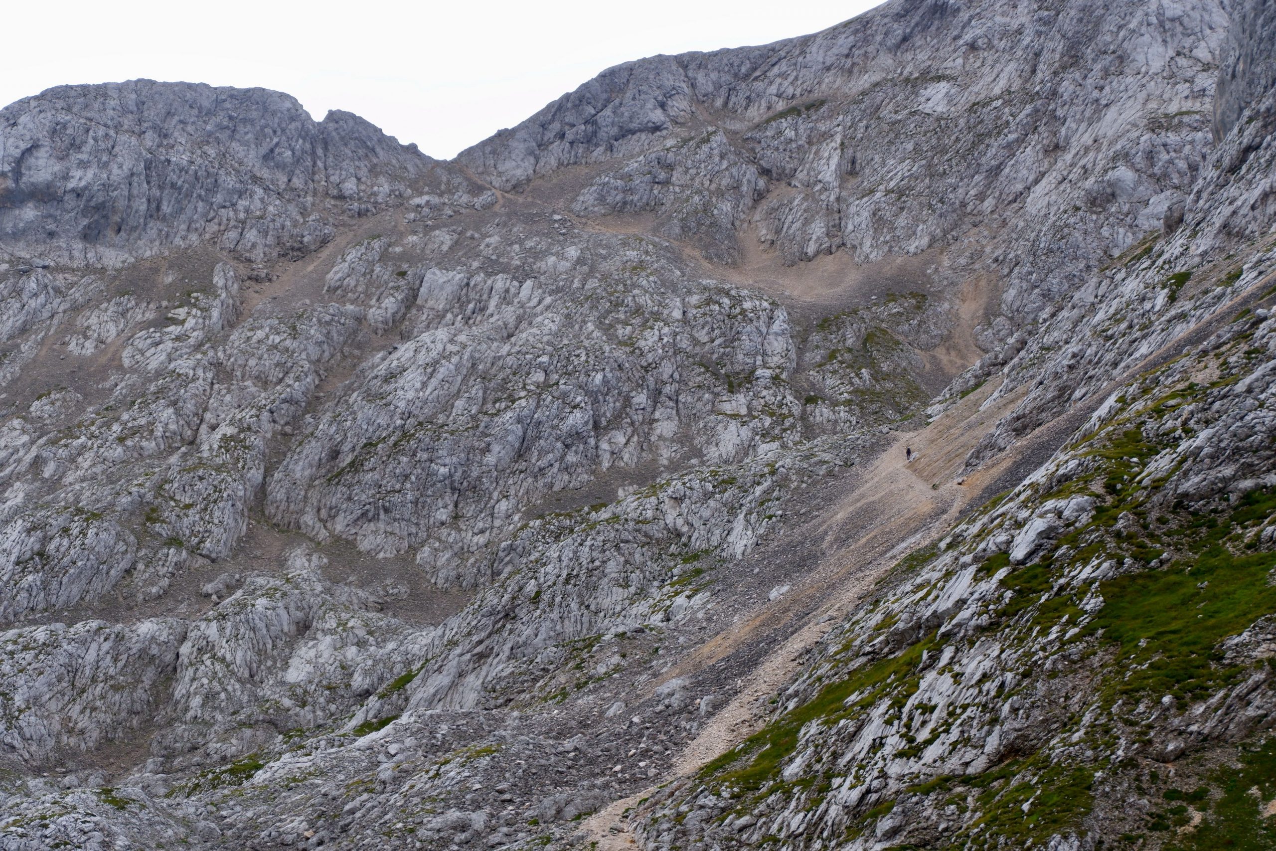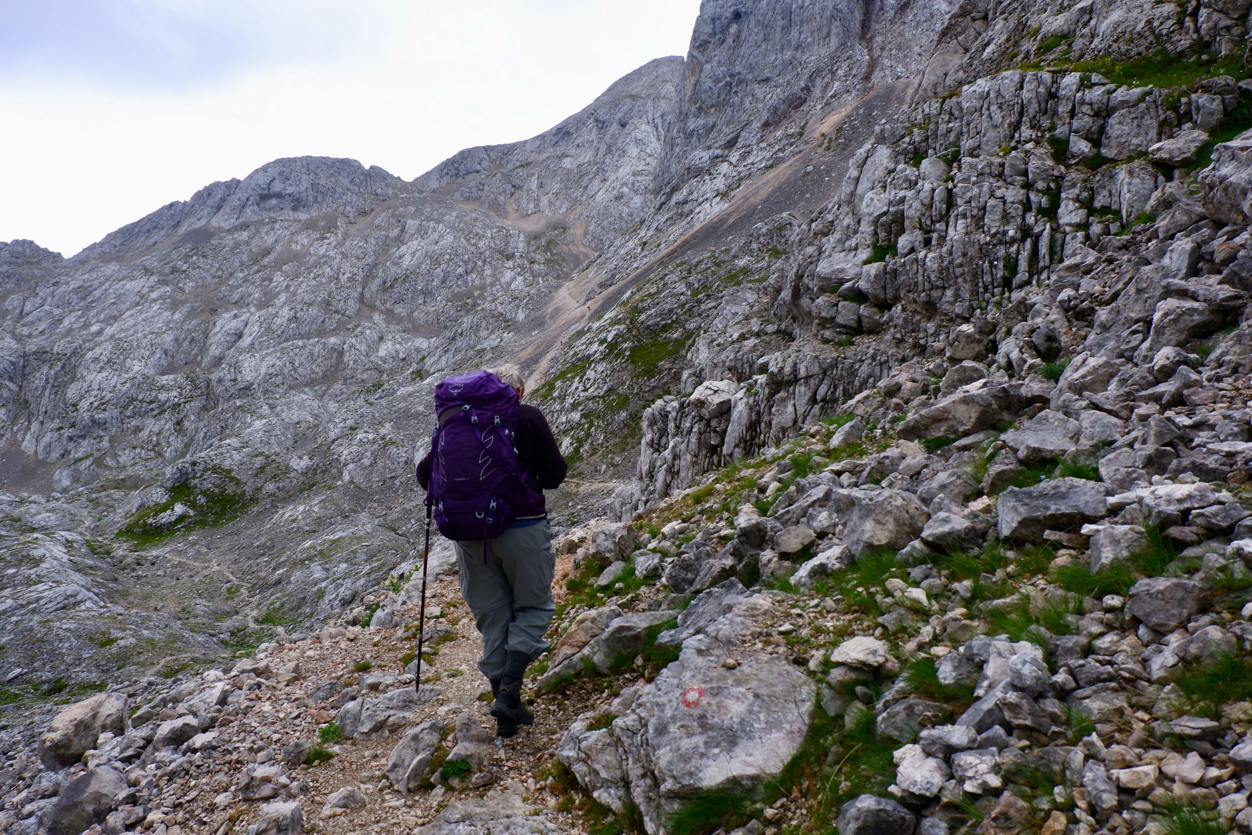 Zuerst war es wolkig und kühl und ging einen Pass hinauf. Ich musste immer wieder stehen bleiben und staunen über die schroffe Bergwelt.