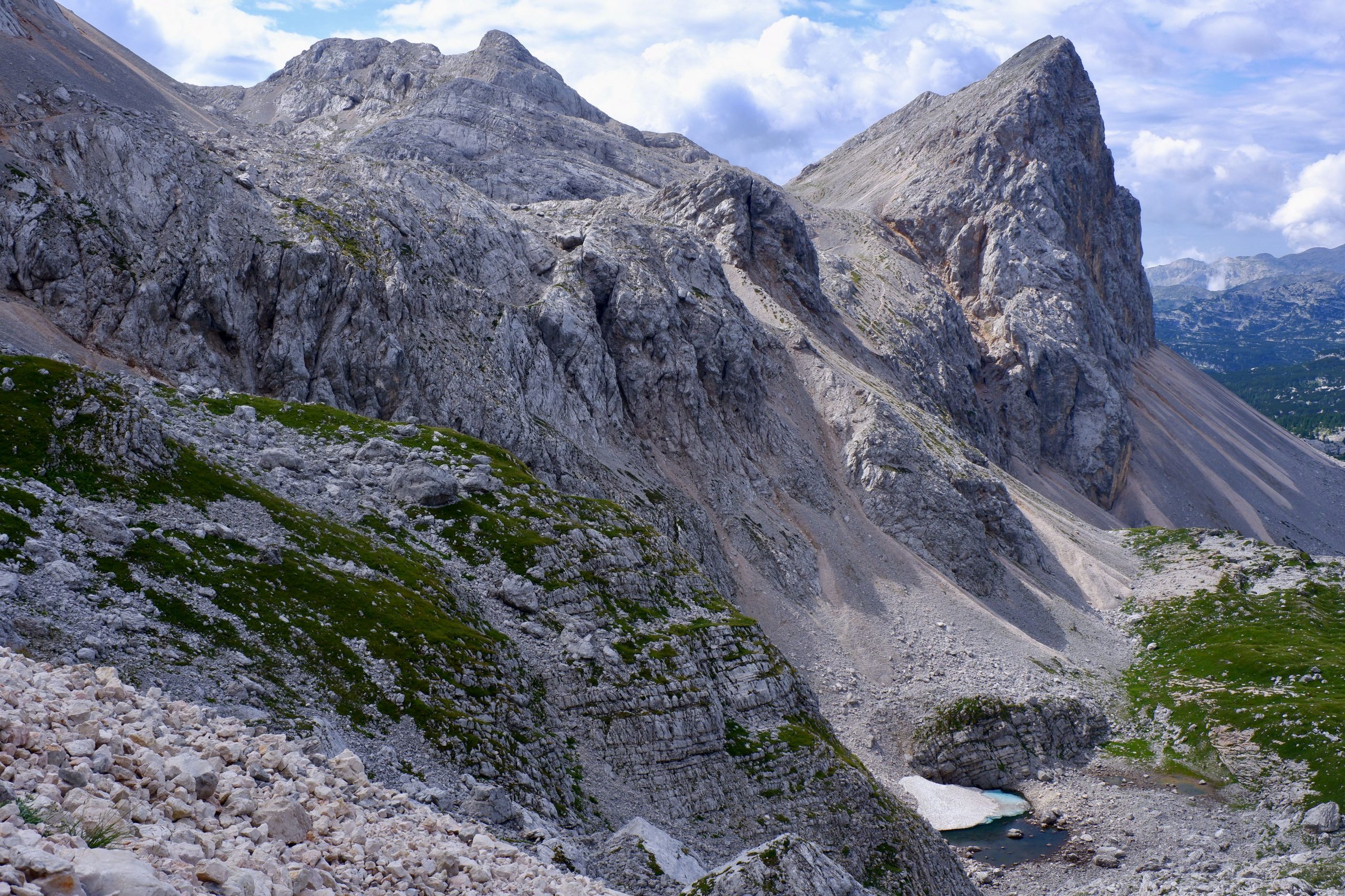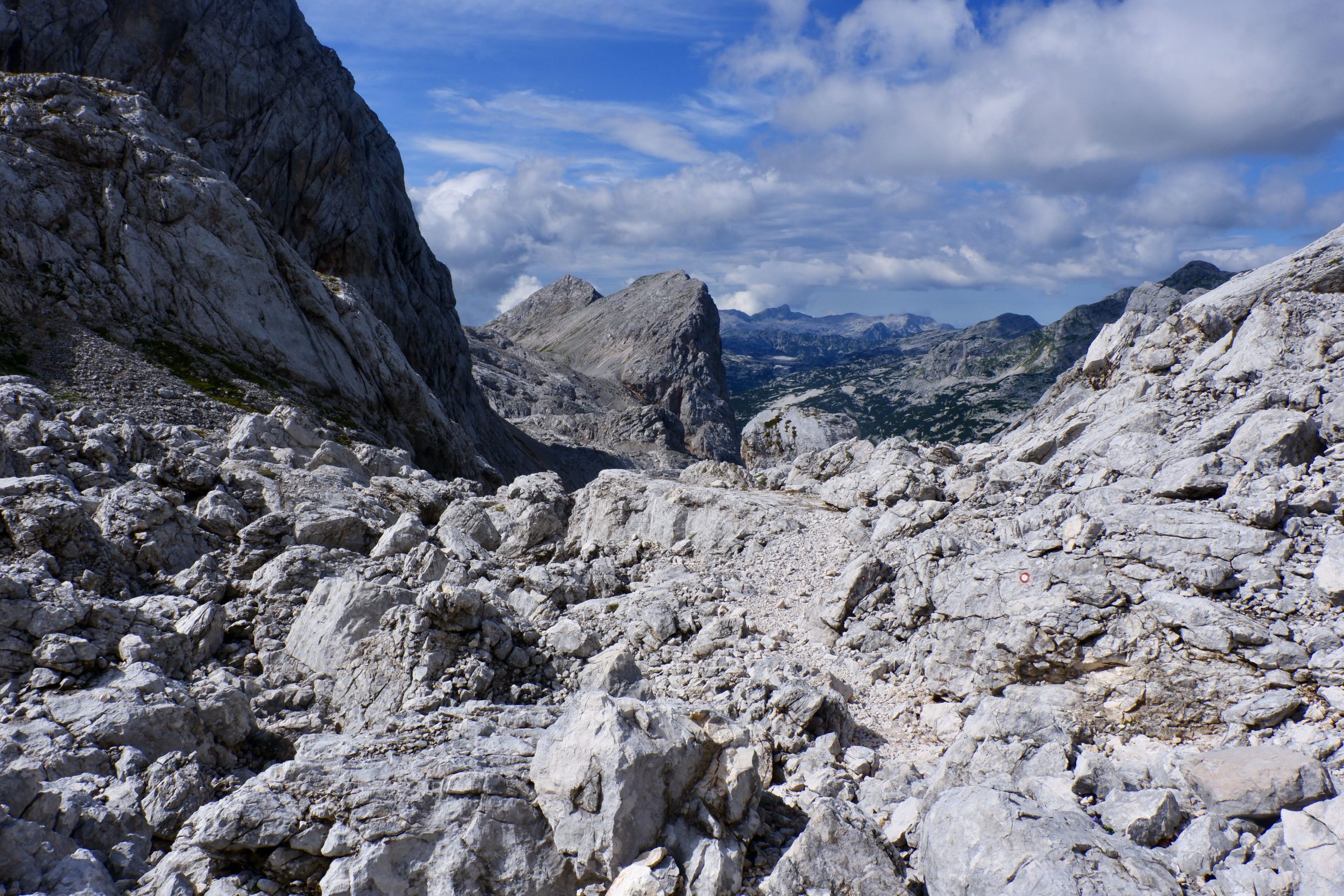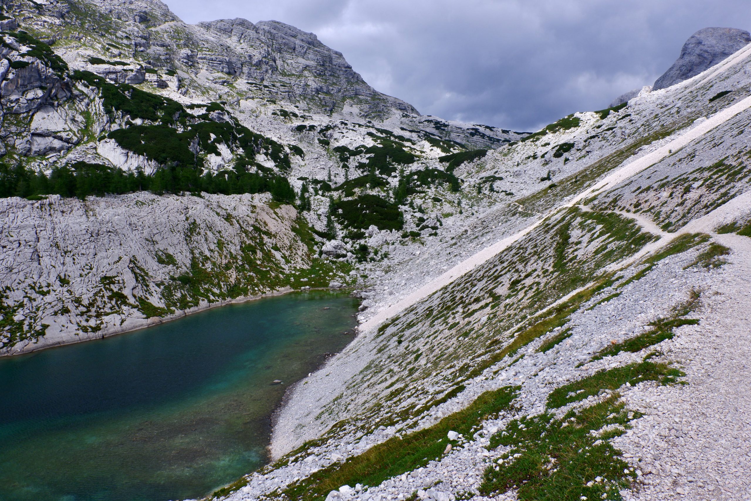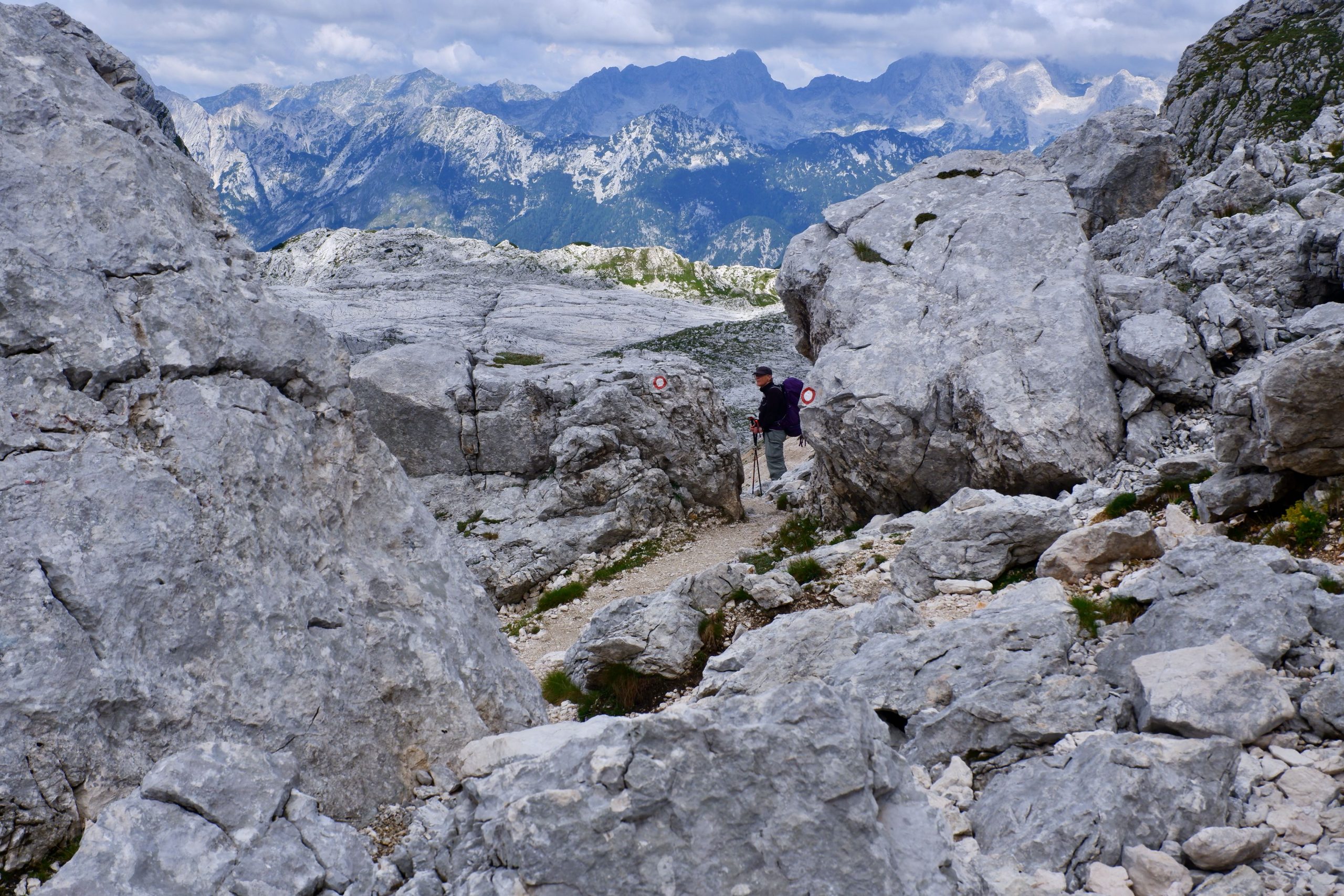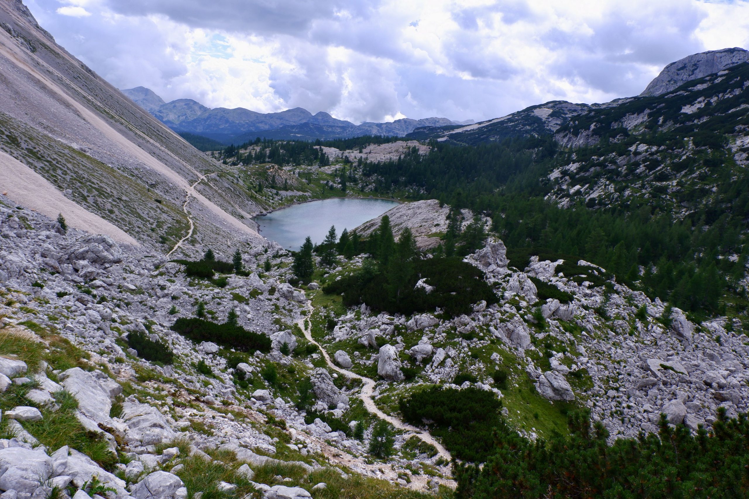 Zuerst war es wolkig und kühl und ging einen Pass hinauf. Ich musste immer wieder stehen bleiben und staunen über die schroffe Bergwelt.