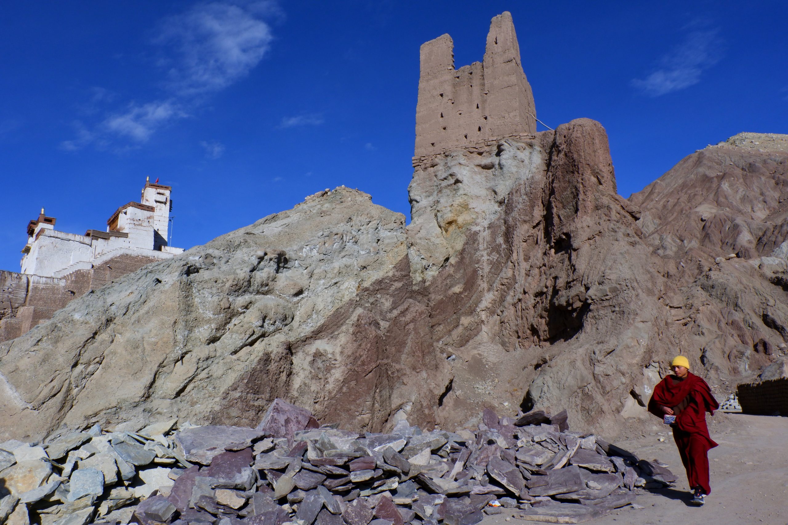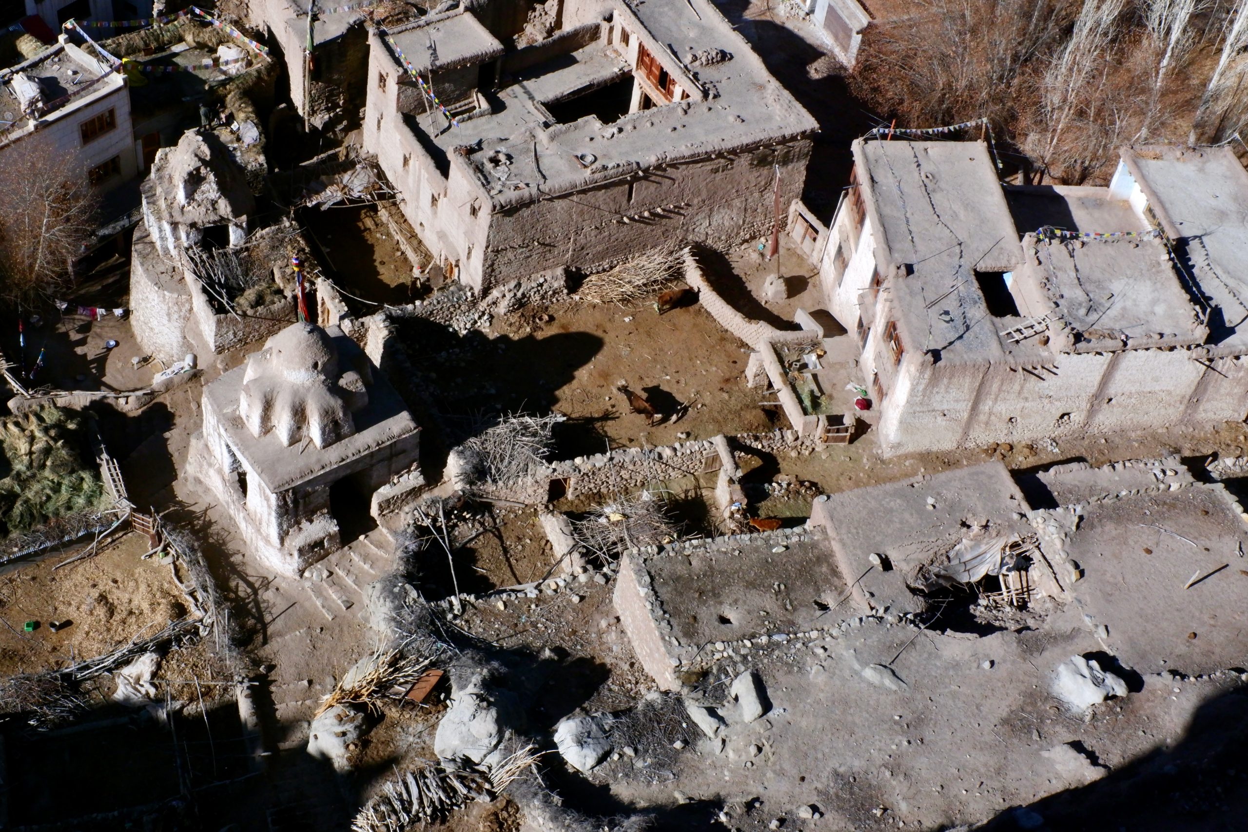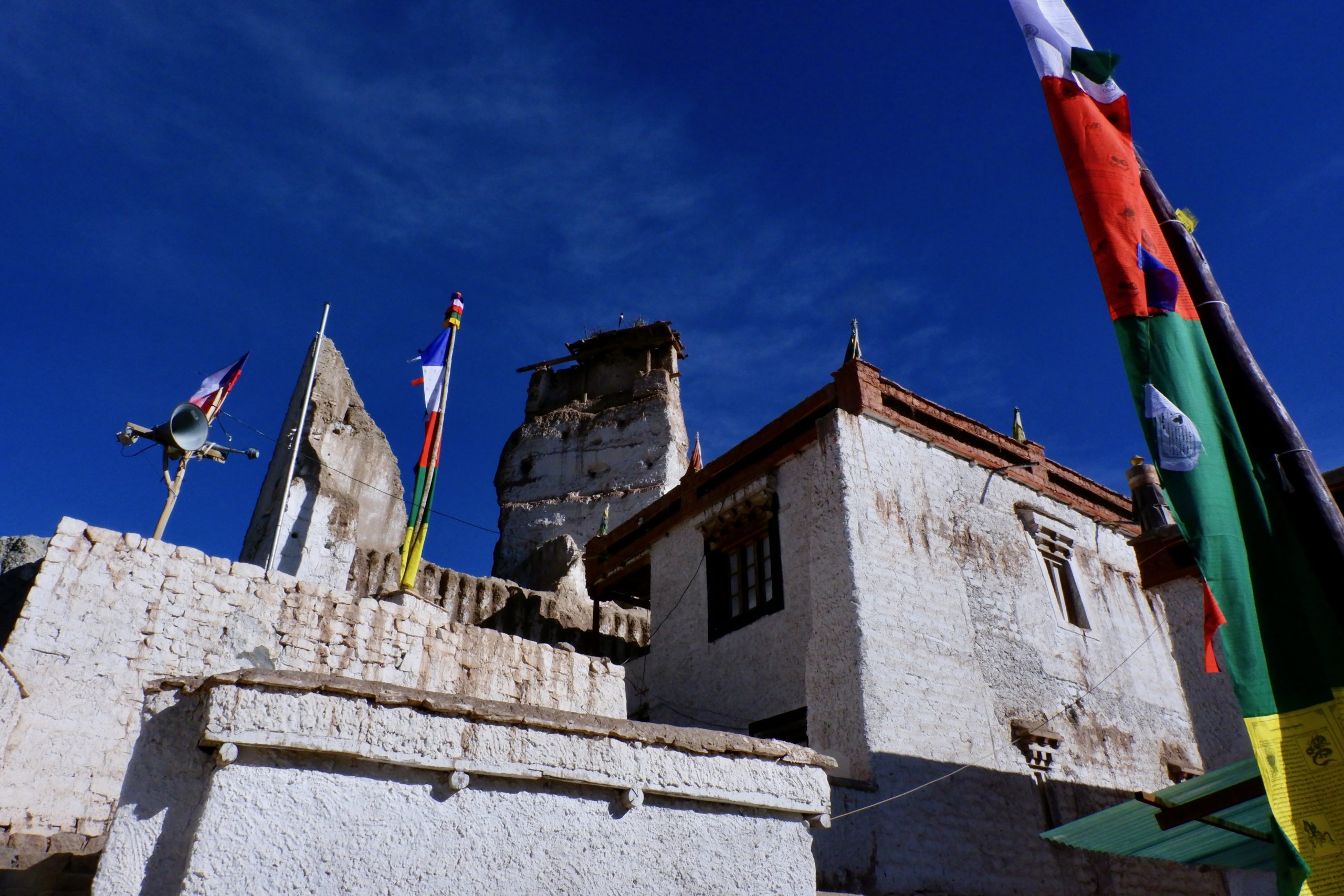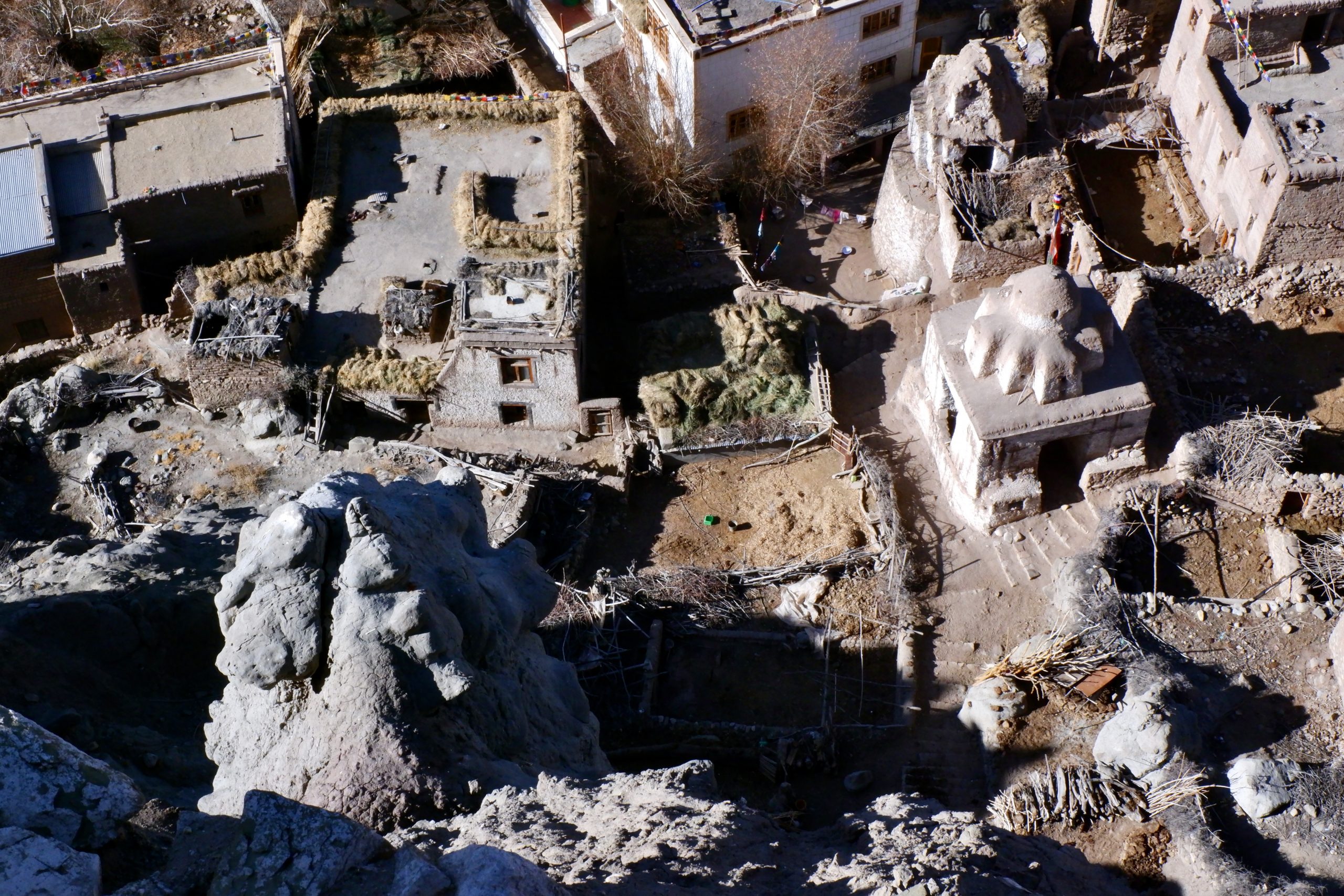 Wir nutzten die Zeit für eine Besichtigung vom Basgo KlostercumexPalast. Was ich gar nicht wusste (oder mir entfallen war): hier hatten 2 Klöster ihre Hände im Spiel. Ein oberer Komplex gehört zum Likir-Kloster (Gelugpa Orden) und es gab keinen Schlüssel, der untere zum Hemis-Kloster (Drukpa Orden) – und den konnten wir besichtigen. Irgendwie hatte ich Basgo nie so wirklich auf dem Schirm als sehenswerte Gebäude. Von innen ist es auch nicht ganz so spannend, aber die Lage und Geschichte sind schon toll.
