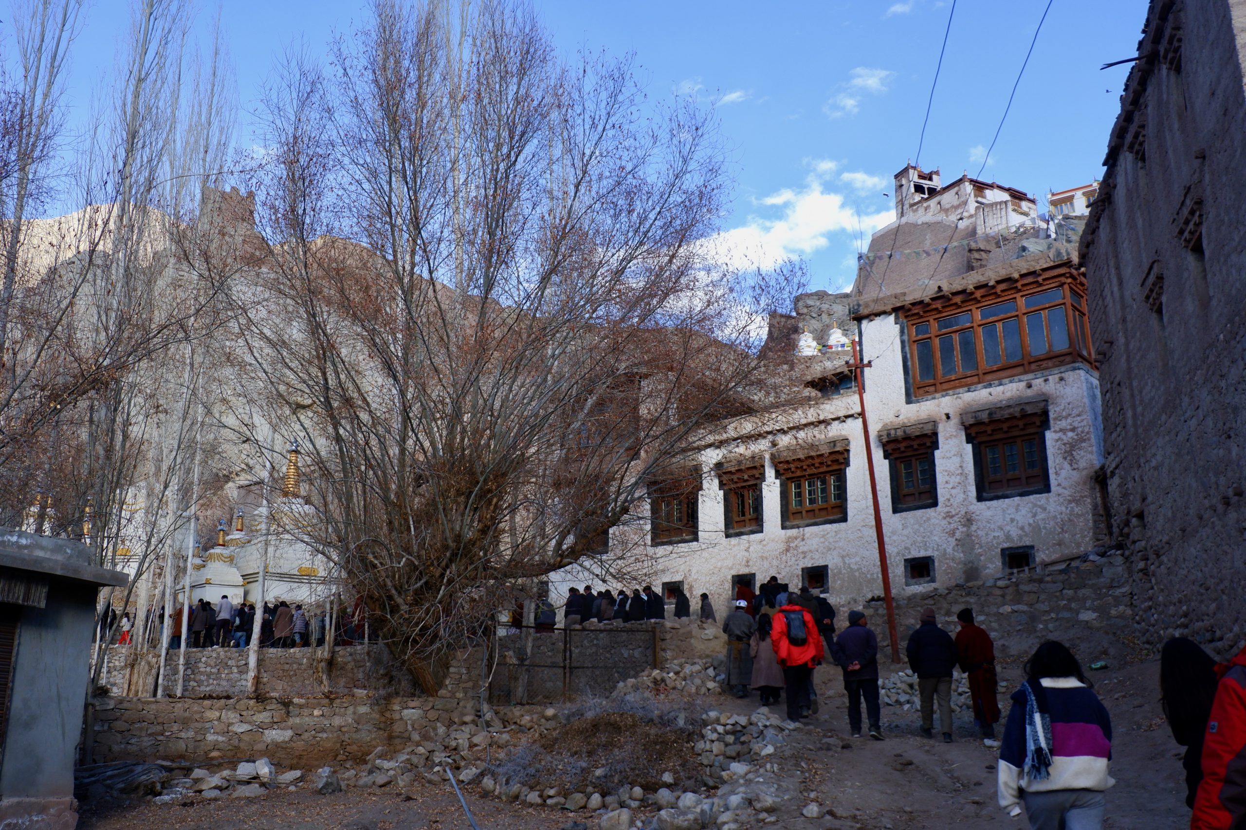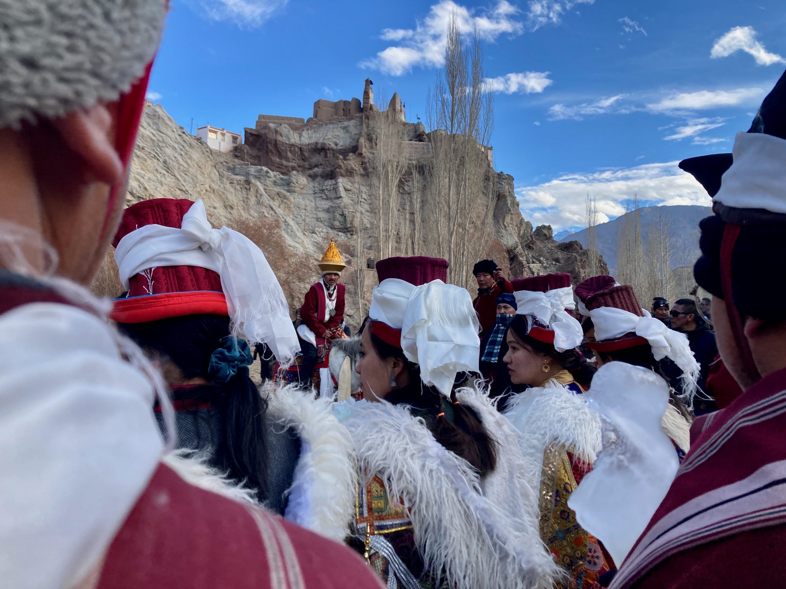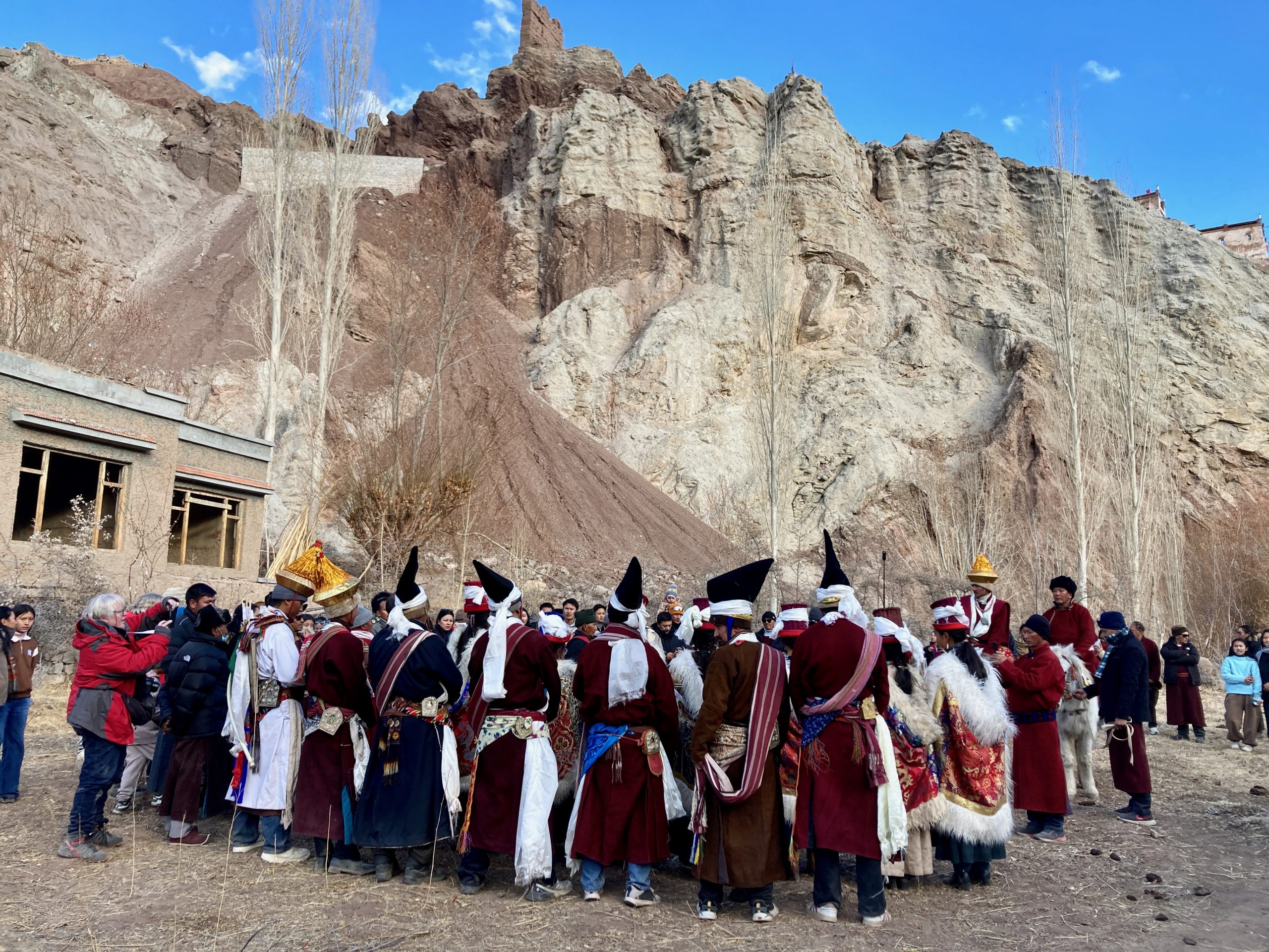 In Basgo war die einzige Losarfeierlichkeit, die fast in vollem Umfang statt finden sollte! Nur auf einen Tanz der Frauen wollte man verzichten. Ich bibberte, ob das tatsächlich alles so sein würde. Auch wenn wir schöne Erlebnisse gehabt hatten, tat es mir so für die Gruppe leid, die extra wegen dieser ganzen Feierlichkeiten angereist gekommen war. Und als wir in Basgo eintrafen, hörten wir, dass jemand am Vorabend gestorben war….. Das hatte dann (zum Glück für uns) doch nur eine Verzögerung zur Folge und keinen Ausfall.