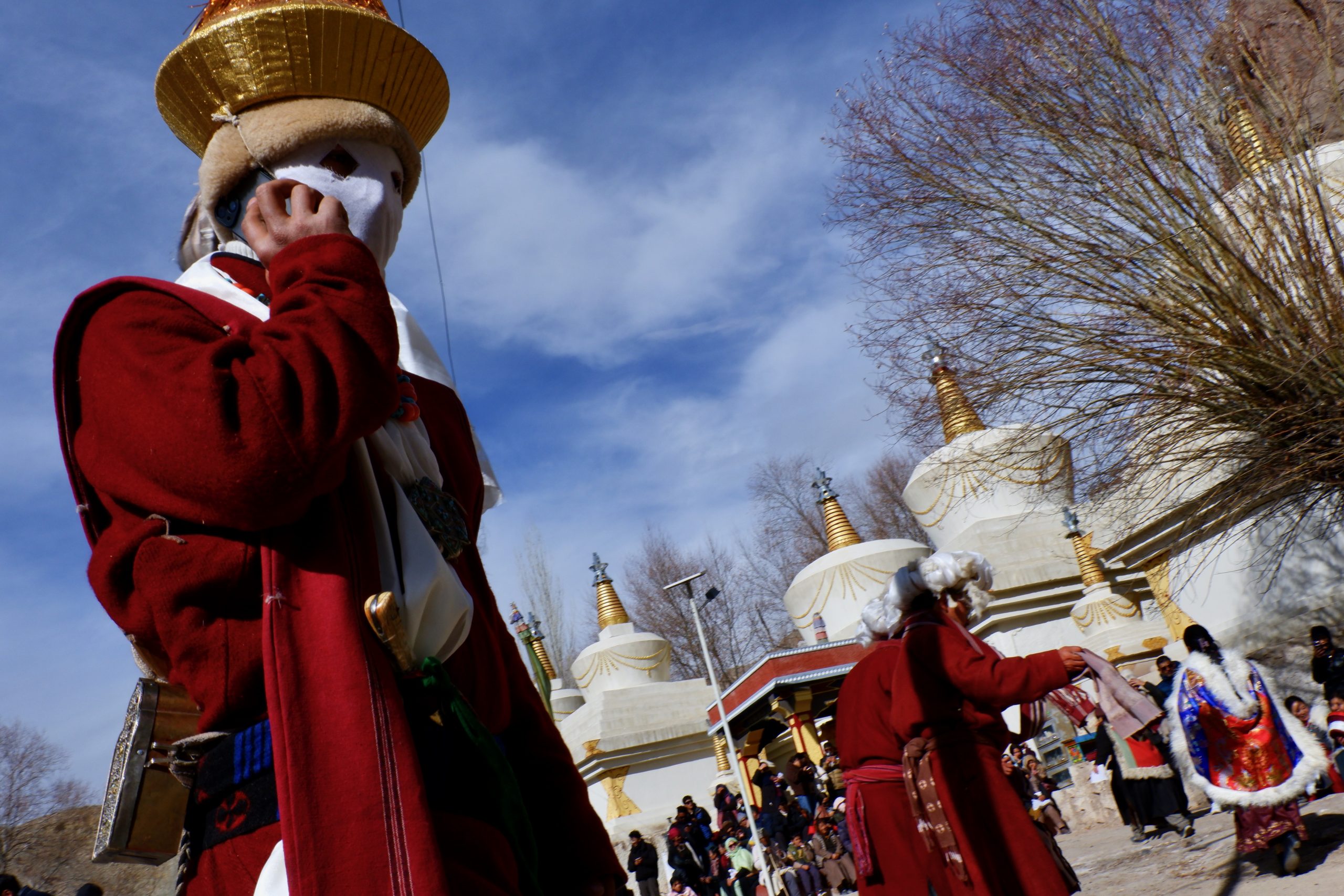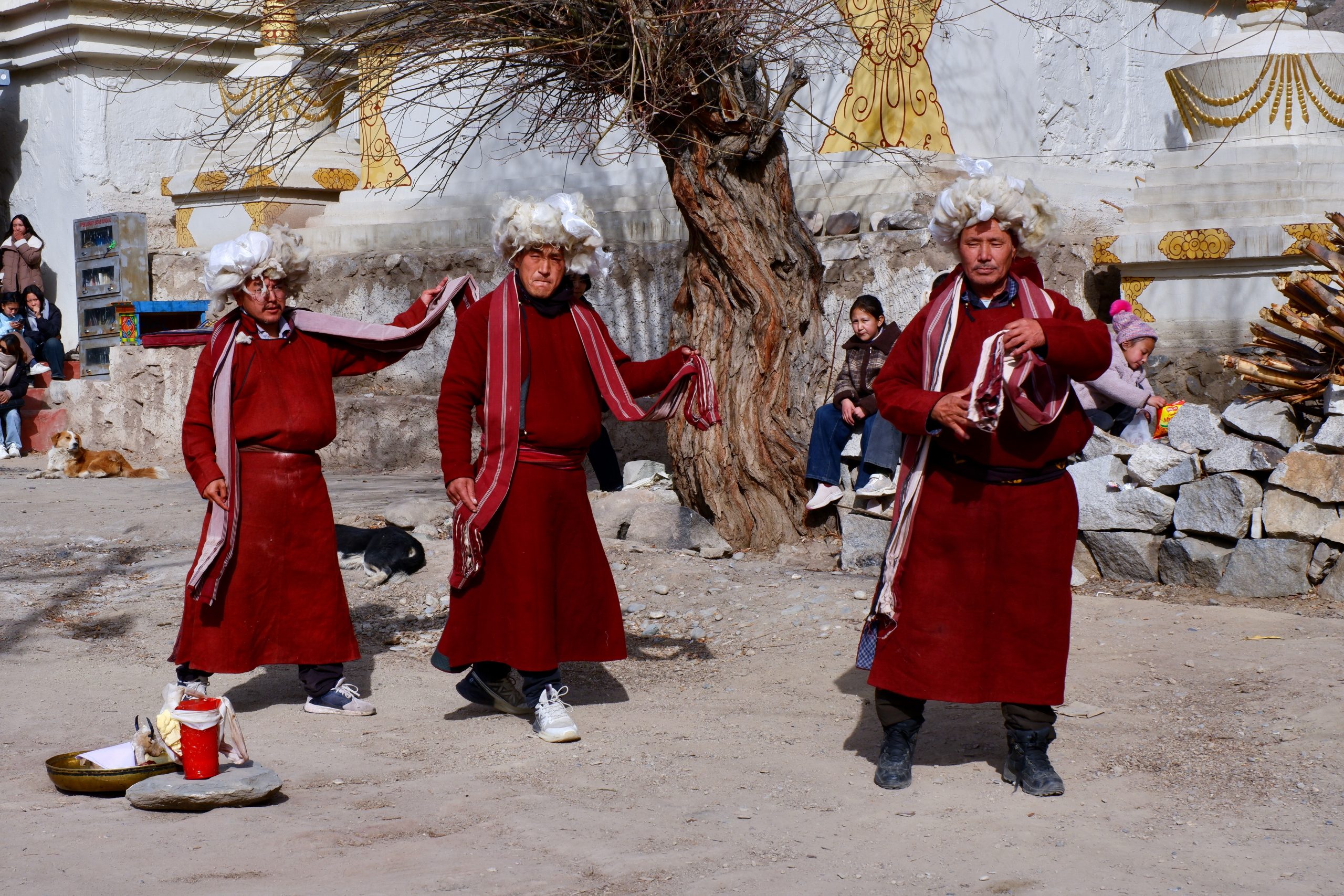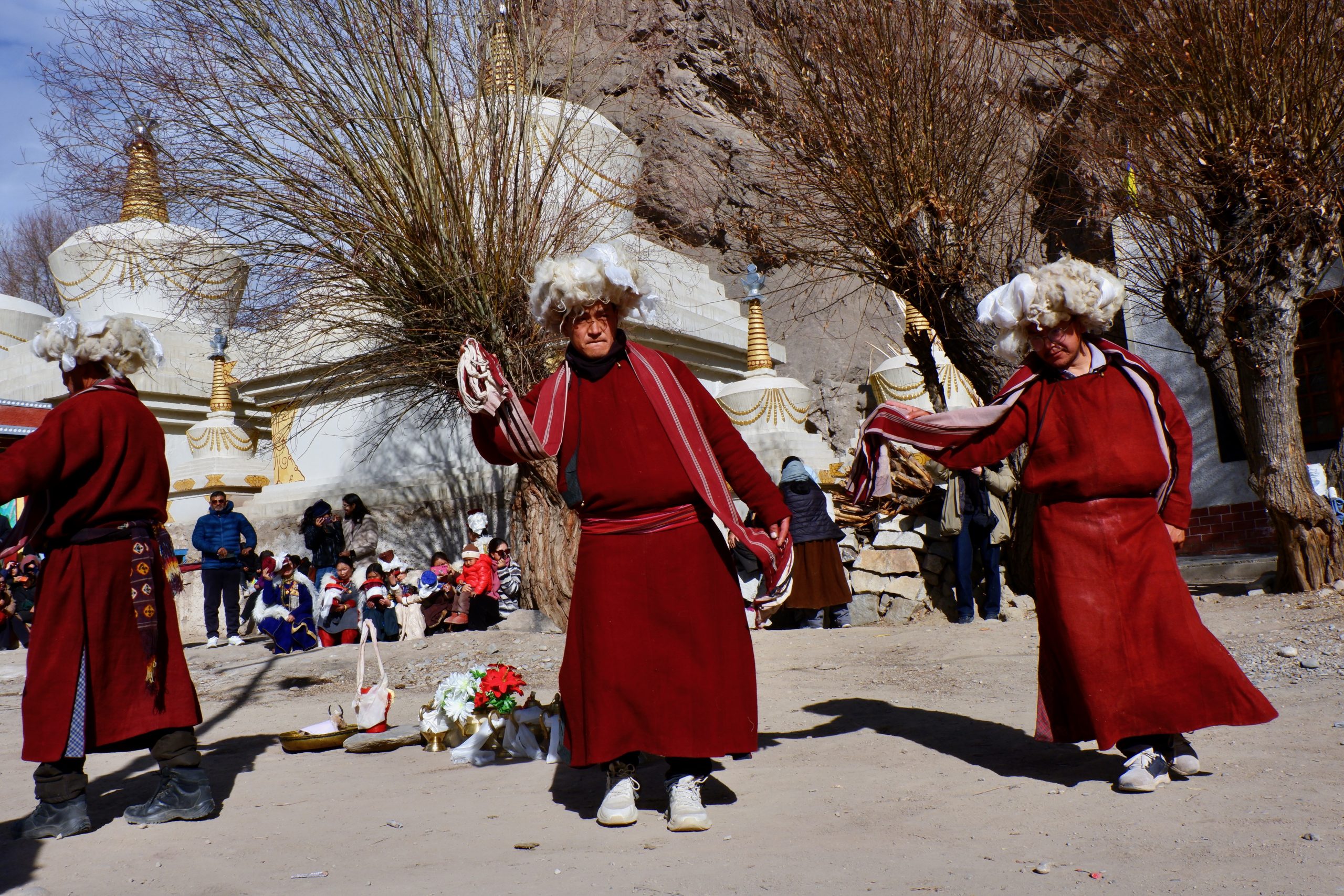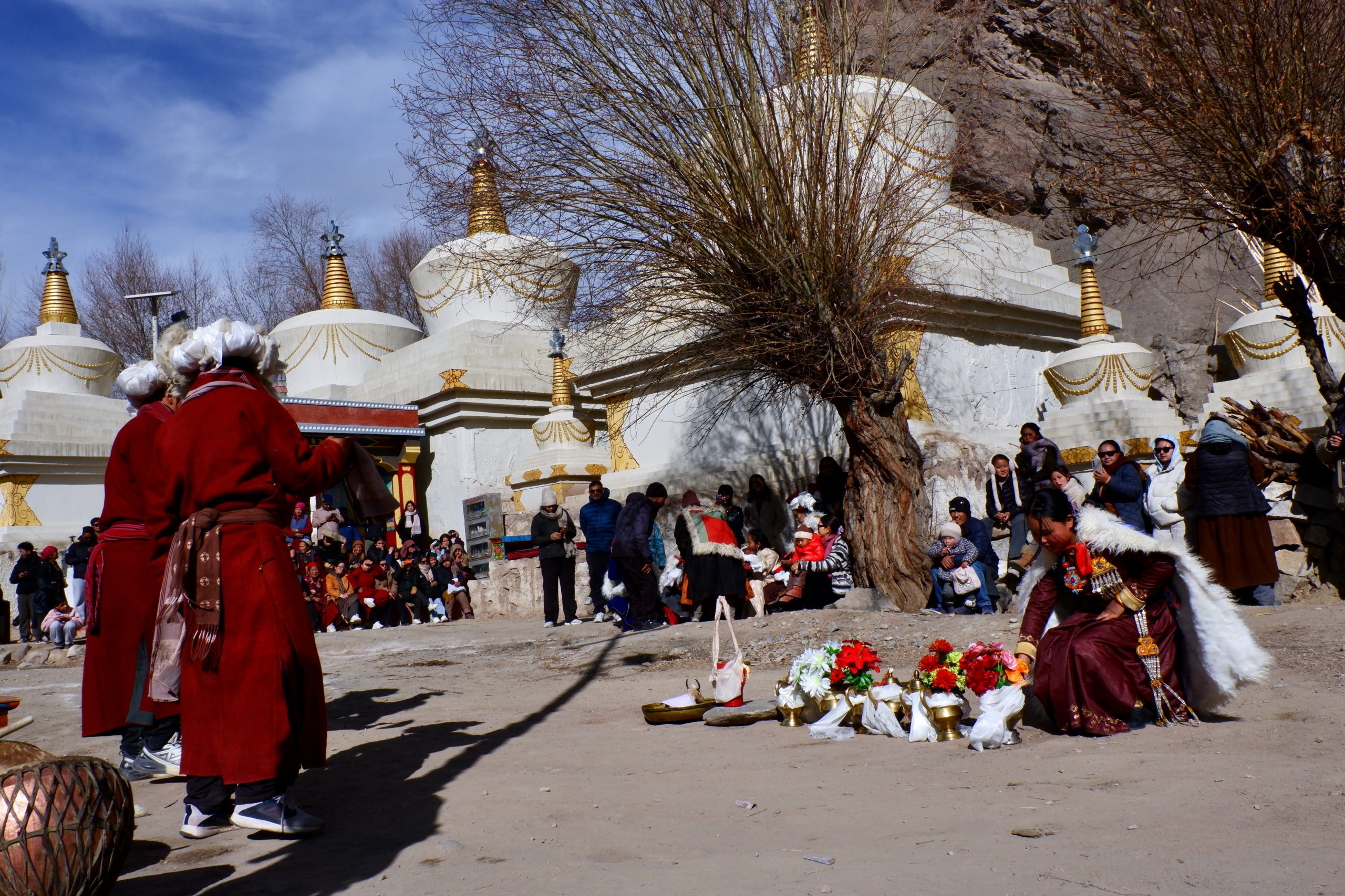 In Basgo war die einzige Losarfeierlichkeit, die fast in vollem Umfang statt finden sollte! Nur auf einen Tanz der Frauen wollte man verzichten. Ich bibberte, ob das tatsächlich alles so sein würde. Auch wenn wir schöne Erlebnisse gehabt hatten, tat es mir so für die Gruppe leid, die extra wegen dieser ganzen Feierlichkeiten angereist gekommen war. Und als wir in Basgo eintrafen, hörten wir, dass jemand am Vorabend gestorben war….. Das hatte dann (zum Glück für uns) doch nur eine Verzögerung zur Folge und keinen Ausfall.