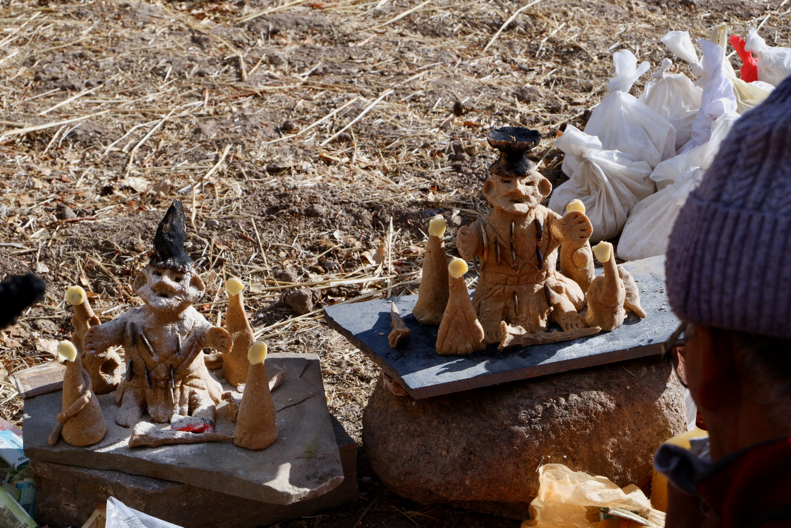 Dieser Teig wurde zwei älteren Herren gebracht, die darauf Figuren kneteten. In die Figuren ist all das schlechte hineingeknotet worden. Außerdem wurden buddhistische Texte rezitiert und es gab so eine Art Segnungen mit Alkohol.