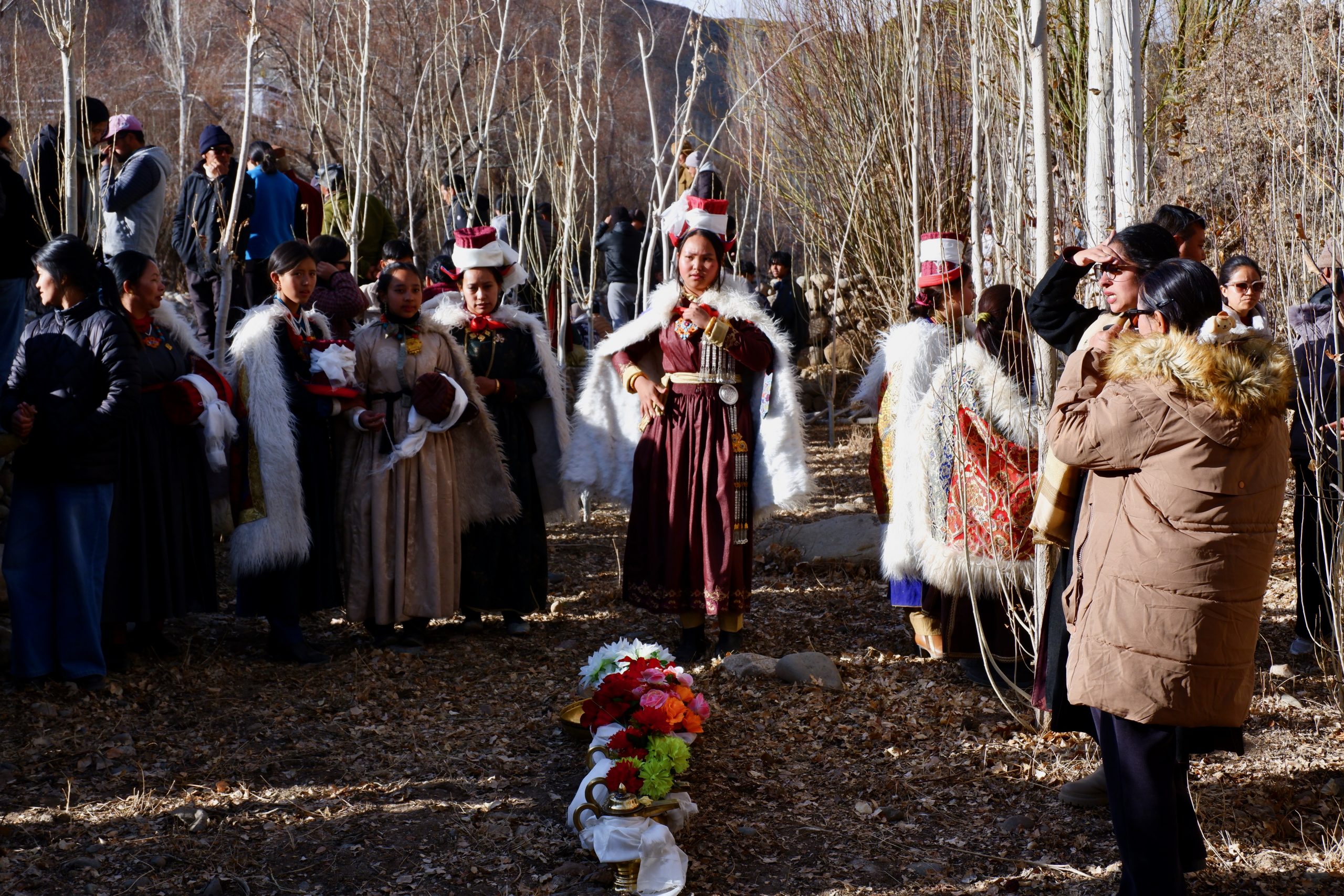 Sie sind die ersten, die zum Fluss laufen (Fluss = aus dem Dorf hinaus – er ist zwar im Dorf, fließt aber davon weg) und zwar mit Räucherwerk (statt einer Mehlspur). Das „Schlechte“ soll ja hinaus getragen werden und zwar auf verschiedenem Wege. Mit dem Rauch geht es in die Luft. Danach folgen die Männer mit den Wollkappen und tragen die Tsampafiguren zum Fluss, wo sie hineingeworfen werden (und somit ebenfalls hinausgetragen wurden). Und als letztes folgen einige Männer, die sich ausziehen (früher, d.h. vor mind. 15 Jahren, waren sie ganz nackt, jetzt behielten sie ihre Unterhosen an) und in den Fluss springen. Das ist der letzte Akt zur Verabschiedung des alten Jahres. Das habe ich alles nicht fotografiert sondern per Film aufgenommen.