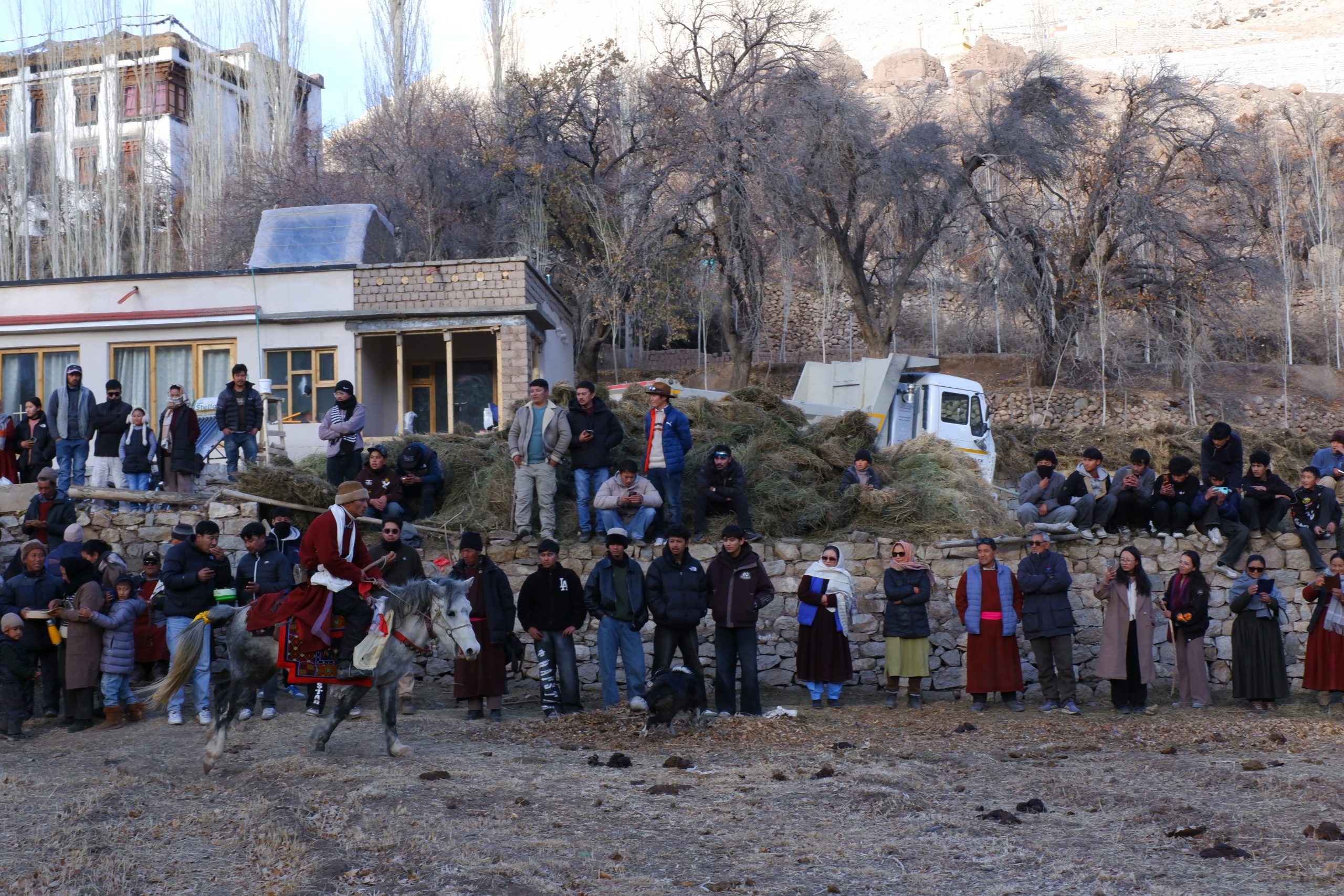 Pferderennen (von den Einheimischen Horserace genannt) muss man in Anführungszeichen setzen, weil sie nicht wirklich gerannt sind. Bzw. es waren 2 Pferde und nur eines hatte einen guten Reiter und rannte über das Feld. Das andere hatte verschiedene Reiter und keine Lust zu rennen. Manchmal fiel auch ein Reiter runter. Es ging ein paar mal hin und her und dann drapierte man Gegenstände auf dem Feld wie die Eisscheibe, die man (wie auch in Chuchot) in das Dorf hineingetragen hatte. Die Leute sagten, es sei, weil es so warm war, sehr schwierig gewesen, eine ordentliche Eisscheibe zu finden.