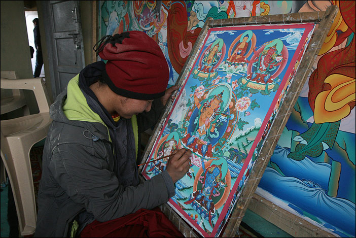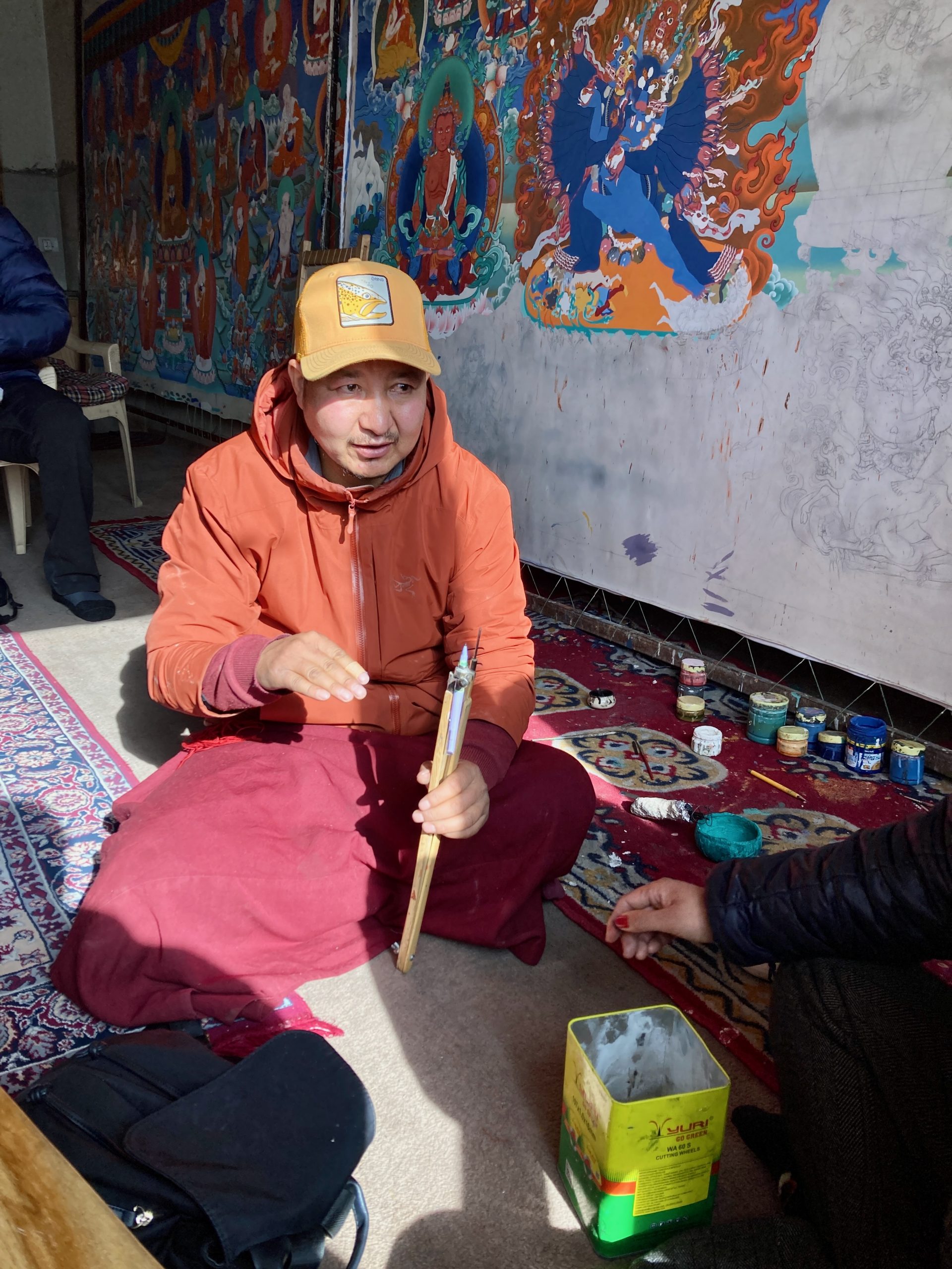 Als nächstes ging es zu einem Thanka-Maler. Und das war eine Überraschung: es war derselbe, den ich mit einer Gruppe schon 2013 mal besucht hatte!