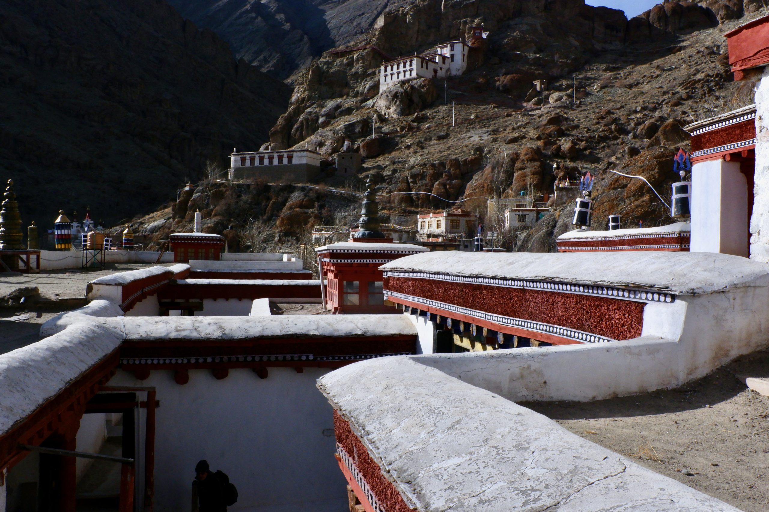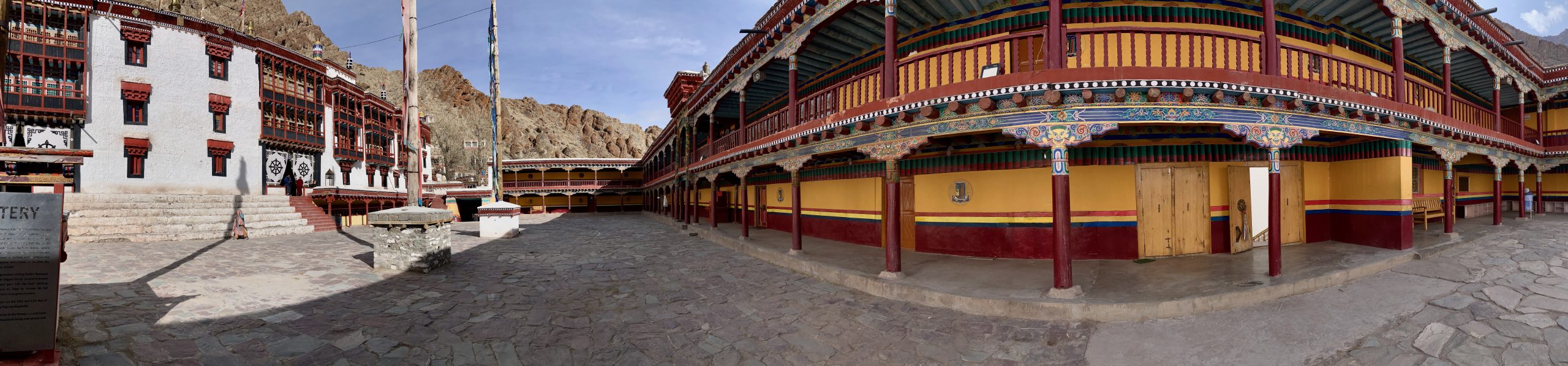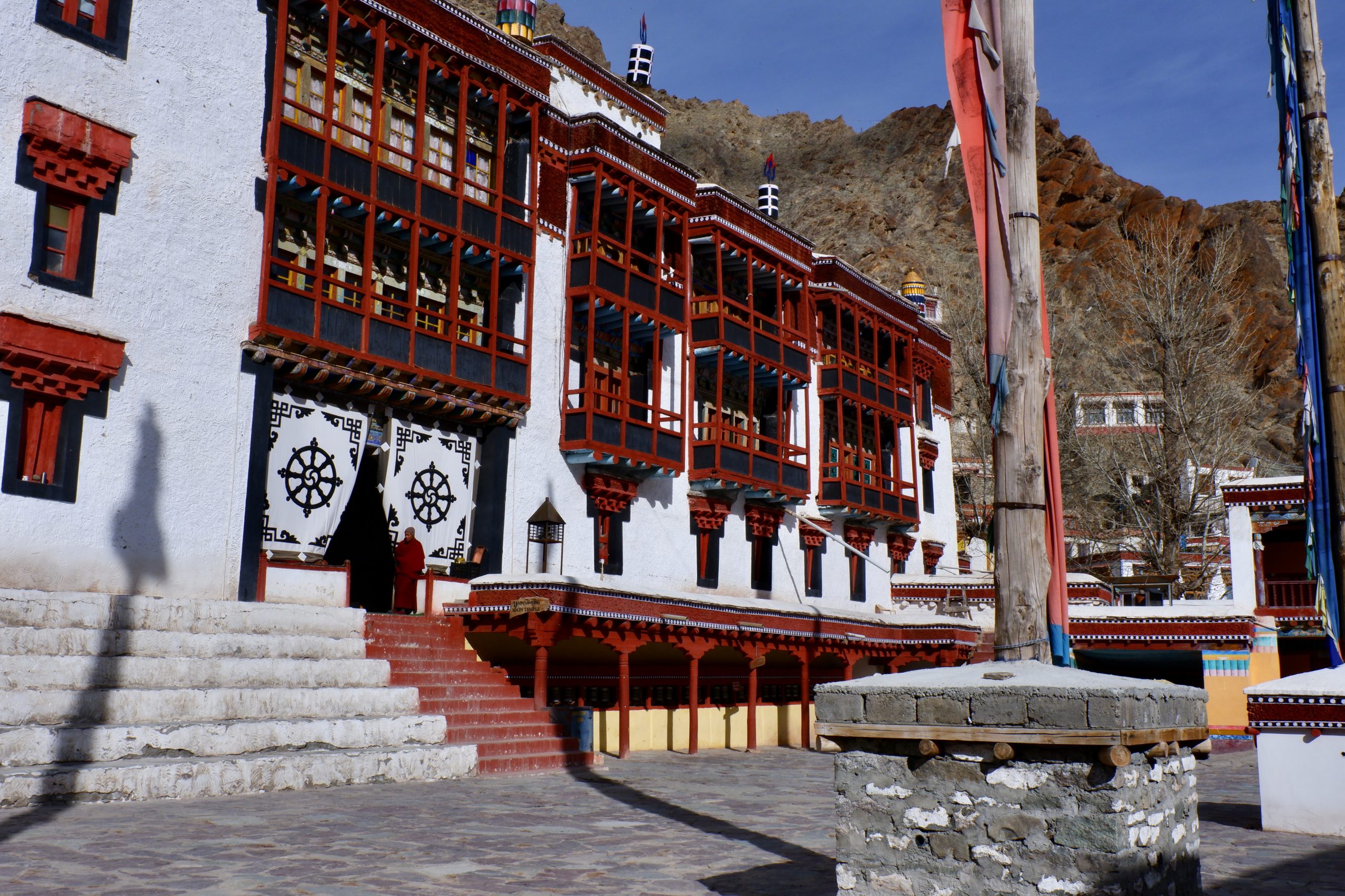 Und damit der Post nicht so mini ausfällt, gibt es hier noch unseren letzten Tag in Ladakh dazu. Da sind wir nach Hemis gefahren, dem größten und reichsten Kloster. Klöster (der Mönche, nicht der Nonnen) haben immer viel Landbesitz gehabt, wo die Leute immer einen Teil ihrer Ernte abgegeben haben. Hemis hat darüber hinaus Besitz in der Hauptstadt und auch in Srinagar und wer weiß noch wo. Jedenfalls haben sie damit auch gute Mieteinnahmen.