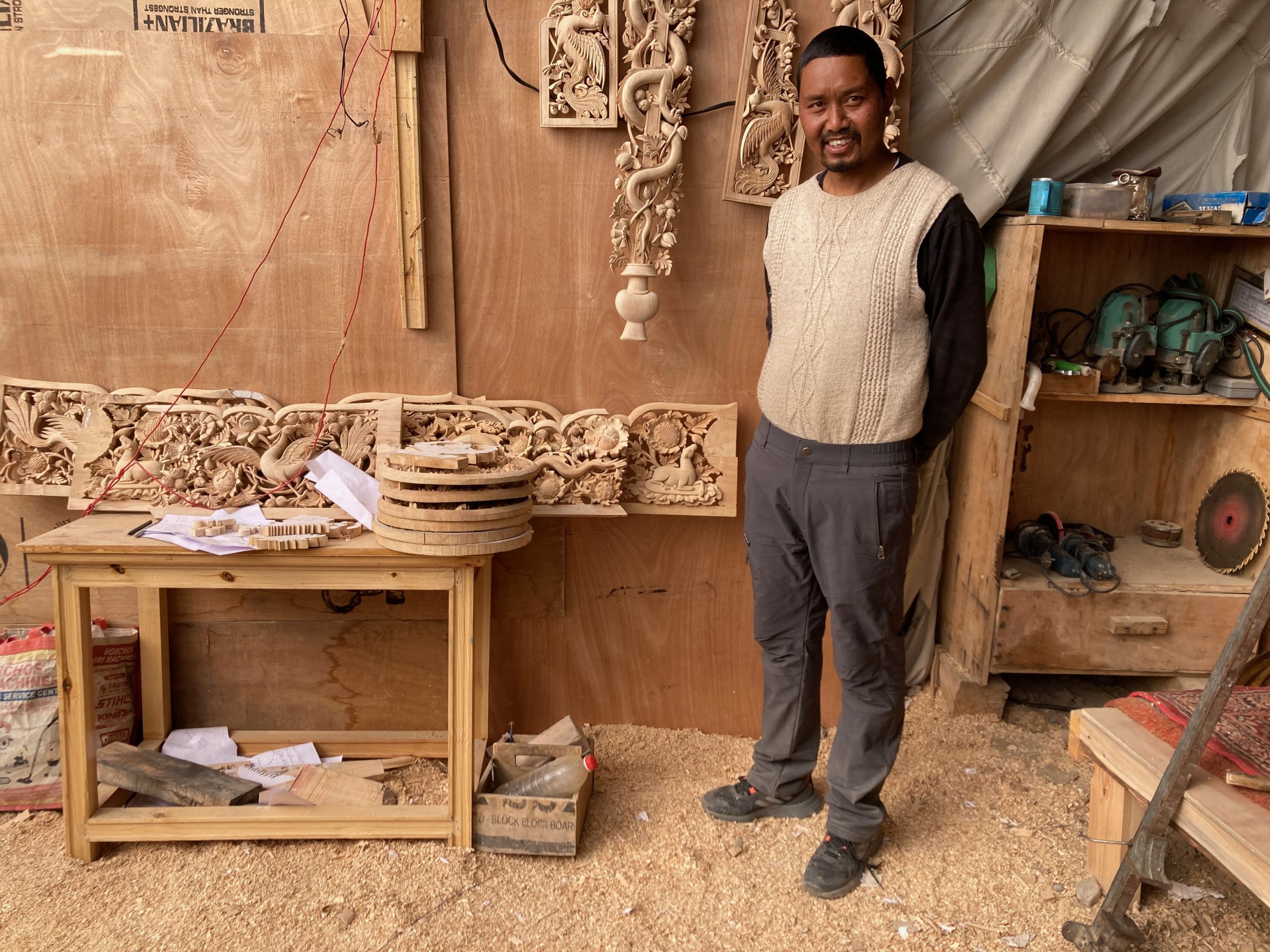 Dann besuchten wir noch einen Holzschnitzer. Der schnitzte nur z.T., den anderen Tel erledigte eine Maschine/elektrische Säge. Da gab es direkt weitere Leute in der Straße, die mit solchen Arbeiten beschäftigt waren. Holzschnitzerei boomt ziemlich in Ladakh – mindestens die meisten Fenster werden mit tollen Rahmen dekoriert.