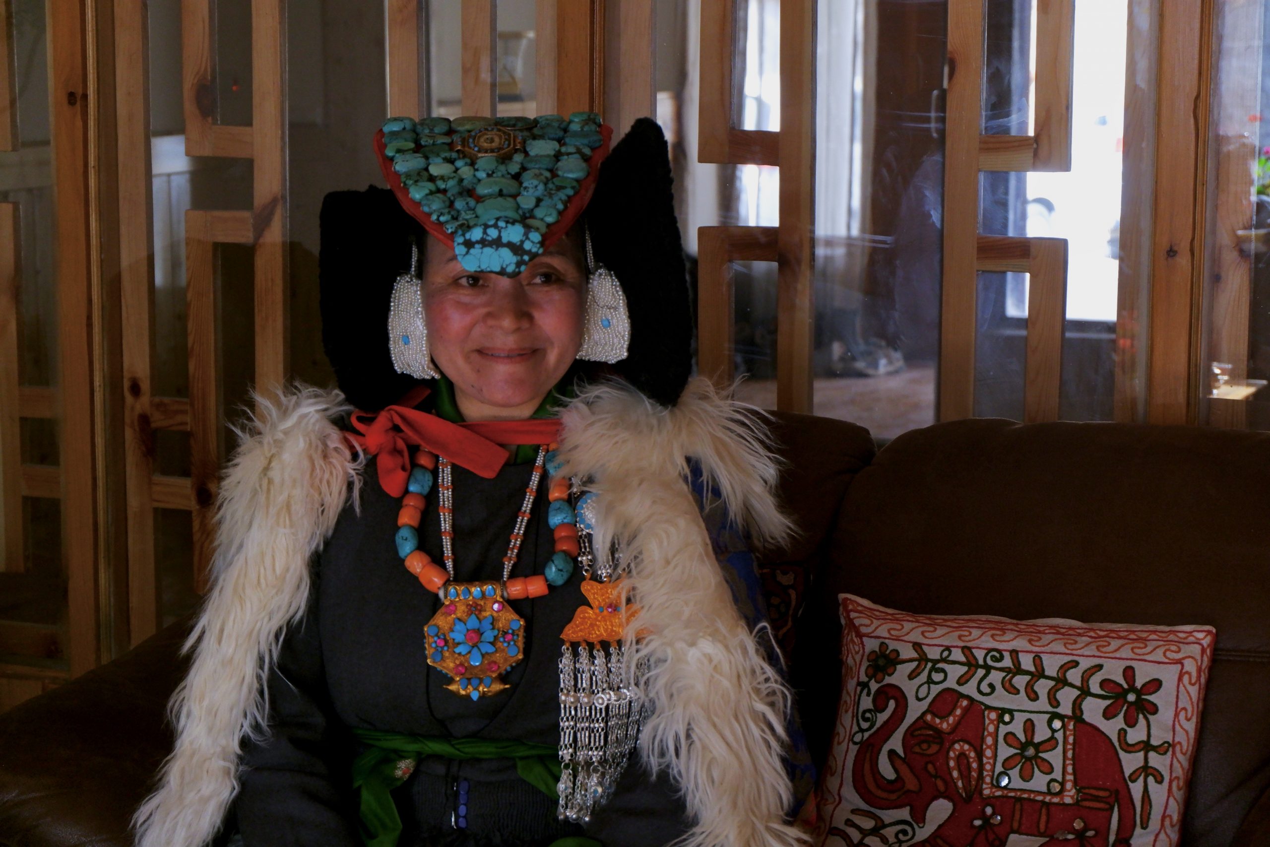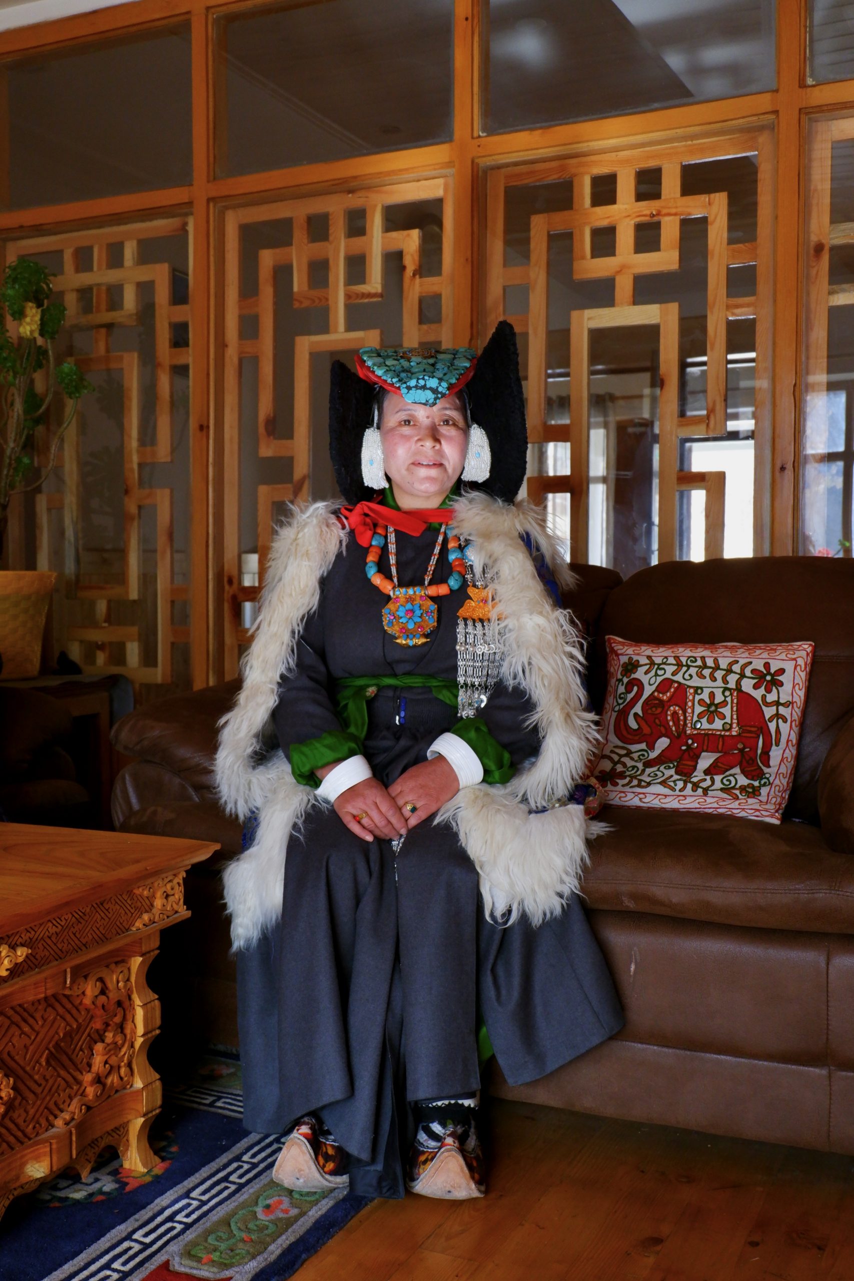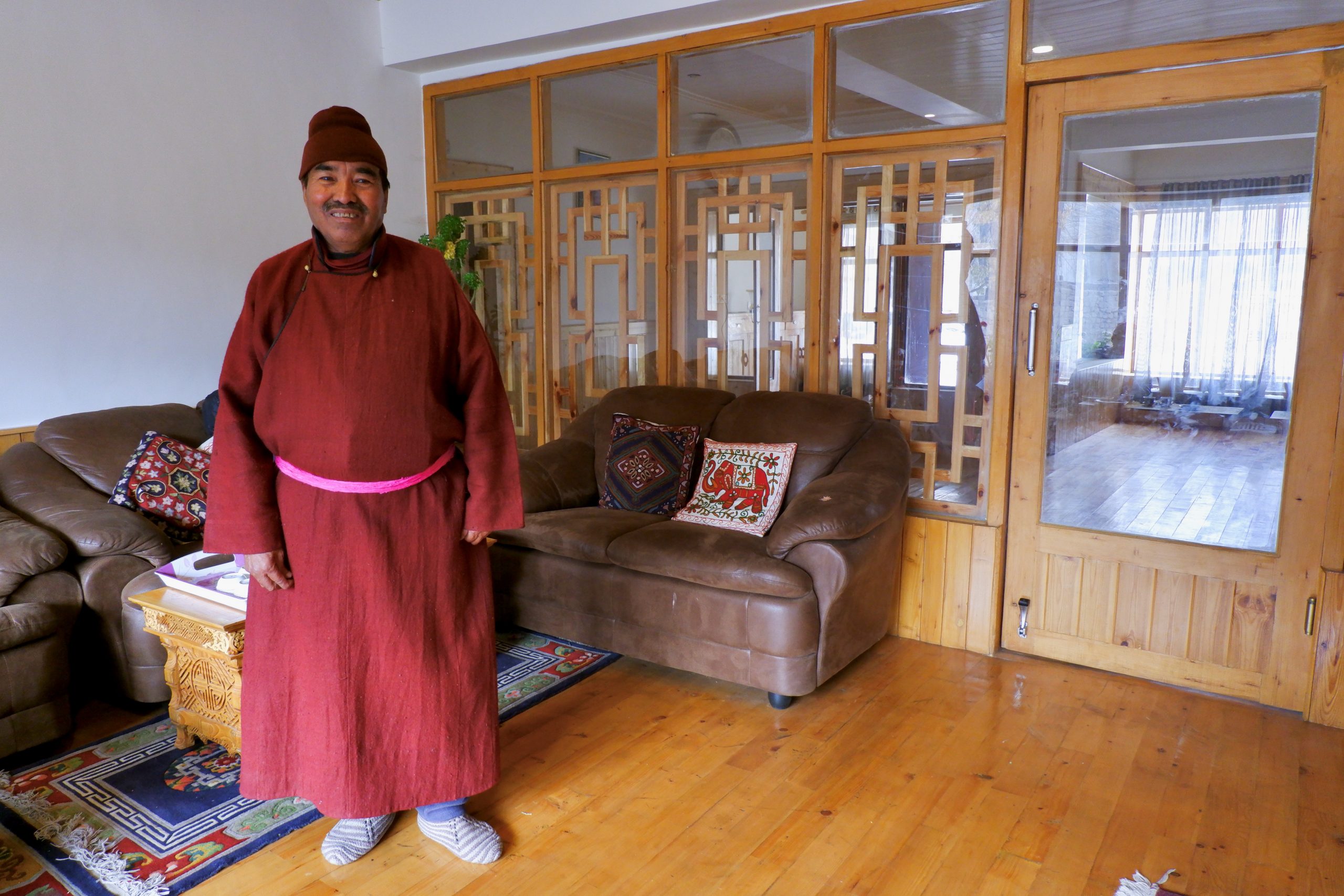 Zuerst hatten wir aber Mittagessen in einem Privathaus mit einer Dame, die uns ihre traditionelle Kleidung präsentierte. Und auch der Hausherr posierte: