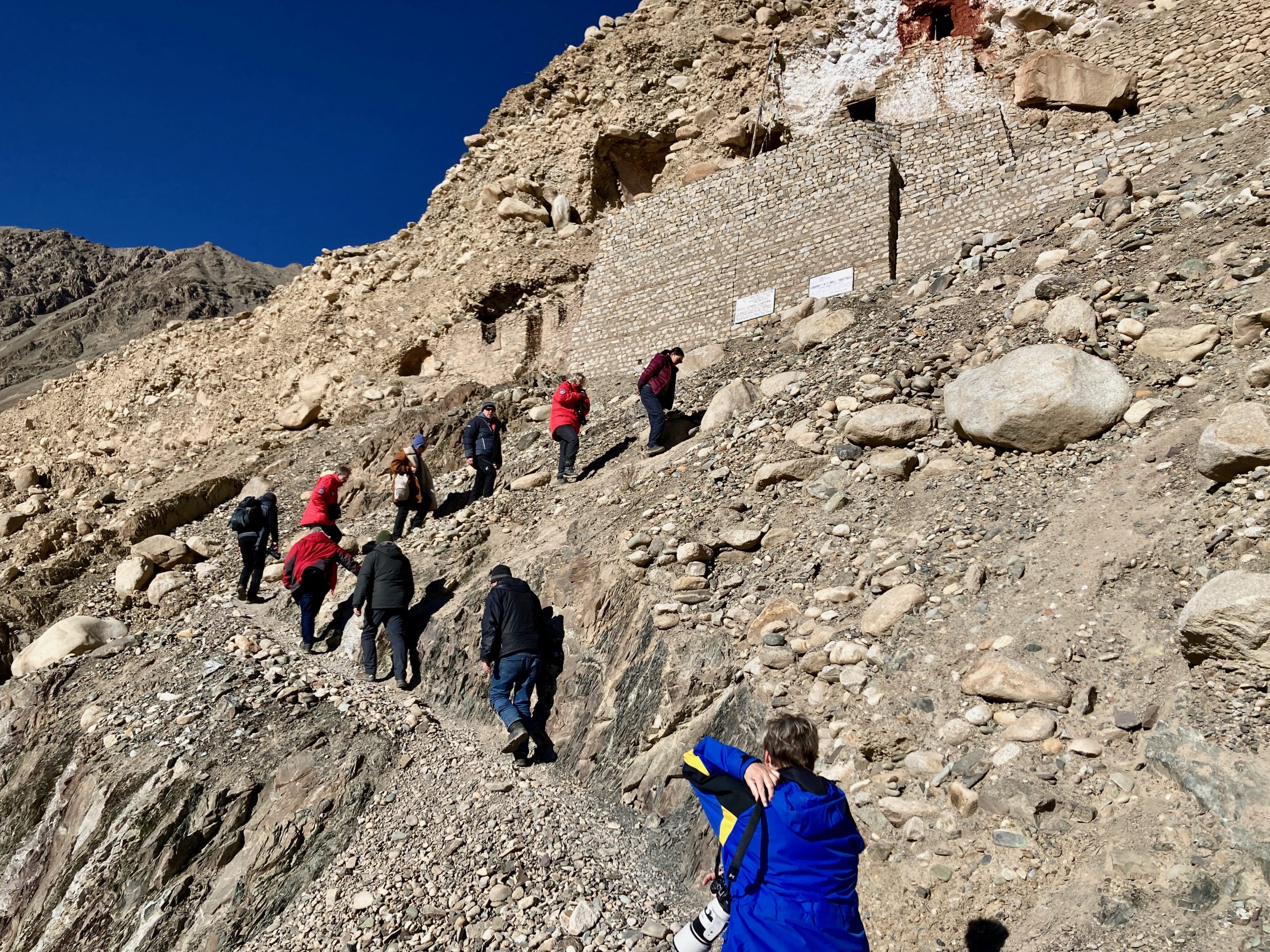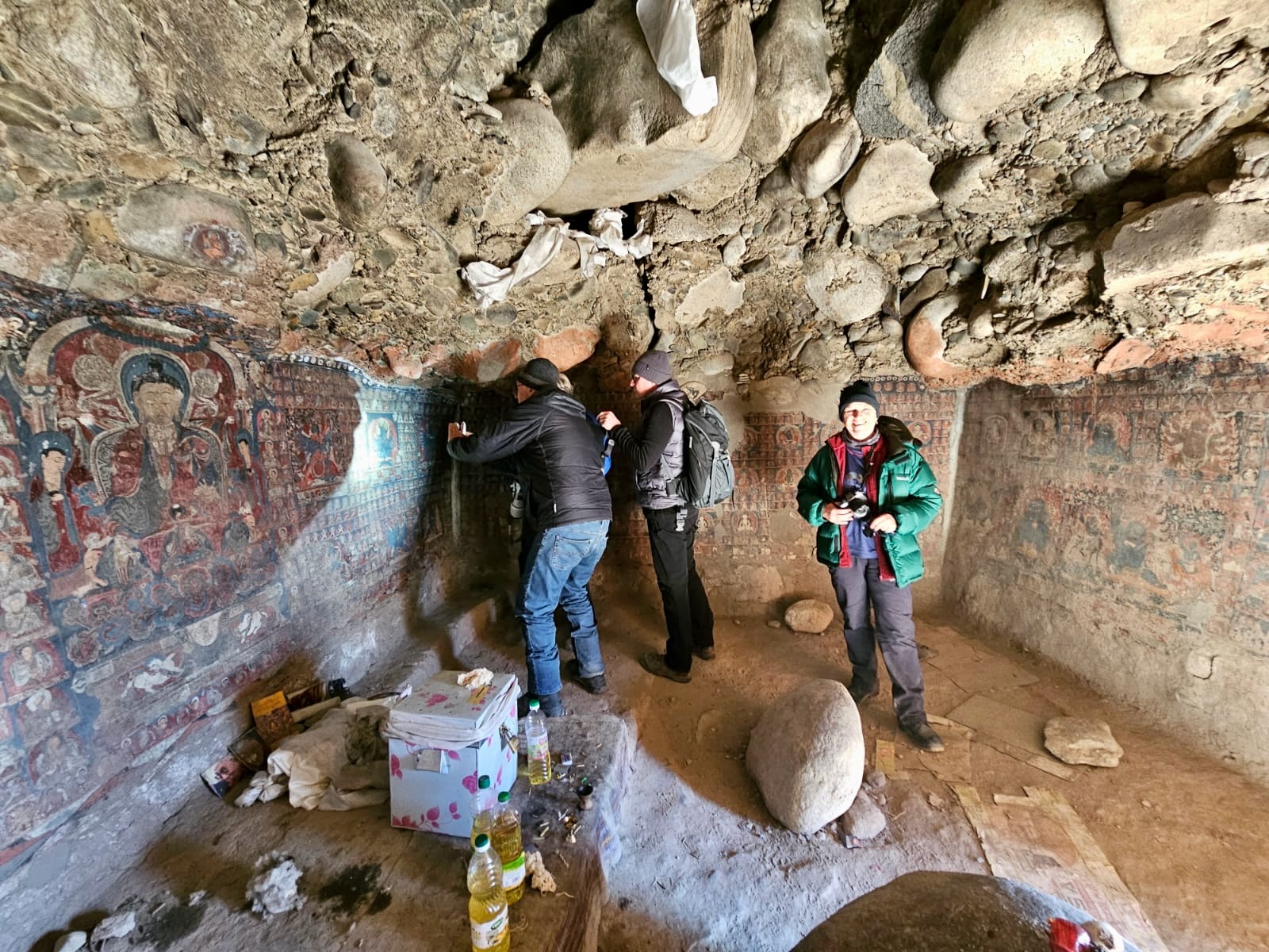 Die ersten alten Wandmalereien, die wir ansteuerten waren die Höhlen von Saspol. Leider war nur eine Höhle zugänglich, bei den anderen war der Eingang nicht hergerichtet. Sie sind aus dem 14./15. Jhdt. und wurden teilweise nach lauter Schädigungen wieder hergerichtet (Prinz Claus aus den Niederlanden hatte auch dafür gespendet).