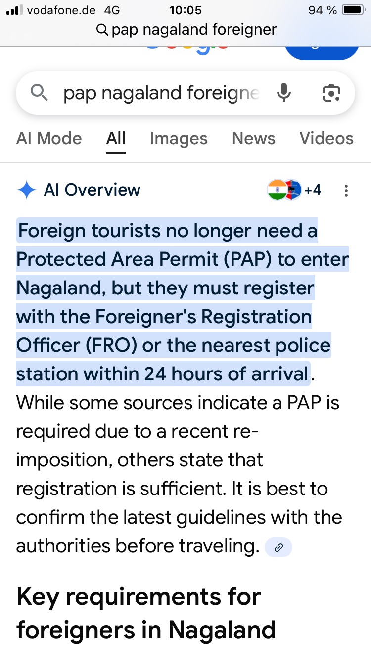 Einen Tag vor meiner Abreise wurde ich sehr nervös. Es geht um das PAP = Protected Area Permit für Nagaland. Die Infos im Internet waren so, dass zuerst auftaucht, dass man keines braucht – und die Webseiten dazu sehen eigentlich vertrauenswürdig aus.
