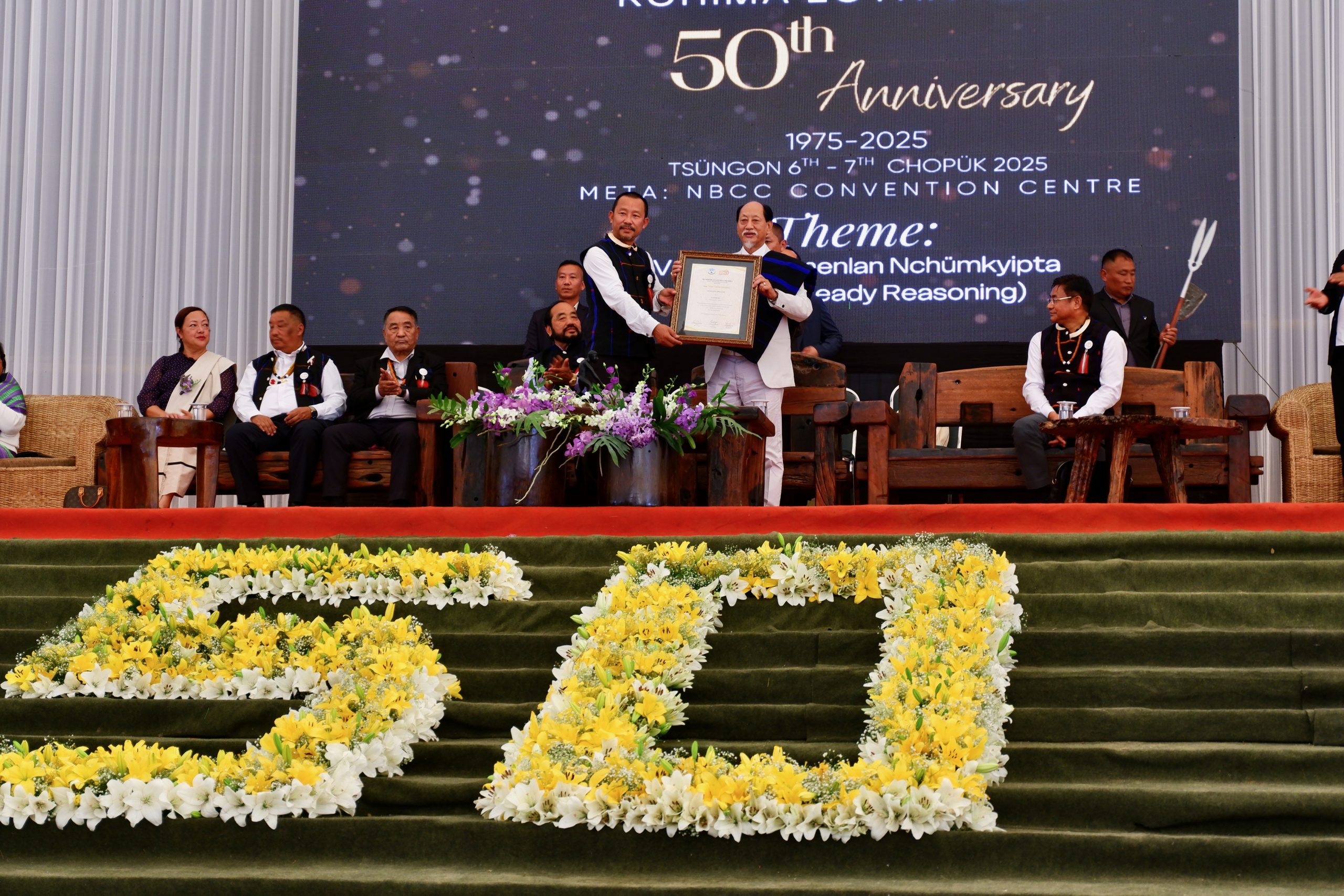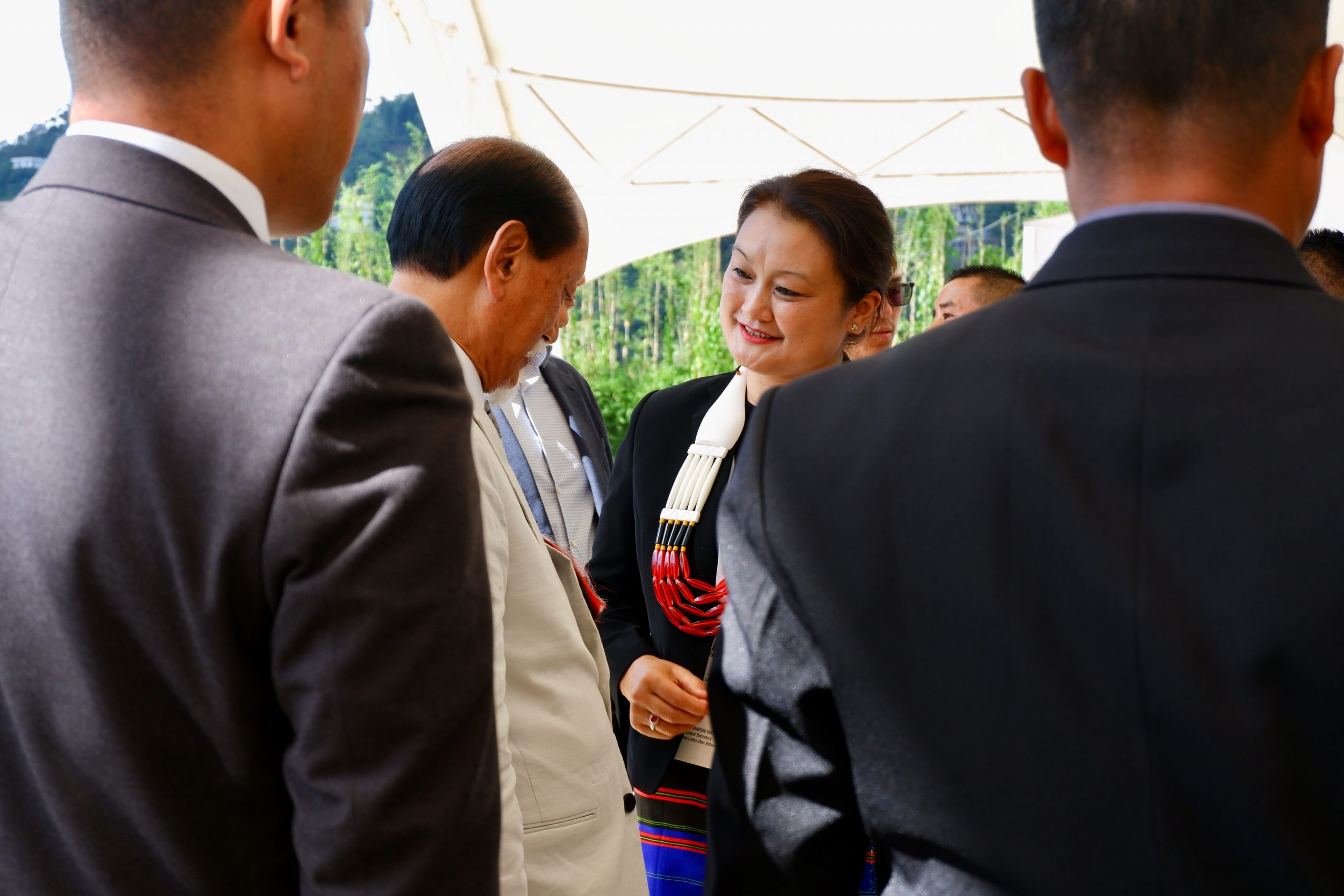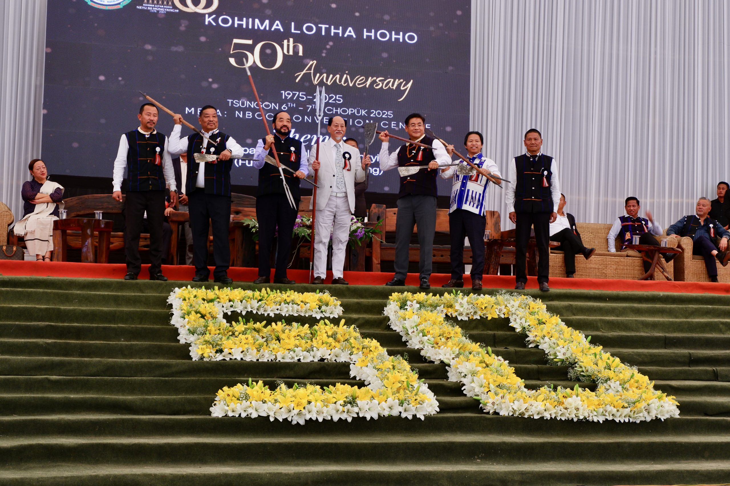 Der Hoho von den Lothas wurde vor 50 Jahren gegründet – und deswegen kam auch der Chiefminister zu Besuch um das zu ehren. Er trug einen weißen Anzug.