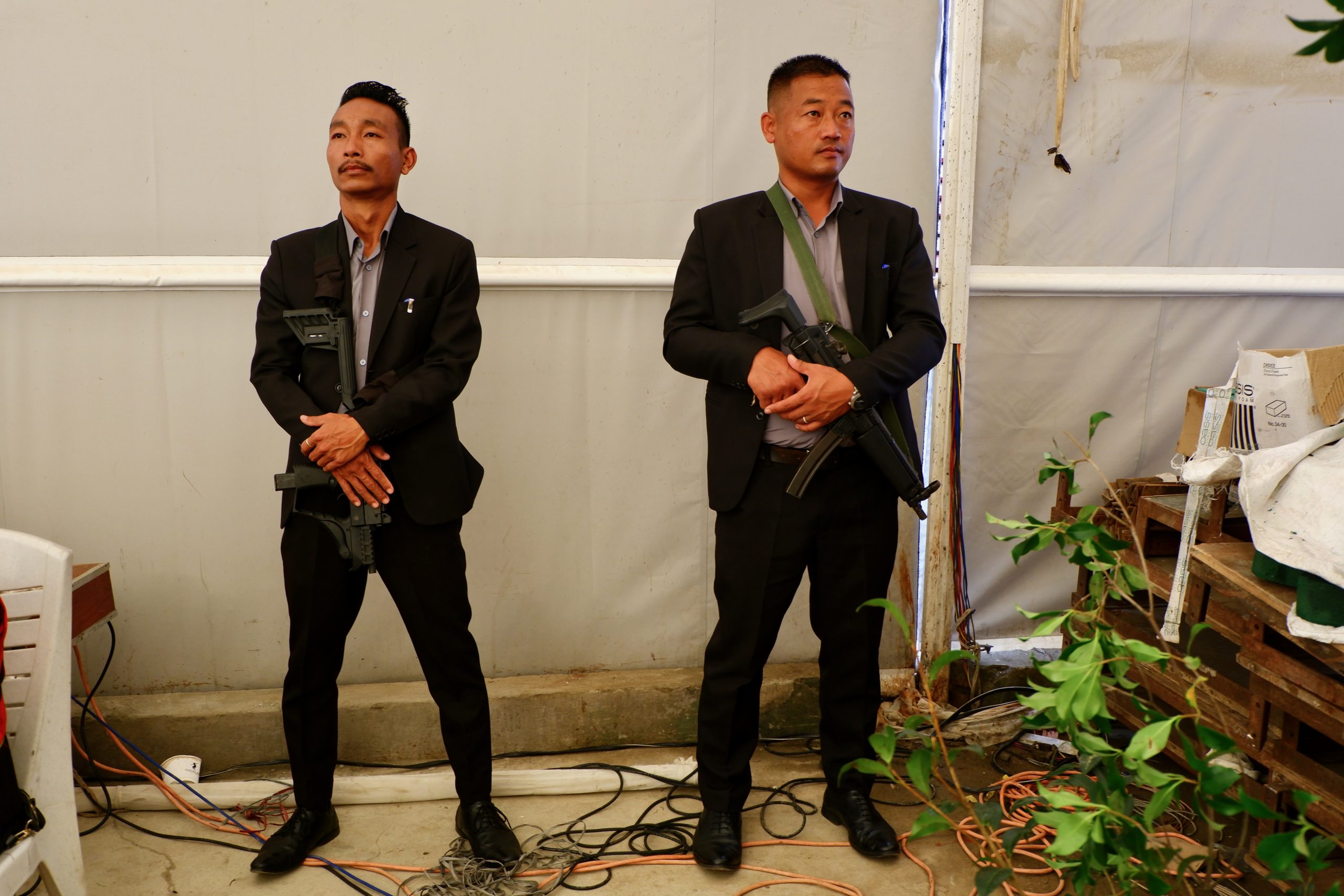 Das ganze musste tüchtig bewacht werden. Nicht nur vom Militär, auch ein Krieger stand bereit und Anzugherren.
