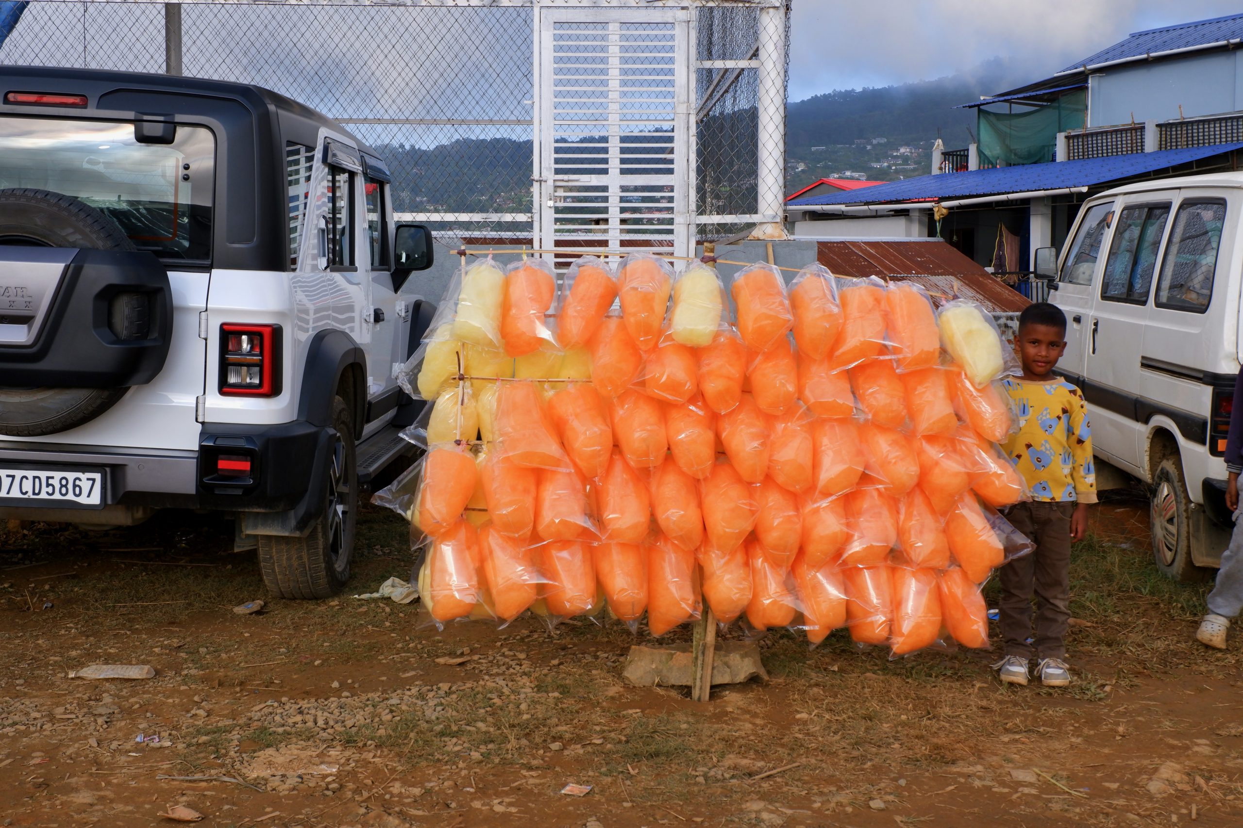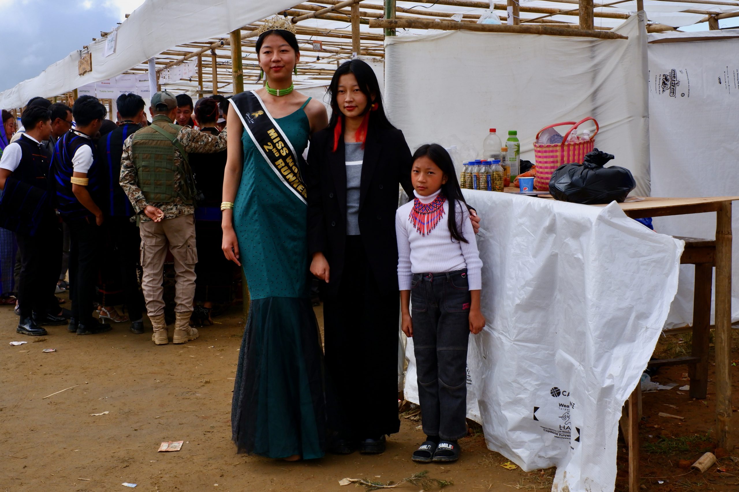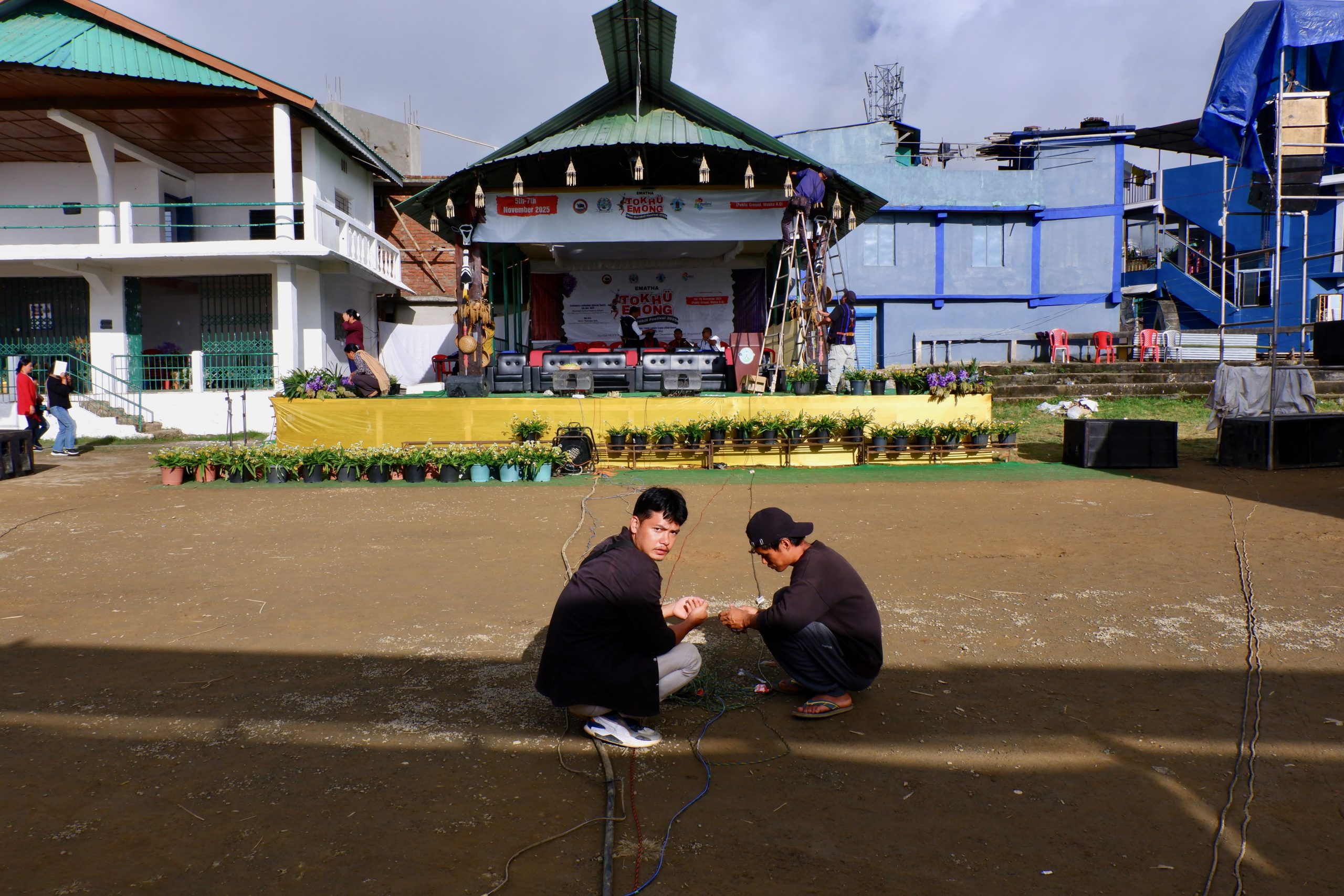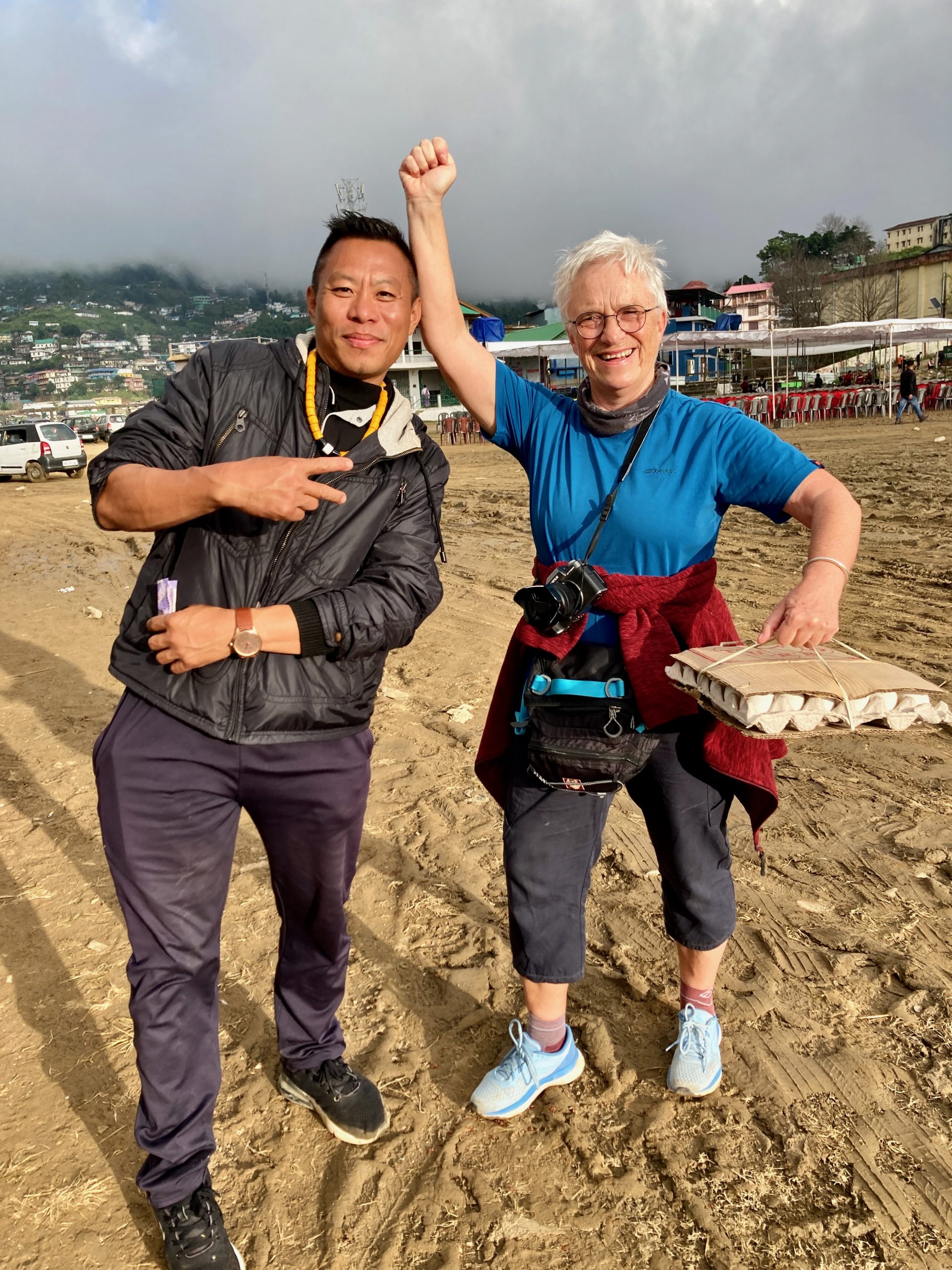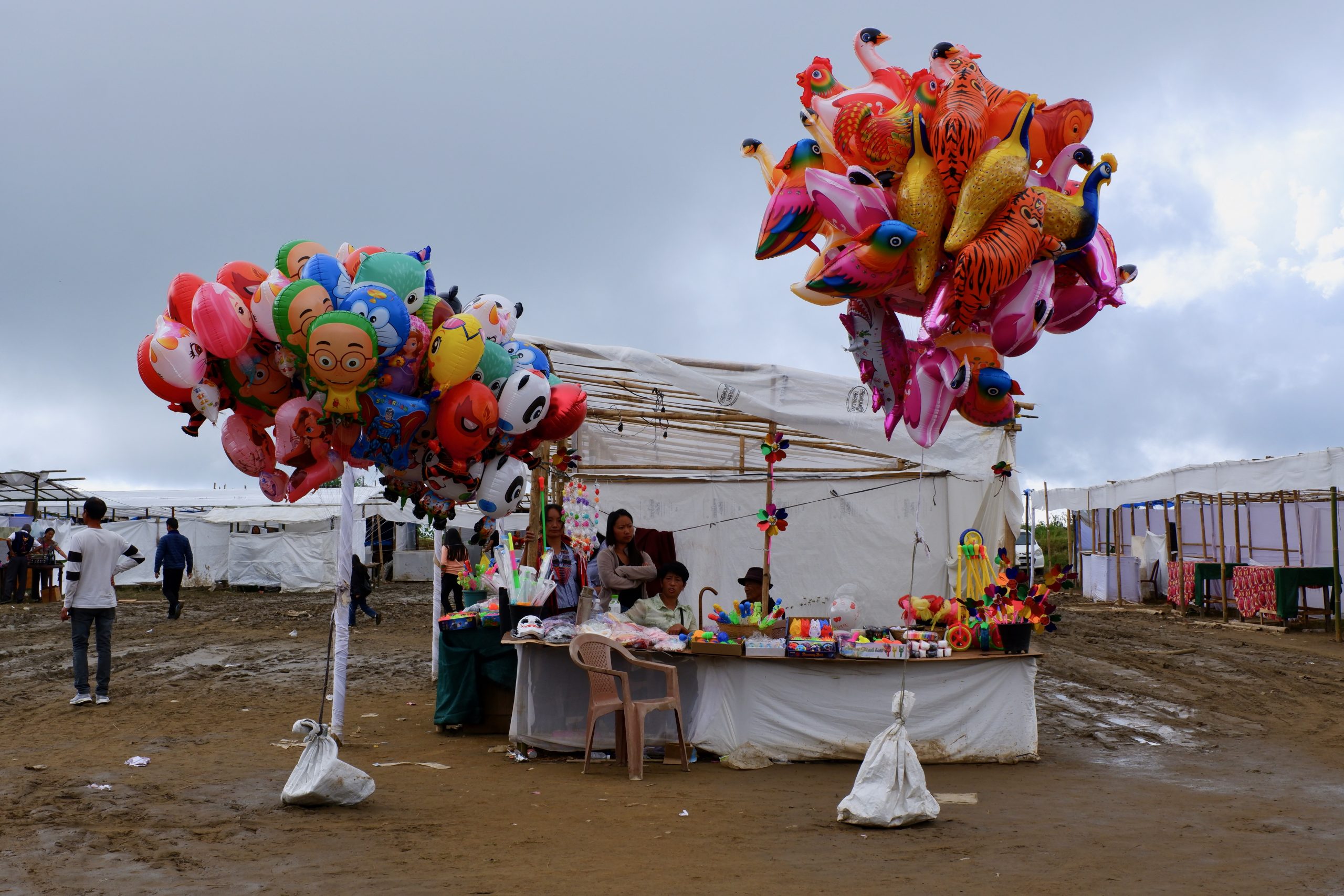 Es gibt in Wokha einen großen Festplatz mit einer Bühne und vielen Ständen. Da waren immer noch ein paar Leute. Da es die ganzen Tage vorher so viel geregnet hatte, war es dementsprechend schlammig. Das hielt viele Damen aber nicht davon ab, sich auf Stöckelschuhen ihren Weg zu bahnen.