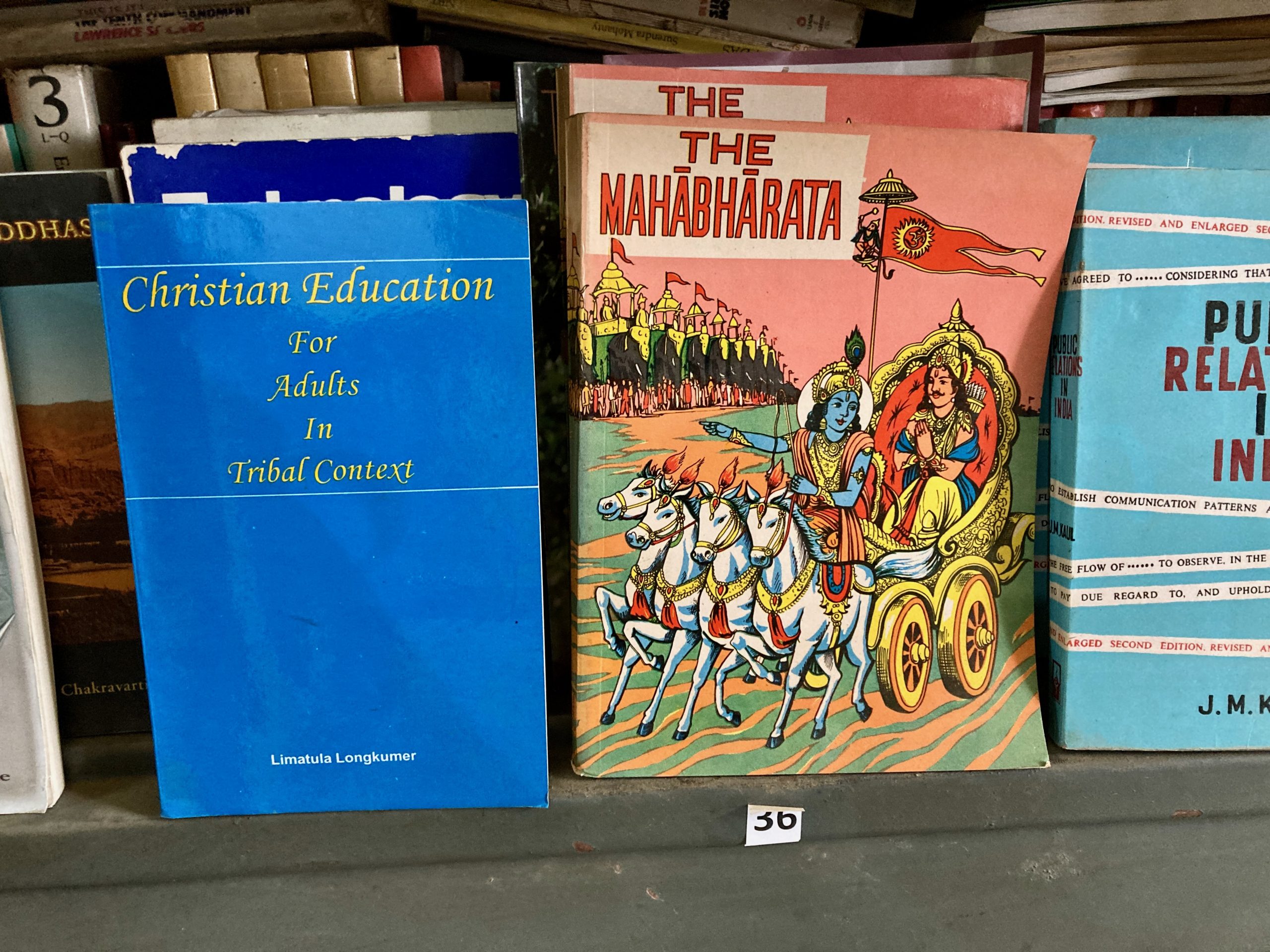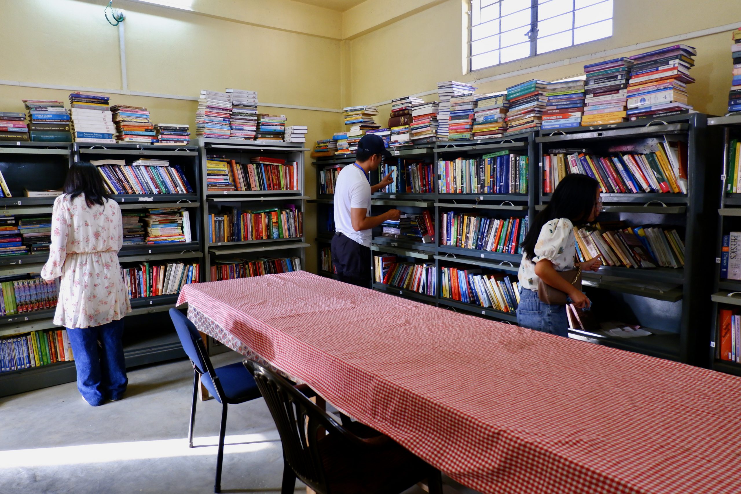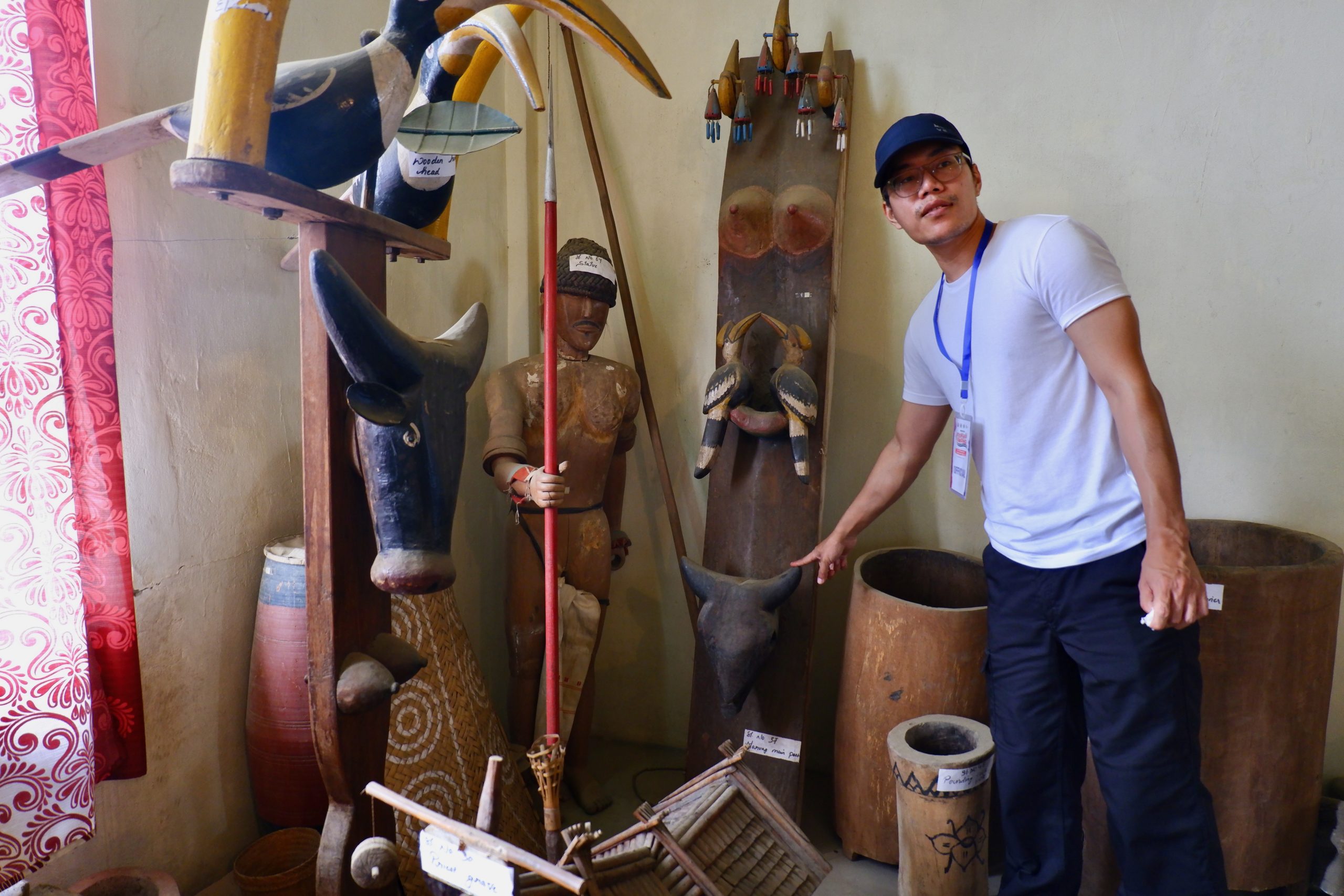 Dann gingen wir noch in die Bibliothek nebenan. Unser Guide hatte auch ein Buch geschrieben – dazu hier ein link. Leider konnte ich es nicht kaufen, da er kein Exemplar da hatte. Ich hoffe, ich finde noch ein Exemplar. In der Bibliothek waren lauter englischsprachige Bücher. Das sei die offizielle Sprache hier. Üblicherweise sprechen sie aber „naganese“. Das ist eine Art Kunstsprache und dem assamese sehr ähnlich. Damals wurden viele Tauschgeschäfte zwischen den Nagastämmen und den Assamese betrieben – und dafür bedienten sie sich einer eigenen ausgedachten Sprache. Die sie eben auch noch heute sprechen, aber offiziell ist sie nicht.