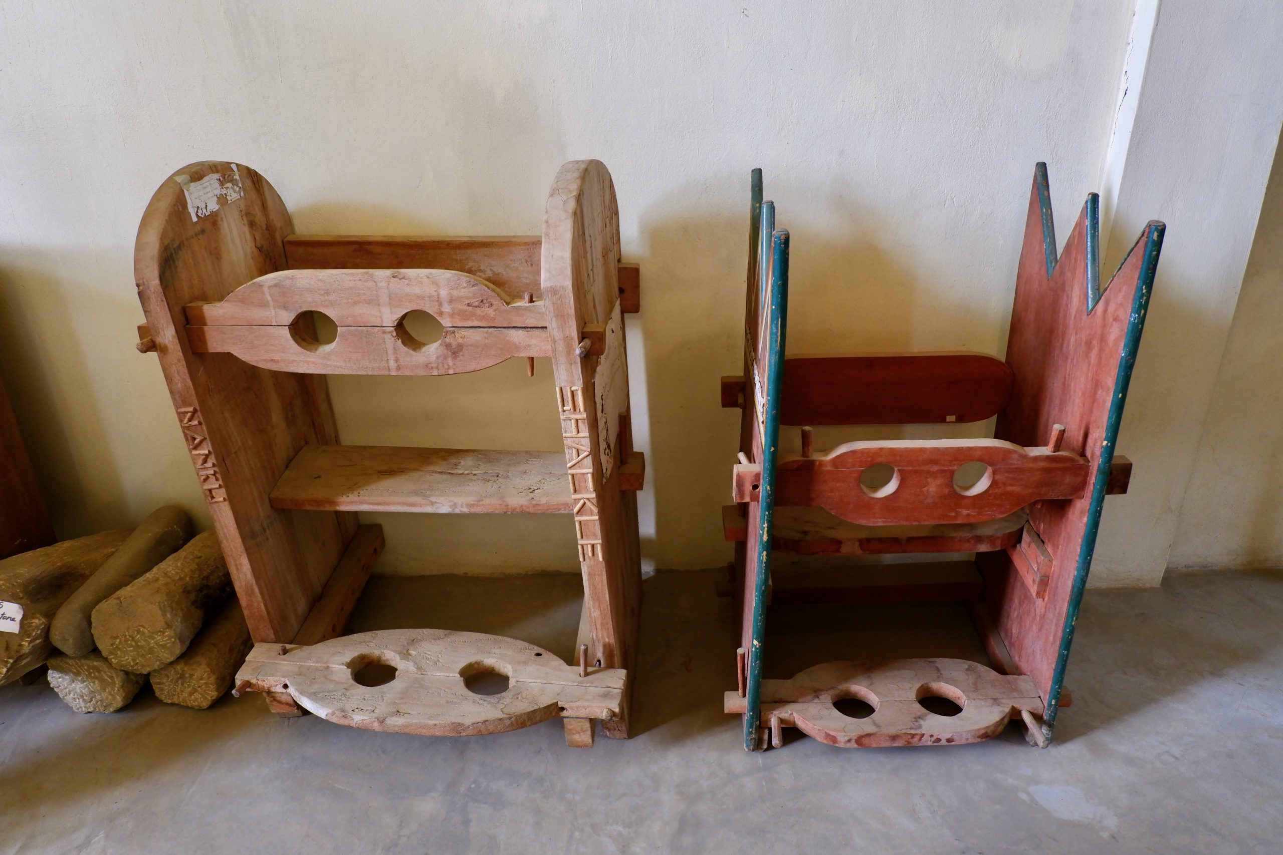 In diesem Museum gibt es auch eine große Rarität: Prangerstühle! Dort wurden die Bösewichte reingesetzt und der öffentlich Schändung ausgesetzt. Ganz ohne Nägel zusammen gebaut!