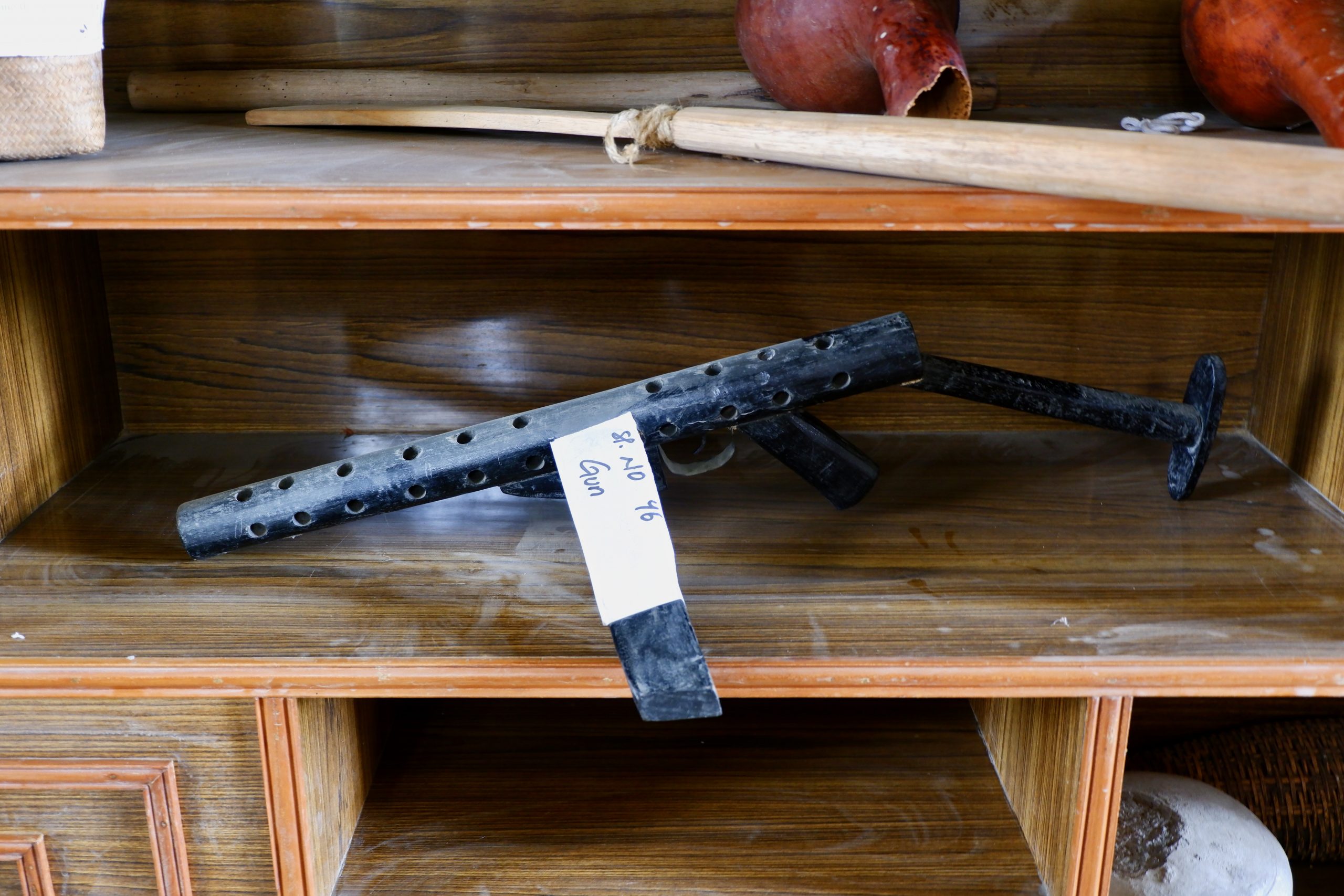 Prinzipiell waren Speer und Schild die gängigen Kriegswaffen. Aber dann kamen wohl auch seltsame Gewehre zum Einsatz.