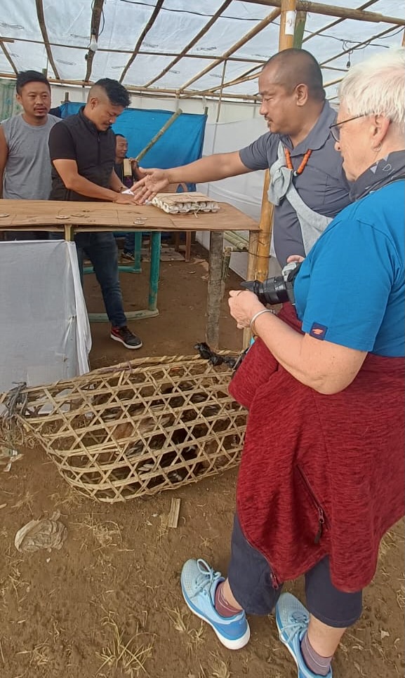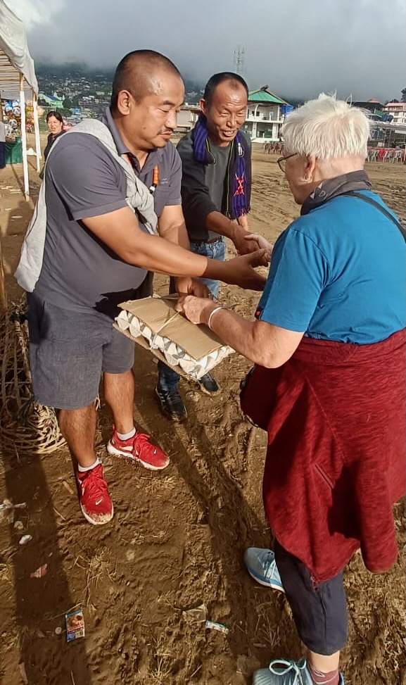 In Wokha war tatsächlich das große Kulturprogramm schon vorbei. Tokhü Emong dauert mehrere Tage, aber nur an diesem einen Tag ist großes öffentliches Programm für alle angesagt. Bei Wikipedia steht dazu einiges – hier ist der link. Eine Sache greife ich mal heraus. Man lädt sich gegenseitig zum Essen ein. Dabei ist die Anzahl der angebotenen Fleischstücke Indikator für die Tiefe der Freundschaft. Bei 12 Stück ist man ganz dolle eng befreundet, bei 6 nur so mittelmäßig bzw. sit die Bekanntschaft eher locker. Mit diesem Ritual versichert man sich, dass man sich gegenseitig hilft, wenn einer in Schwierigkeiten ist. Gut ist natürlich, wenn man beim Gegenbesuch genauso viele Stücke angeboten bekommt.