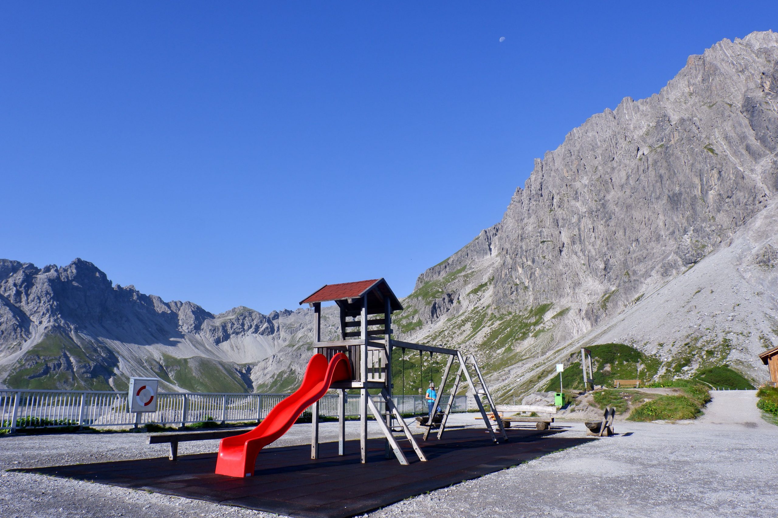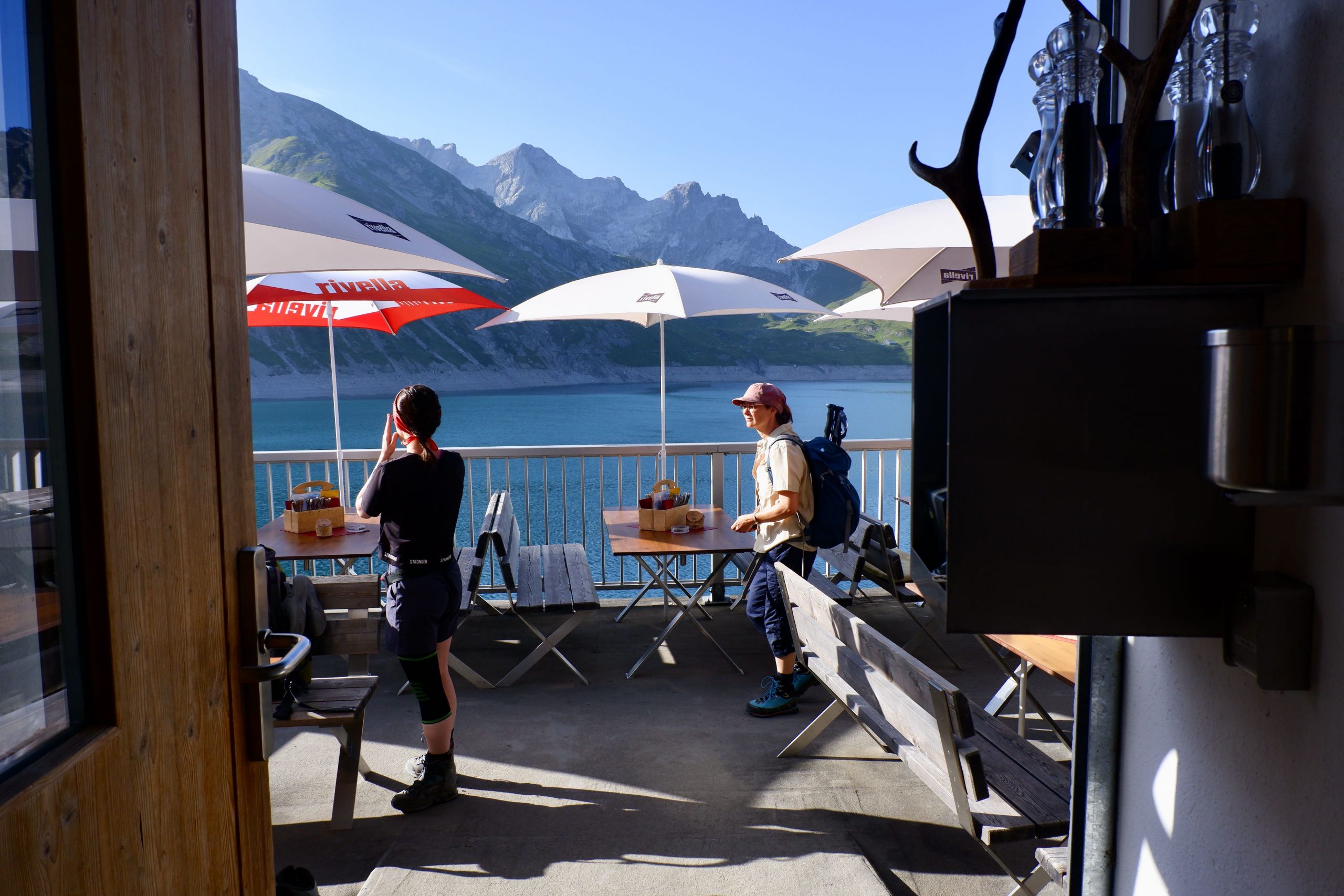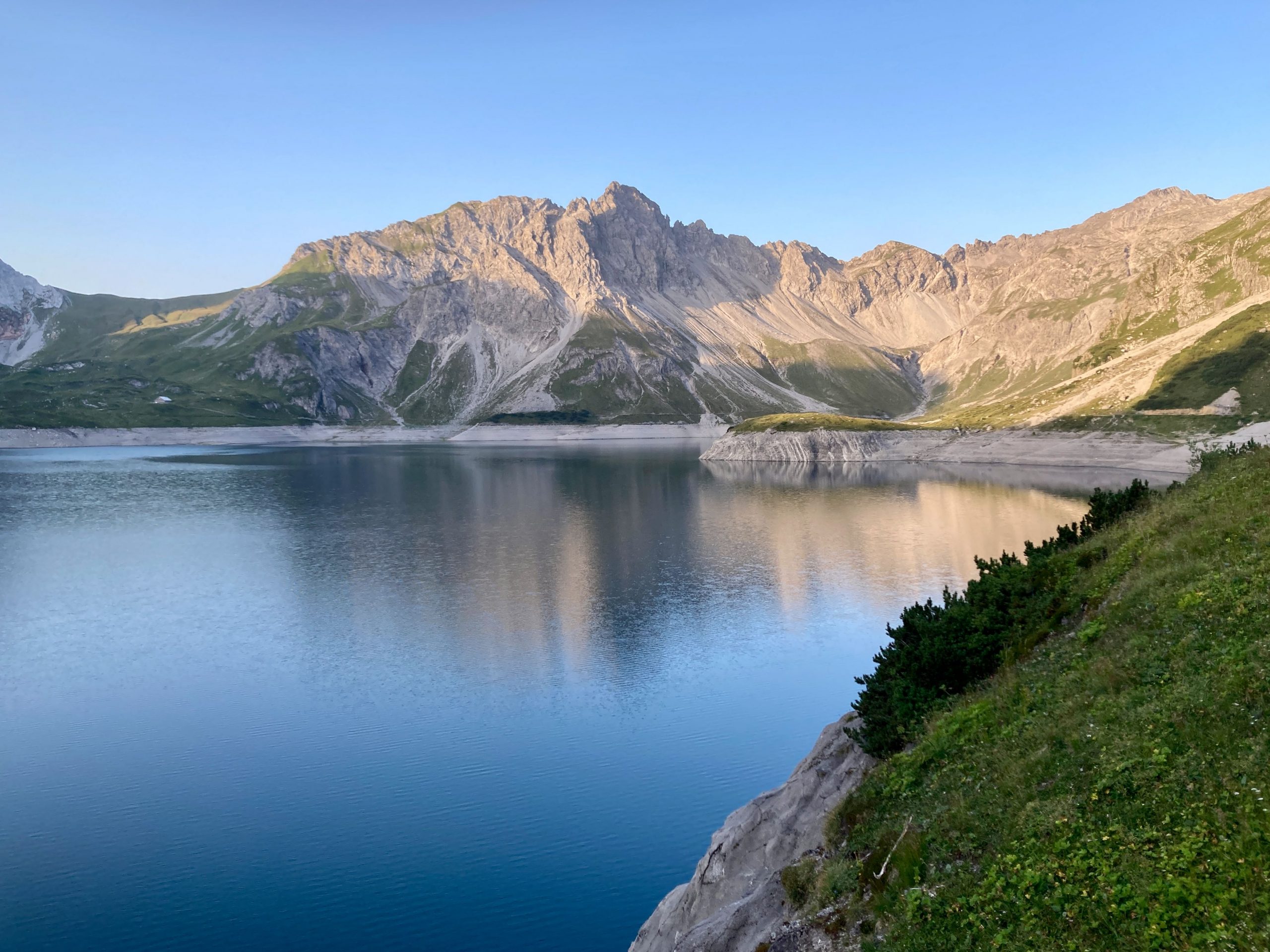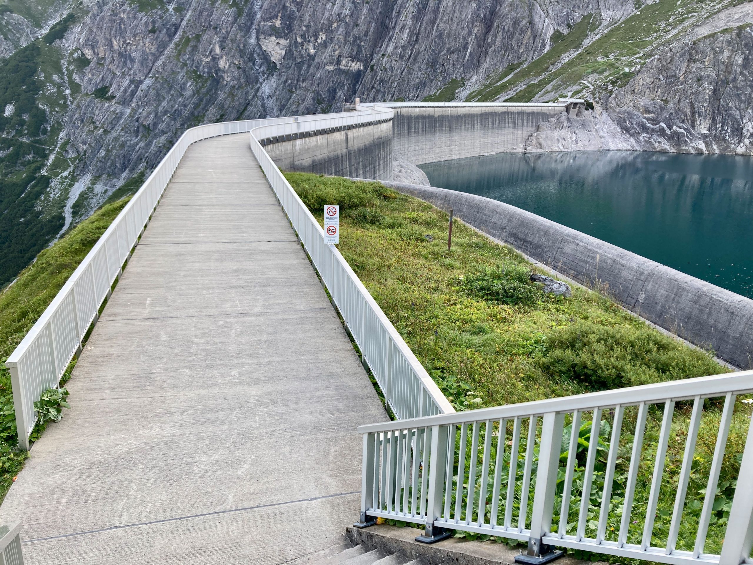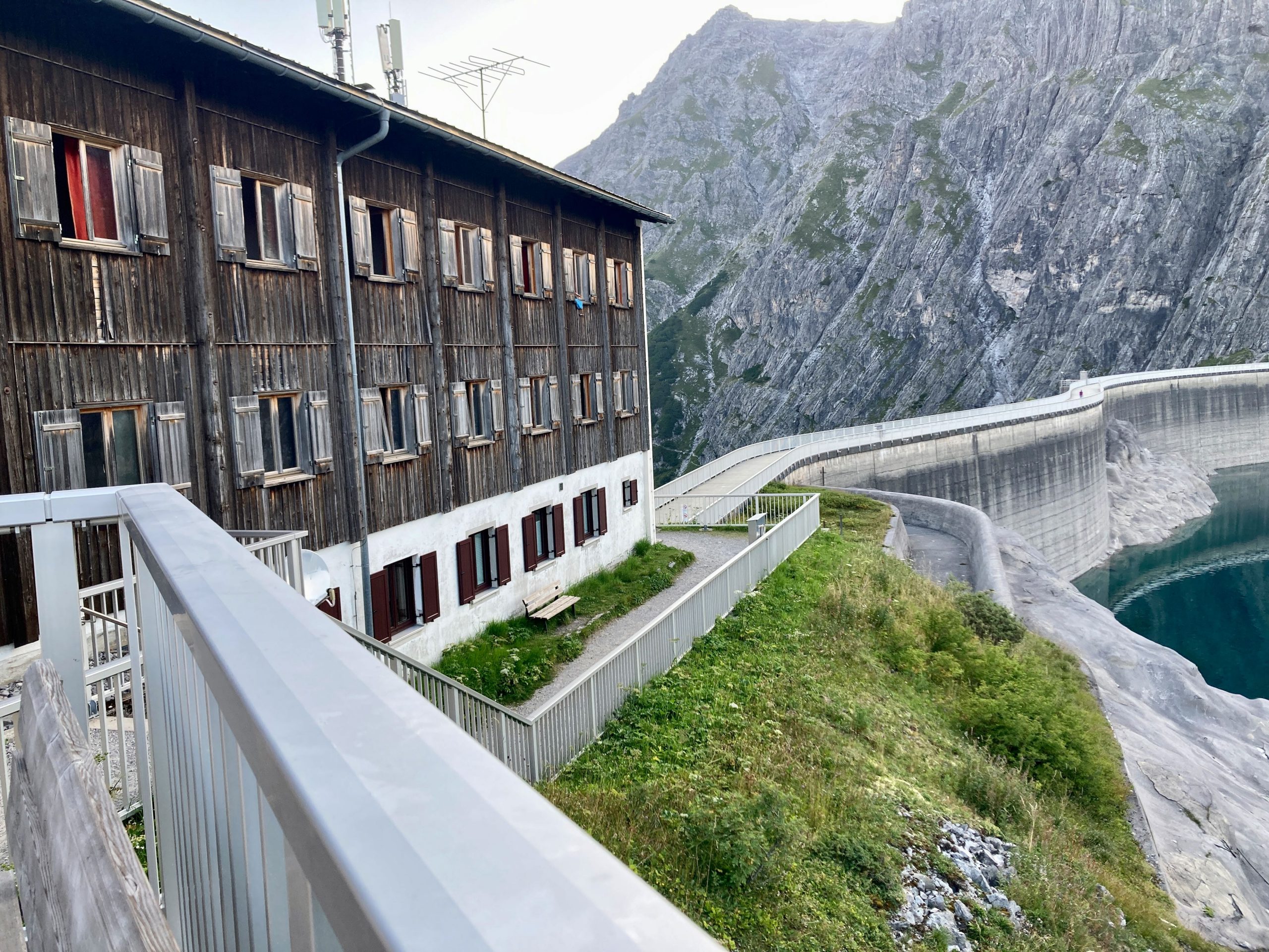 Der Morgen am Lünersee war ganz schön. Ich hatte mein letztes Müsli mit Kaffee, ein junger Herr wischte die Tische und es war recht ruhig. Also los danach zu einem kleinen Spaziergang auf die Seestaumauer.