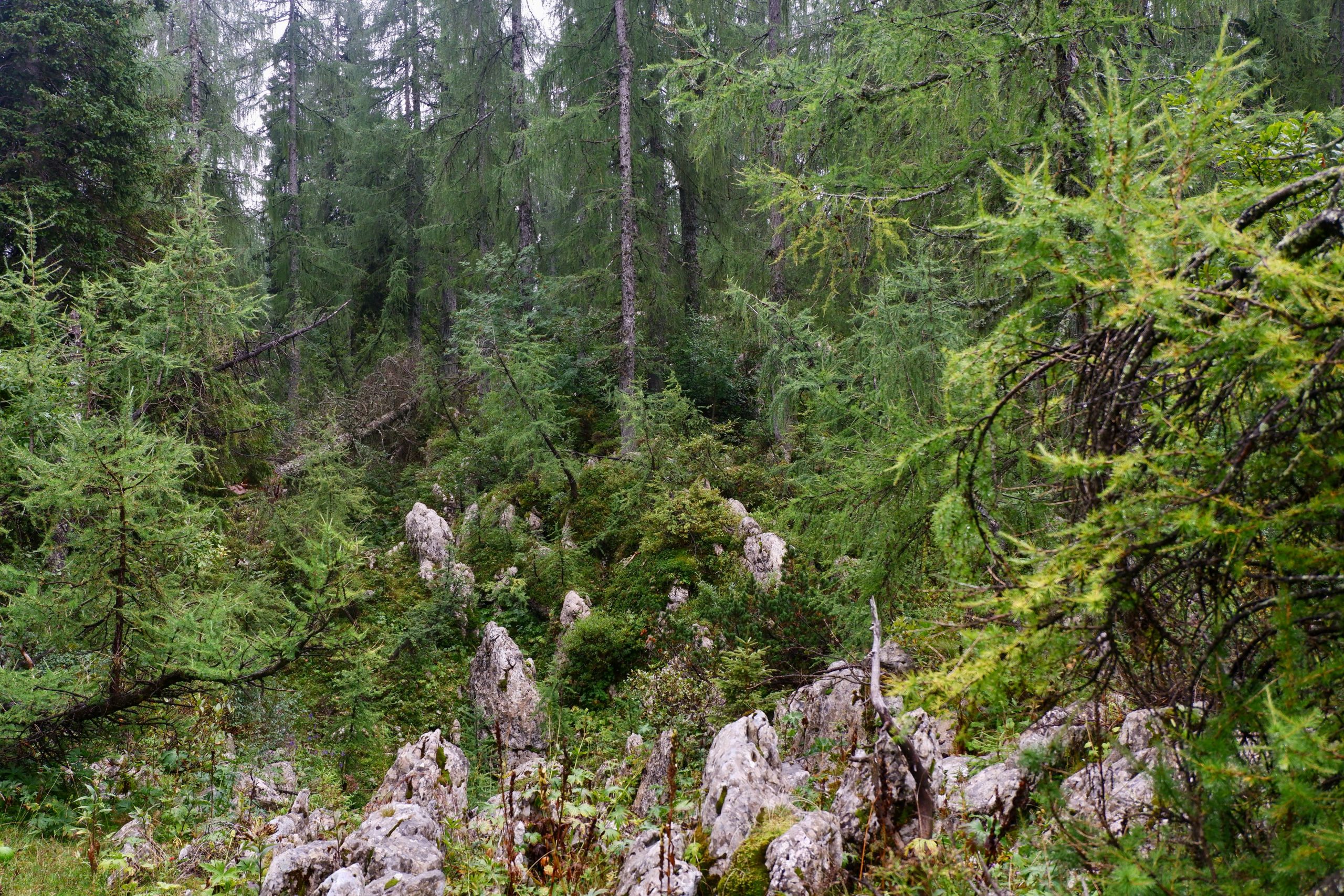 Und dann ging der bilderlose Regen los. Jacke und Plastiktüten hielten weiterhin, aber schön war das nicht. Und mit den Steinen und Baumwurzeln musste man ziemlich aufpassen, es war schon etwas rutschig. Aber wir hatten Glück, es hörte wieder auf und wir konnte eine trockenere Strecke gehen.
