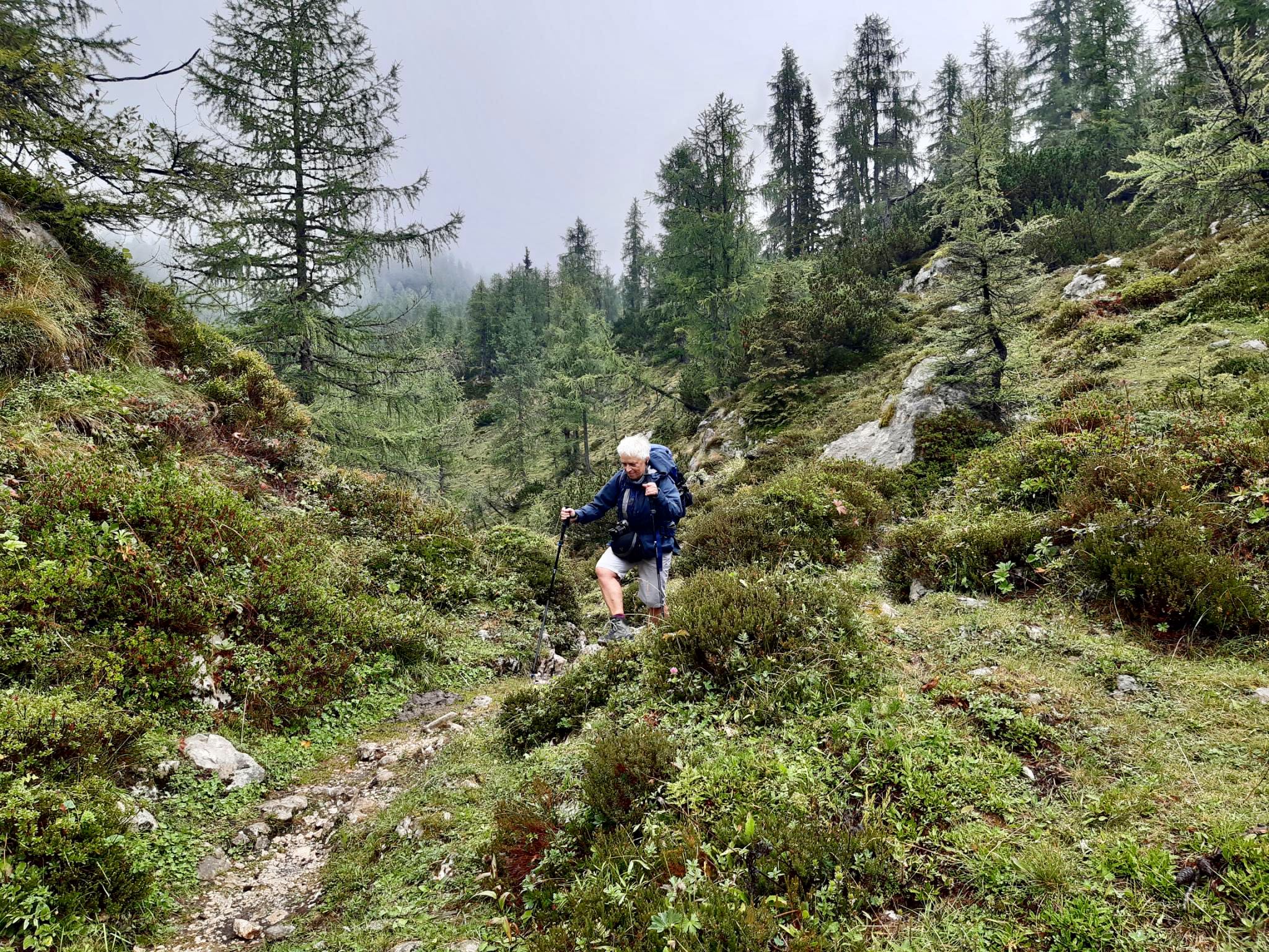 Durch die Nässe war es ziemlich beschwerlich nach unten zu steigen, man musste so aufpassen, dass man nicht ausrutscht und purzelt. Und wir haben offensichtlich gut aufgepasst und kamen gut in der Hütte an. Diese Hütte war nun ganz anders. Quasi alle anderen aus unserer Vorhütte stiegen direkt ins Tal ab und beendeten ihre Wanderung. Wir hatten noch eine Hütte eingebaut um dann am Folgetag zum Auto zu gelangen.
