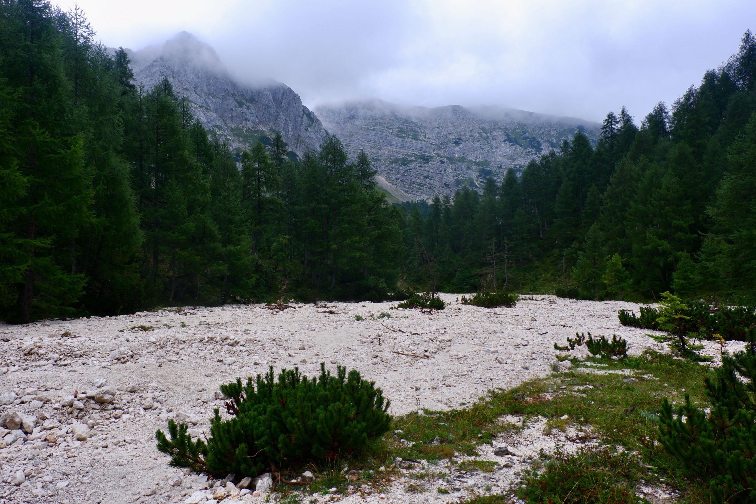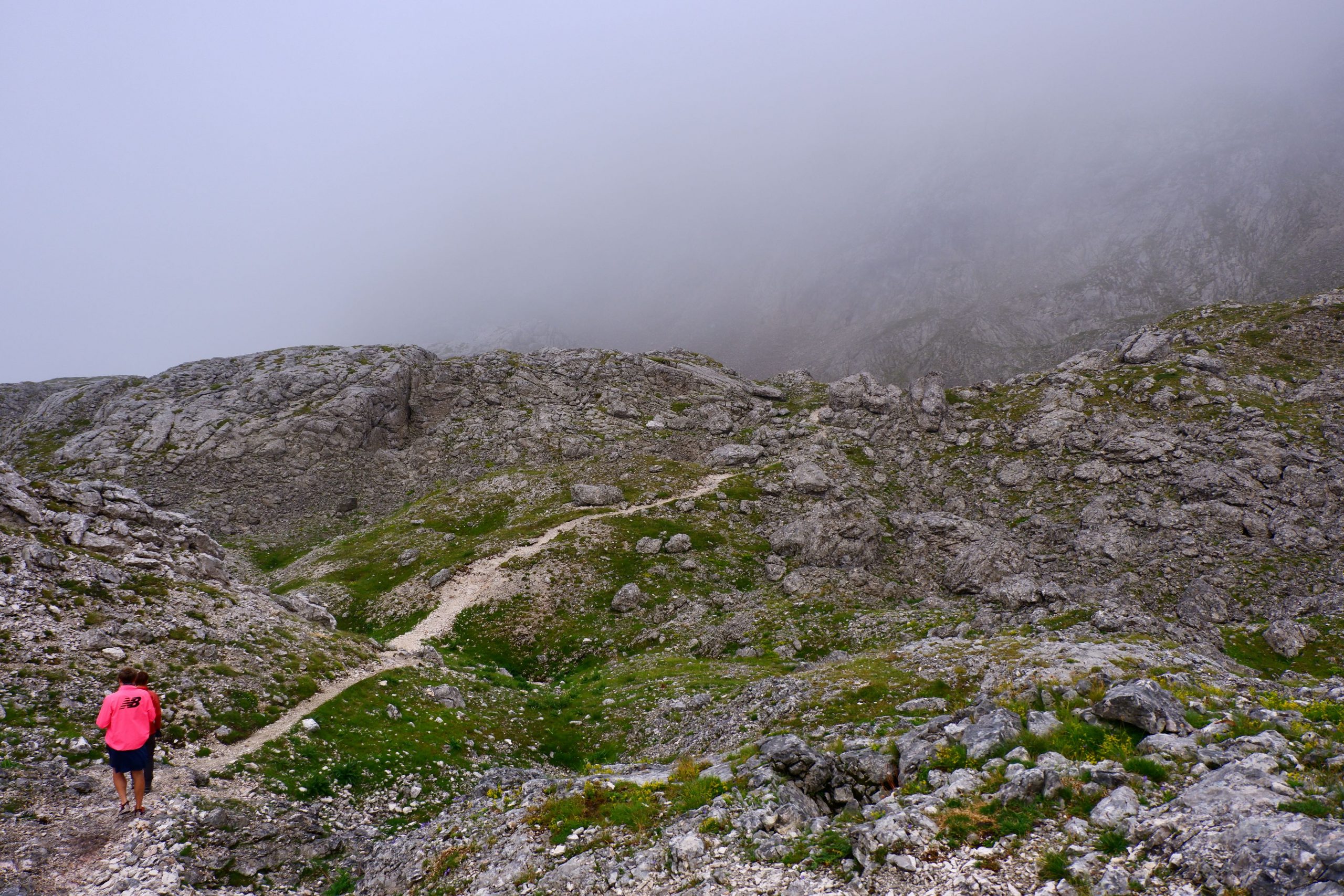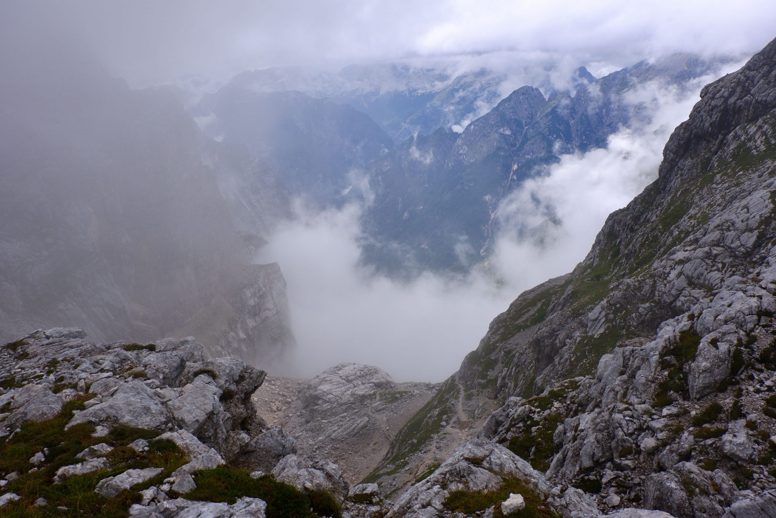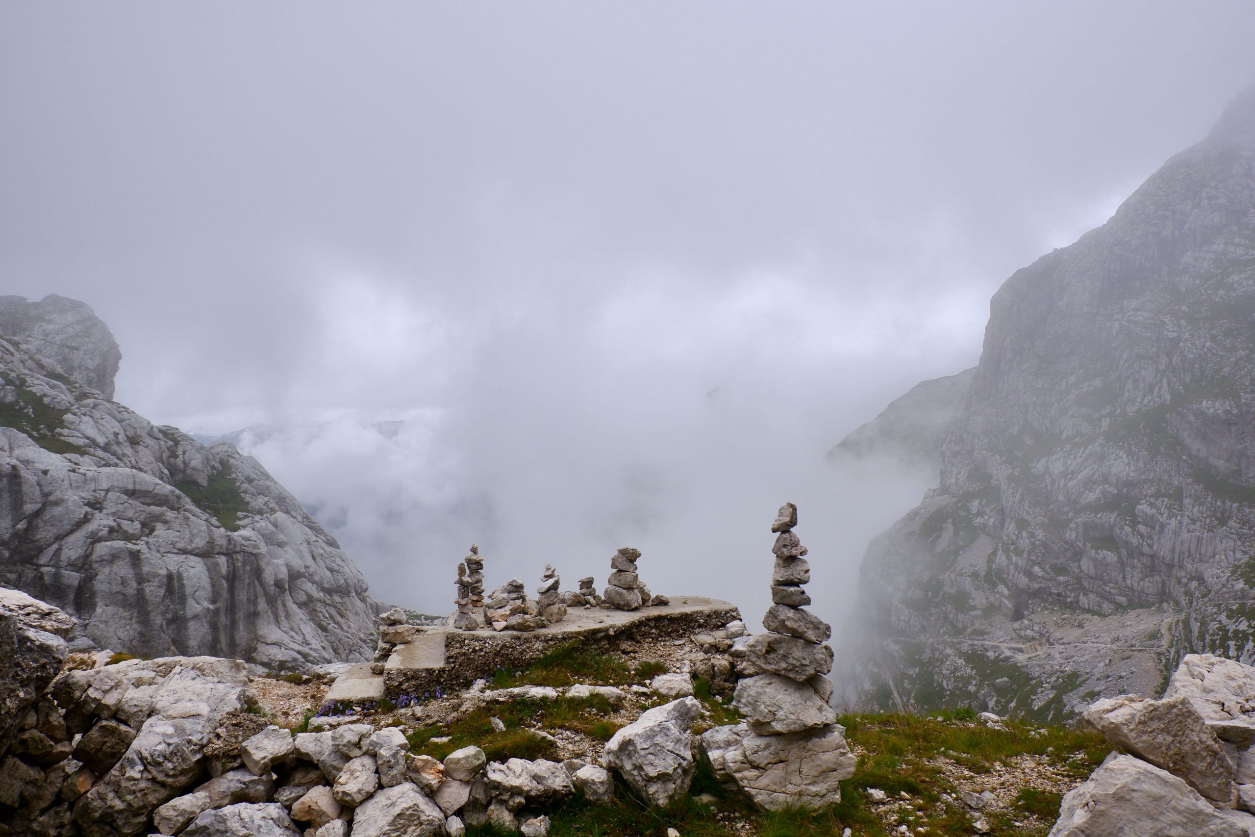Das Wetter blieb unbeständig an dem Tag, es regnete immer mal wieder und auch ein Gewitter entlud sich. Eine längere Regenpause nutzten wir für einen kleinen Ausflug auf dem Pfad zum Triglav. Steine und Wolken machten mich immer wieder staunend.