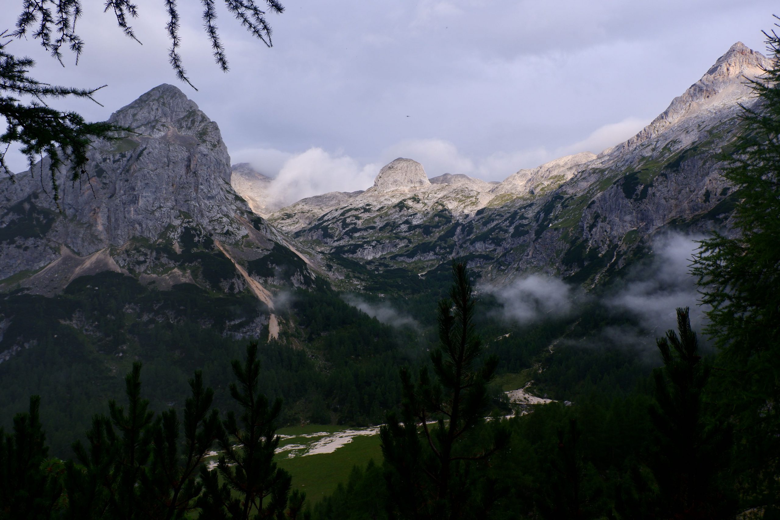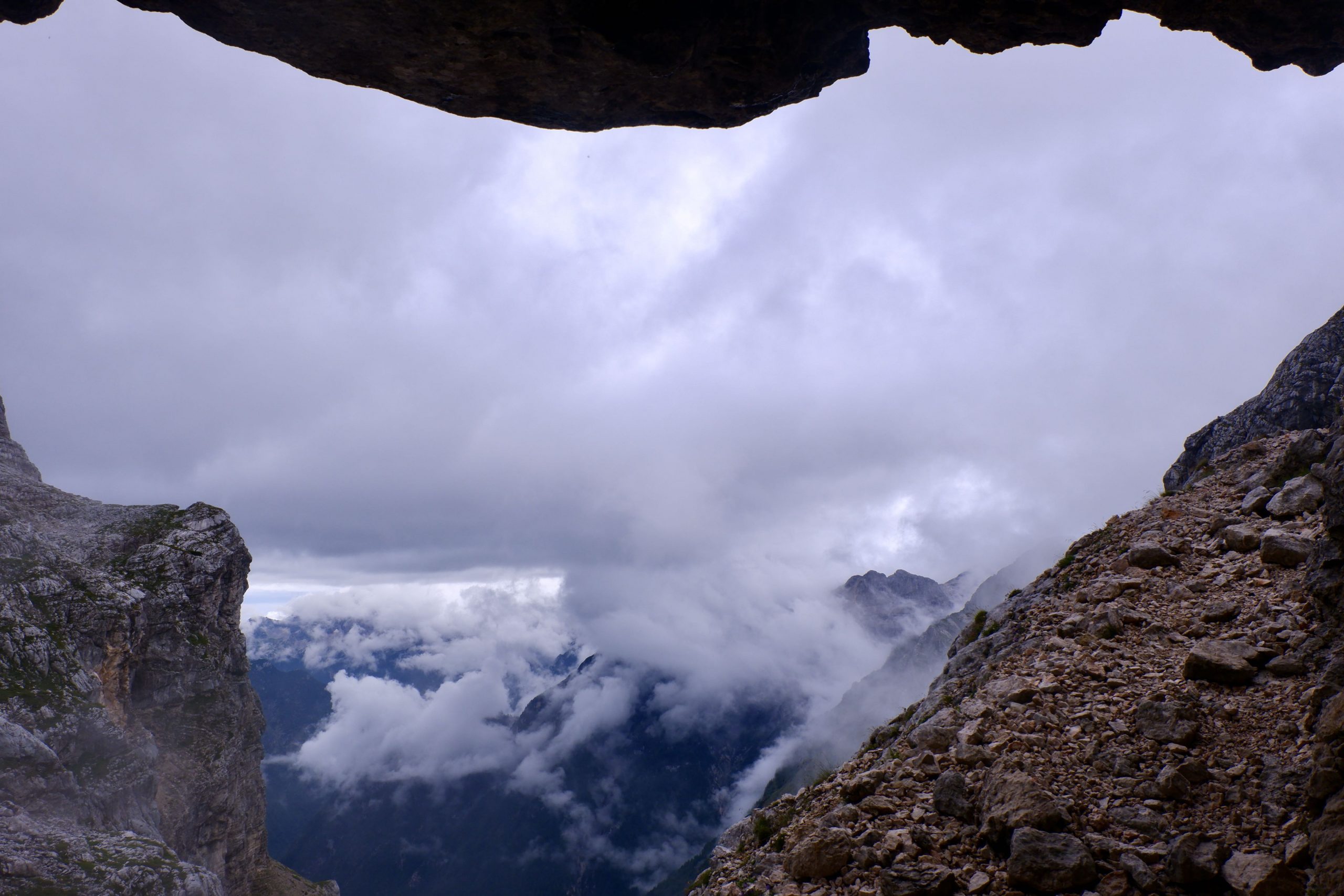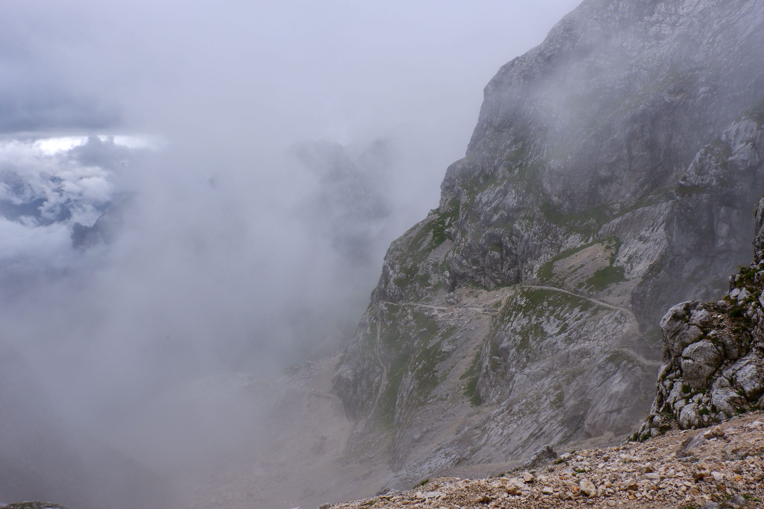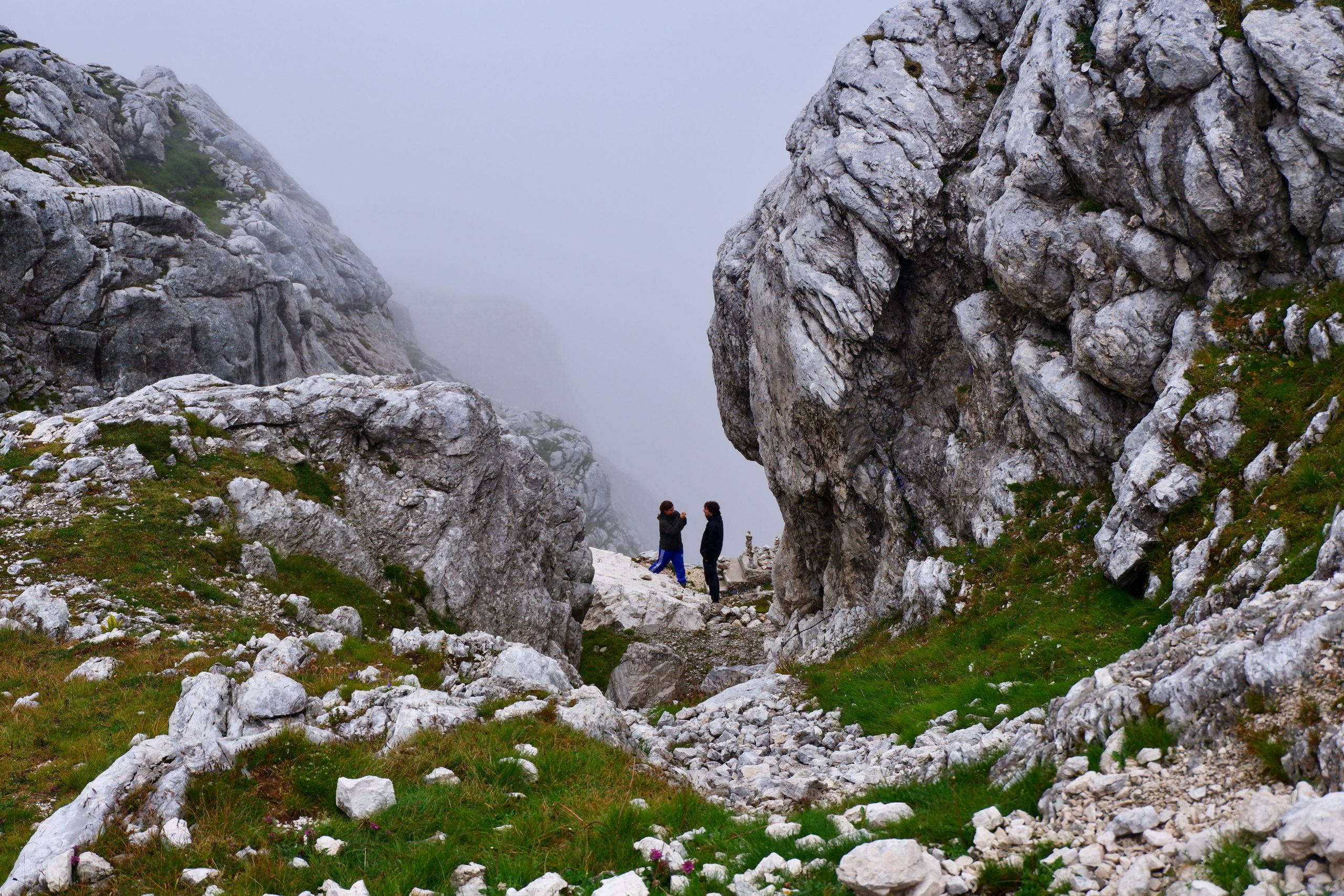 Das Wetter blieb unbeständig an dem Tag, es regnete immer mal wieder und auch ein Gewitter entlud sich. Eine längere Regenpause nutzten wir für einen kleinen Ausflug auf dem Pfad zum Triglav. Steine und Wolken machten mich immer wieder staunend.