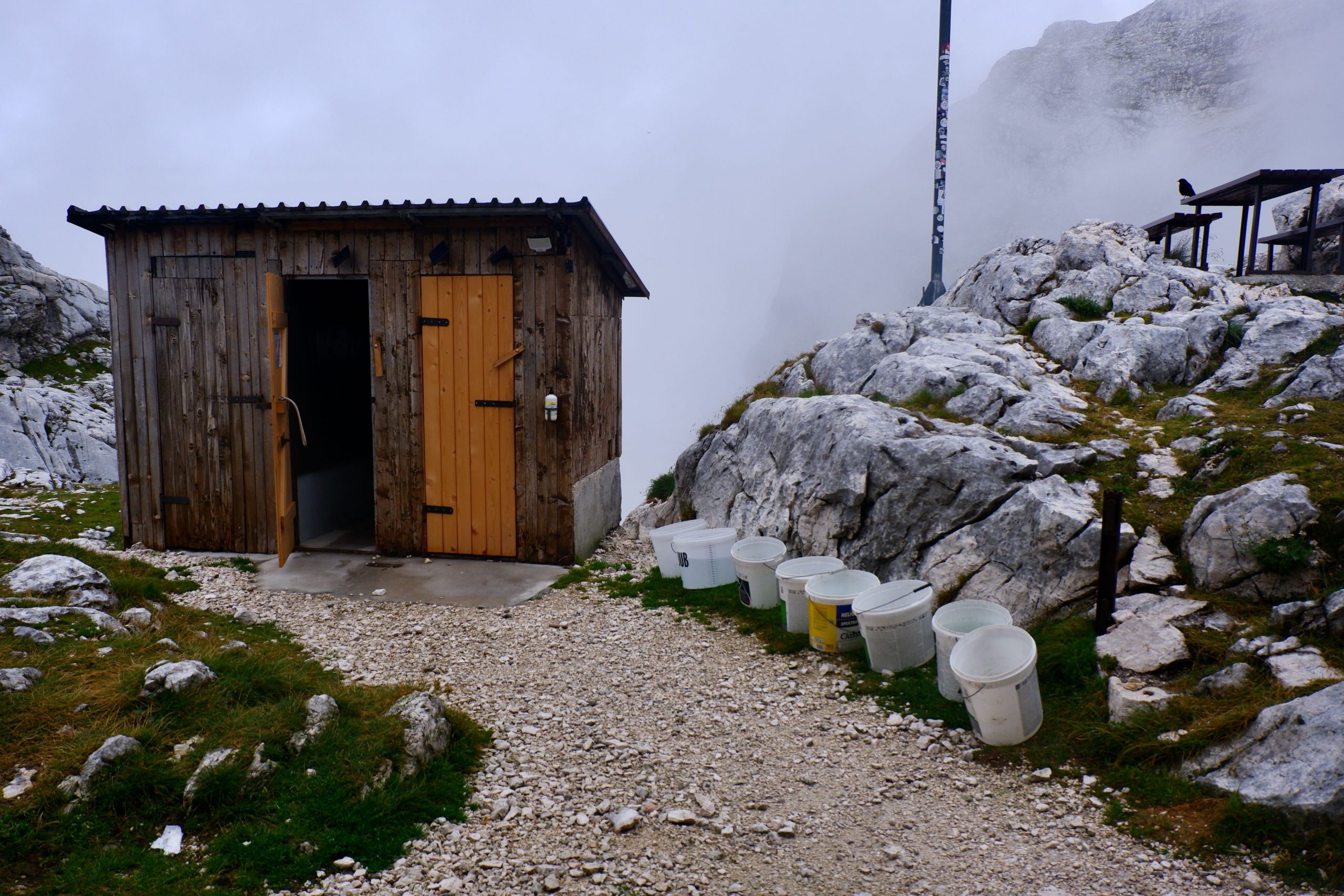 Die Hütte hatte glücklicherweise noch freie Betten. Und Lochklos draußen.