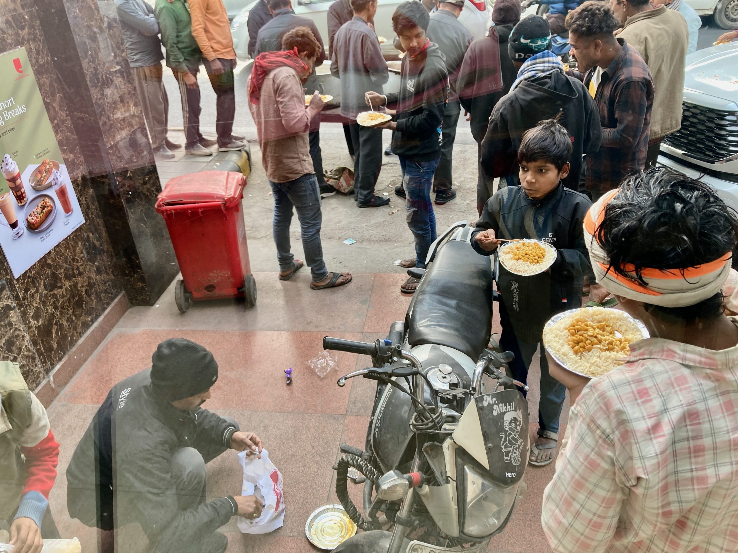 I used one day in Delhi to look at hotels. I don’t really like doing that, and it’s genuinely hard to find something good. On another day I went to visit friends who live very far away, yet still well within the boundaries of Delhi. That really makes you aware of the sheer size of the city once again. I covered three stretches by motorbike taxi. That’s practical because it’s much easier to weave through the traffic, so it’s faster and also cheaper than a car taxi. But it was cold. Brrrrrr!