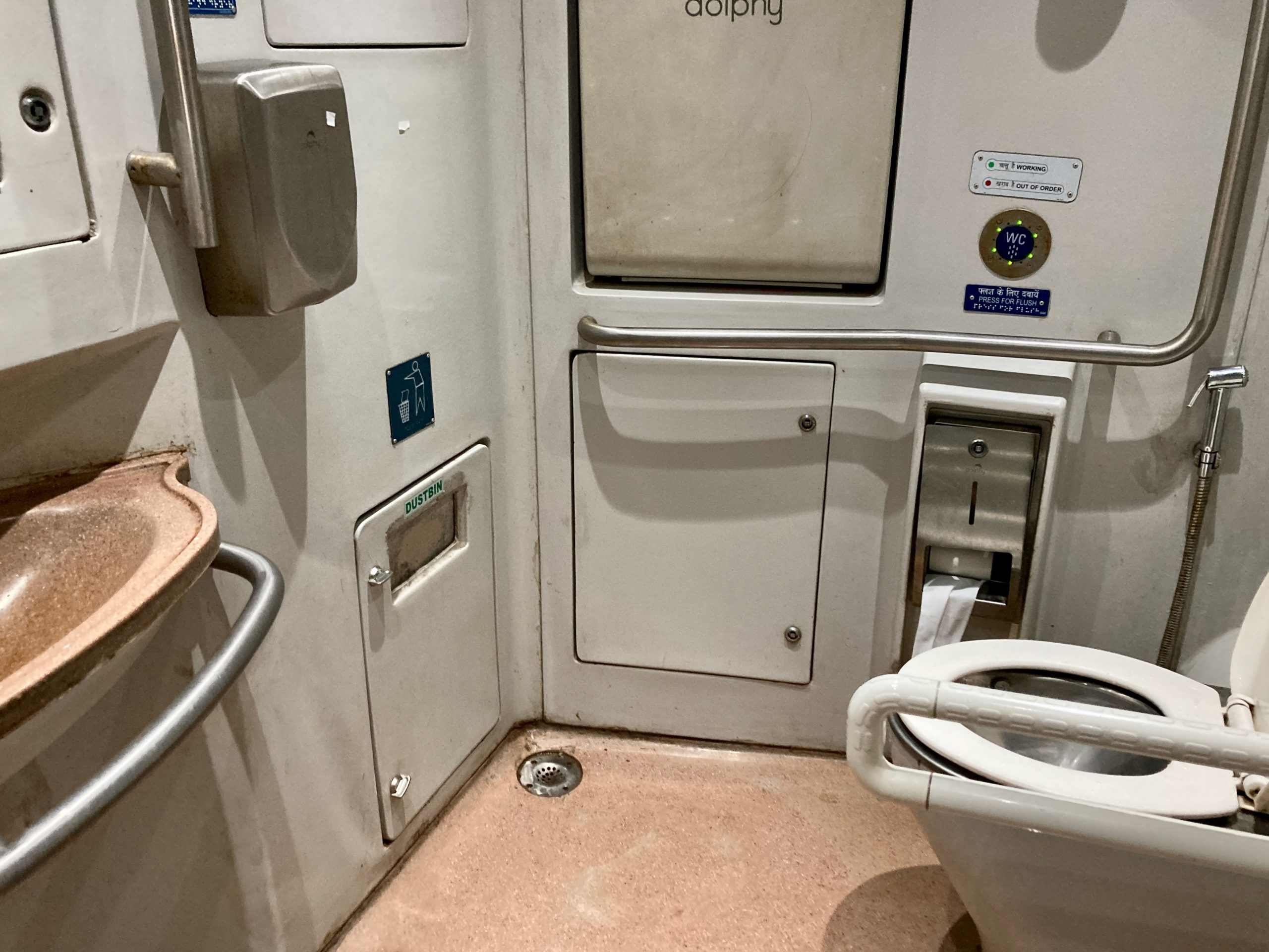 The train was fully booked and turned out to be a real surprise: seats like back home (just arranged differently), quite clean, and a toilet with vacuum flushing.