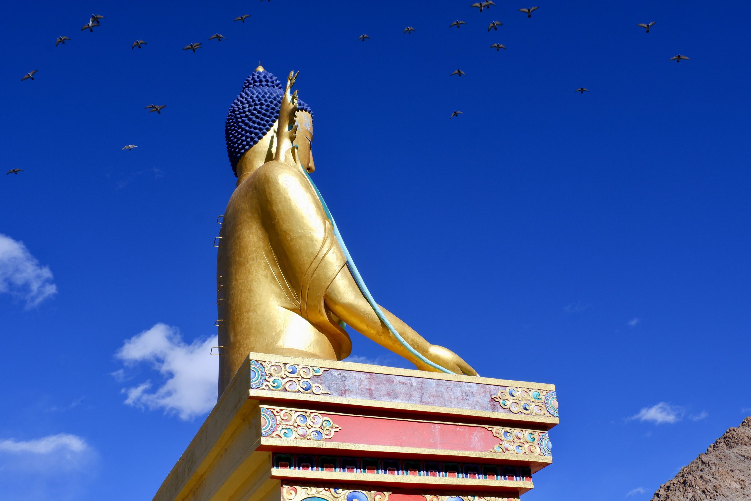 Afterwards, we drove to Likir Monastery, home to Ladakh’s oldest large outdoor statue. Only a few monks were present, but they offered us tea and biscuits.