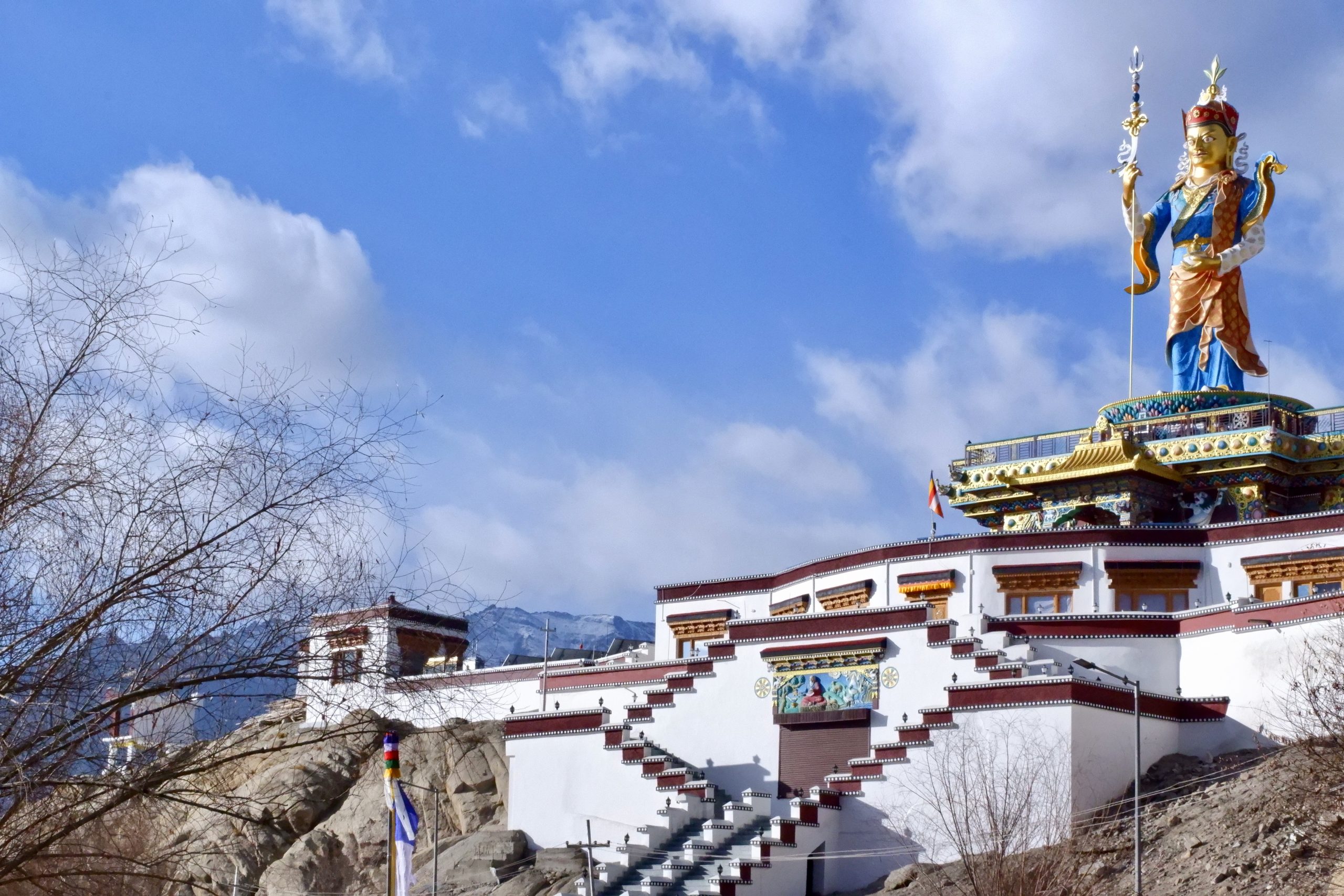 In Sakti there is Takthok Monastery, with a meditation cave of Padmasambhava. A monk was sitting there performing a long and interesting puja, probably specifically for Losar. Photography was not allowed inside, but it was permitted in the courtyard, where we could photograph the monk and a cat. The monk in the courtyard assisted the meditation monk by bringing him various ritual items. The cat was running around and back and forth to her kittens, which were behind a door.