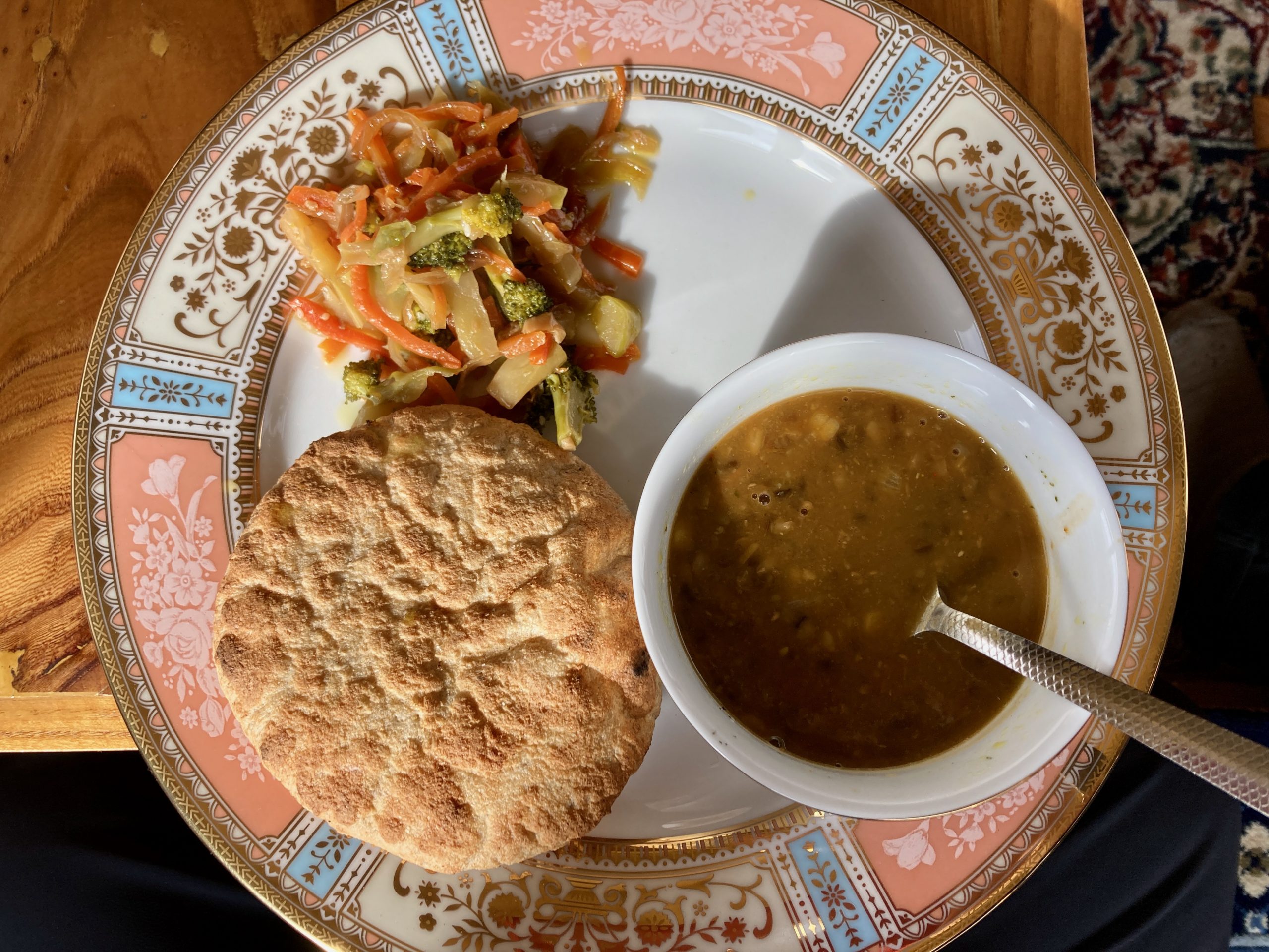 But it was lunchtime, our stomachs were hungry, and we had an appointment! We were invited to Tsering Dolma’s home in Karu, which was very nice. She had prepared kambir with vegetables, dal, soup, snacks, and more — all very tasty. Her daughter did a great job entertaining the group, and Tsering Dolma herself did too. It was lovely. Tsering Dolma has even visited me at my home in Ruhpolding before. Next time I’ll stay a bit longer, then I’ll have time for a proper chat — and can explore the upper valley even better.