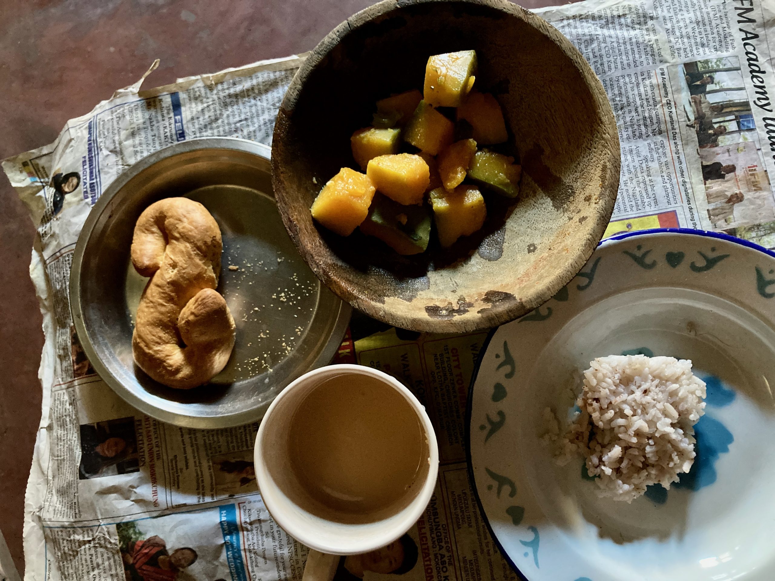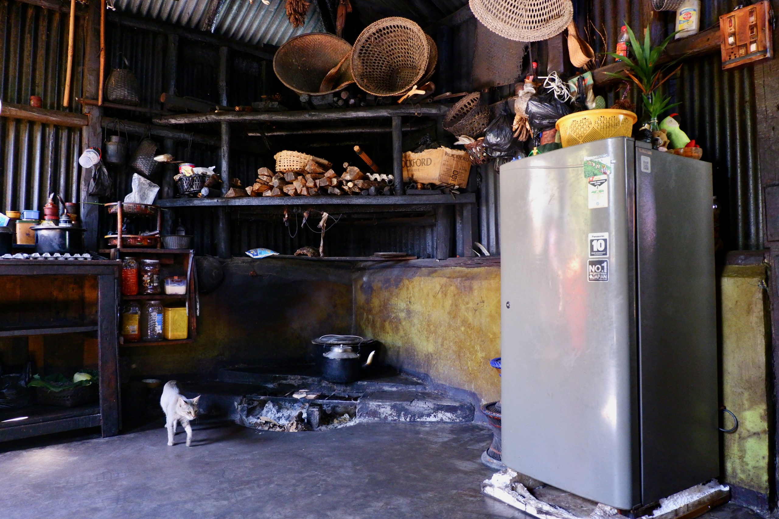 The kitchen is spacious, and every family has both a gas stove and an open fire. Food cooked over the open fire tastes much better, though it takes longer. There was also a small child who was sad that I couldn’t really understand her. I asked a few questions—and then I was given guava and fig. Very tasty!