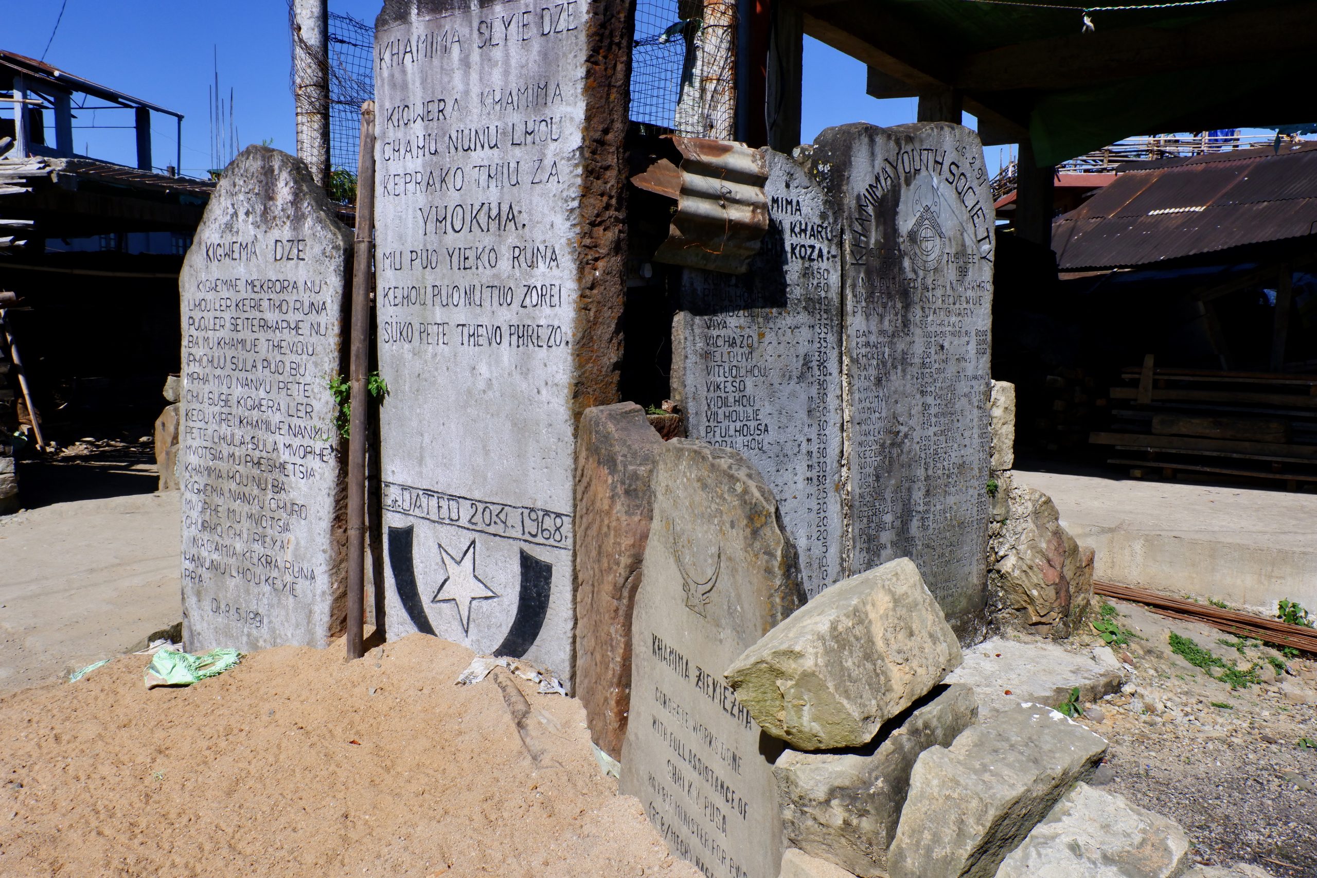 I’ll tell you what she told me — or at least what stuck with me. Kigwema has about 7,000 people (the same number as “my” Ruhpolding!). It’s divided into five sections, called Kher. Each Kher has its own Morung — that’s the bachelors’ house where the young men used to live together and learn various skills. Nowadays that tradition has softened a bit, but each section still has one such house. Next to it there’s a square and a fireplace, where especially in the evenings the older people gather to chat and gossip.